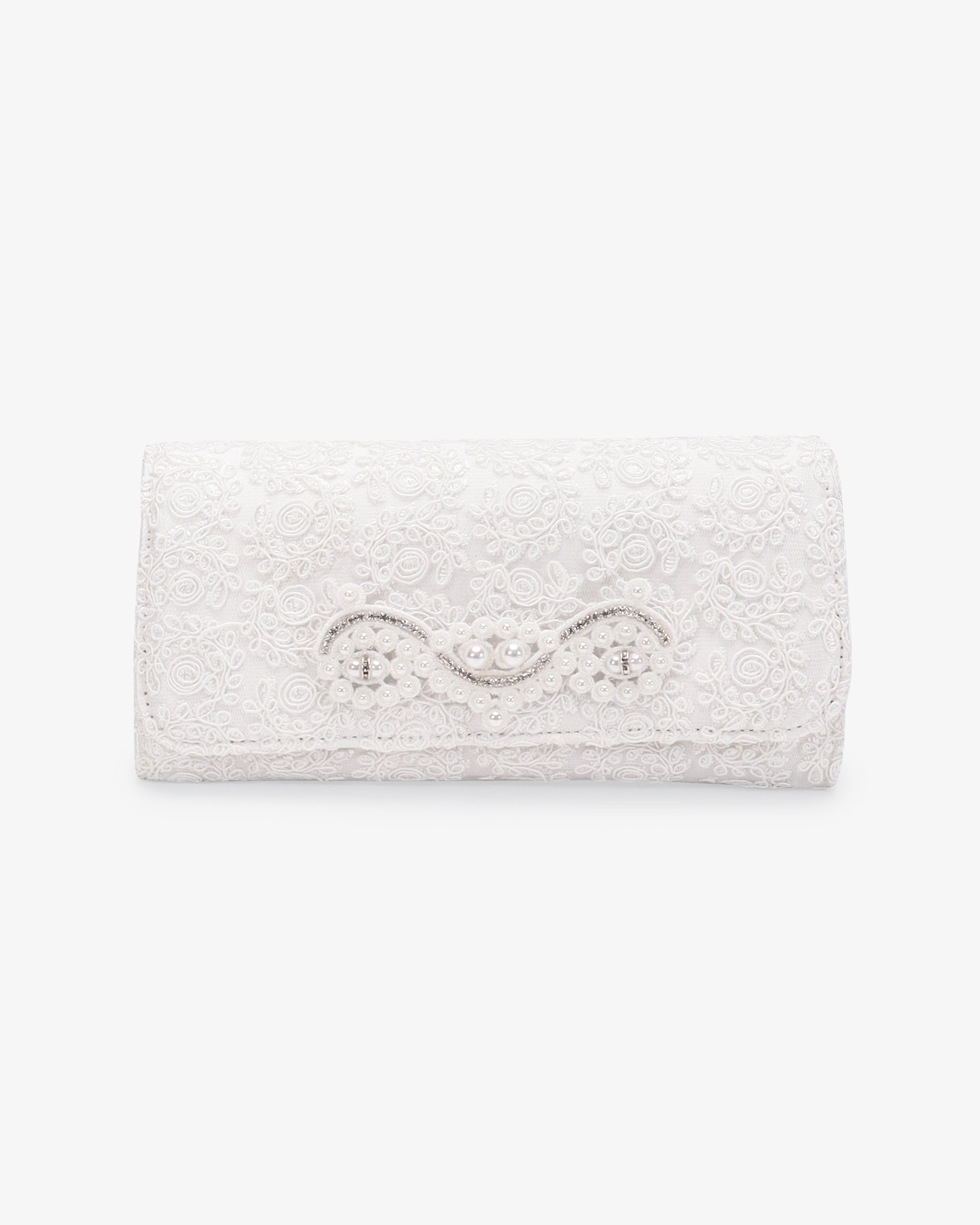 Add a classic modern touch with this crochet lace envelop clutch. With a touch of pearls and rhinestones embellishment, this will be a beautiful complement to your bridal gown, evening dress, casual dress. Perfect ensemble for bride, bridesmaids, mother of the bride, wedding parties, or any special occasions.