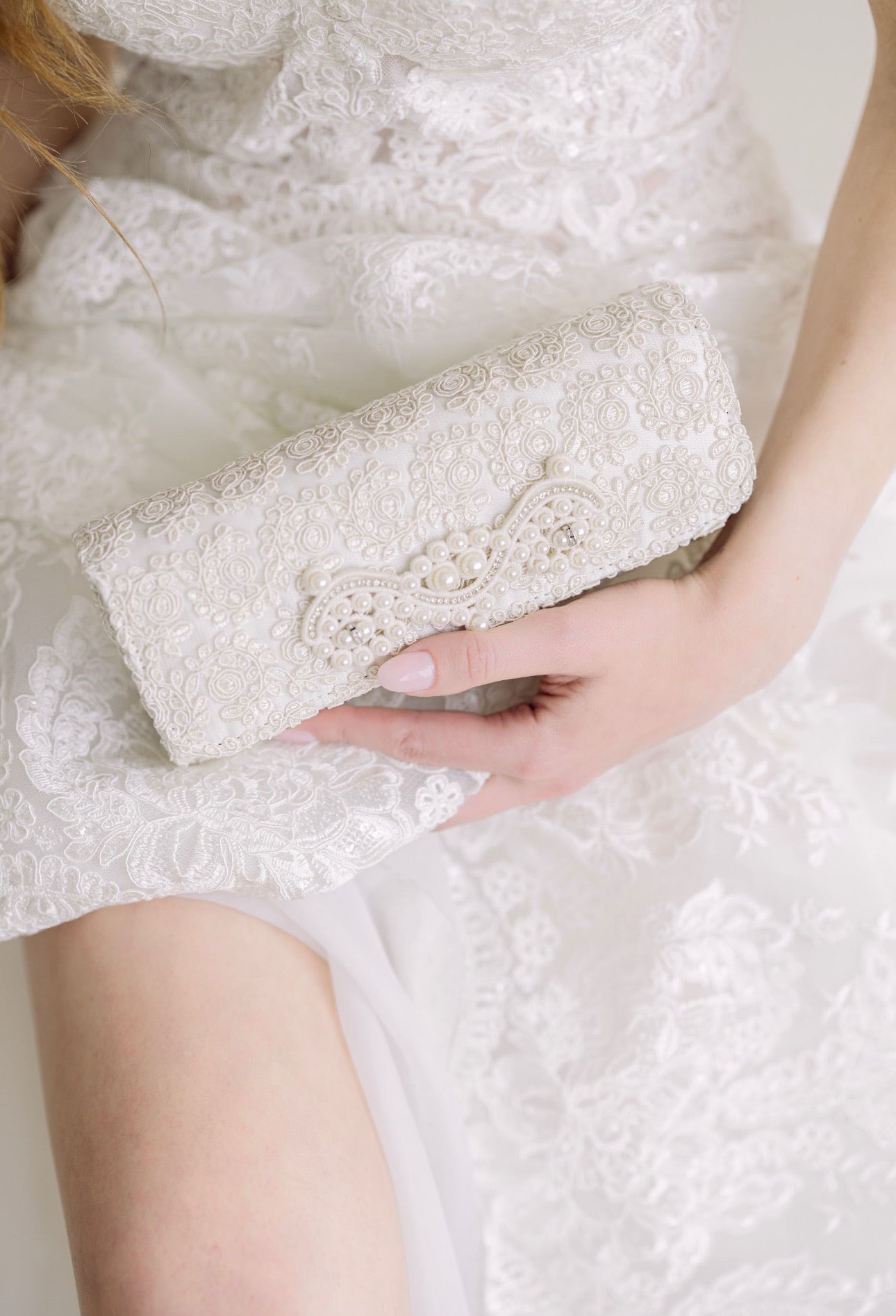 Crochet Wedding Clutch with Pearls Applique