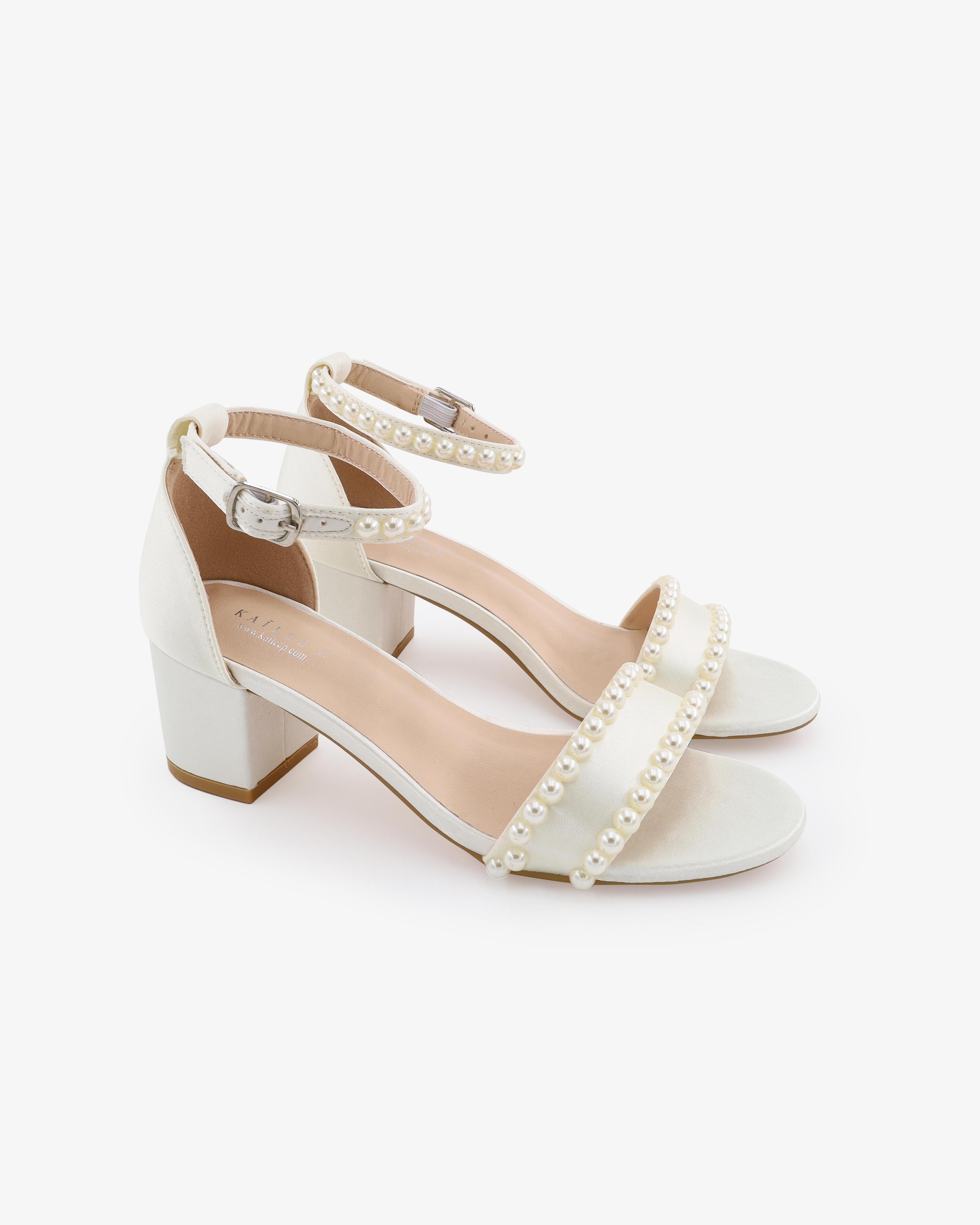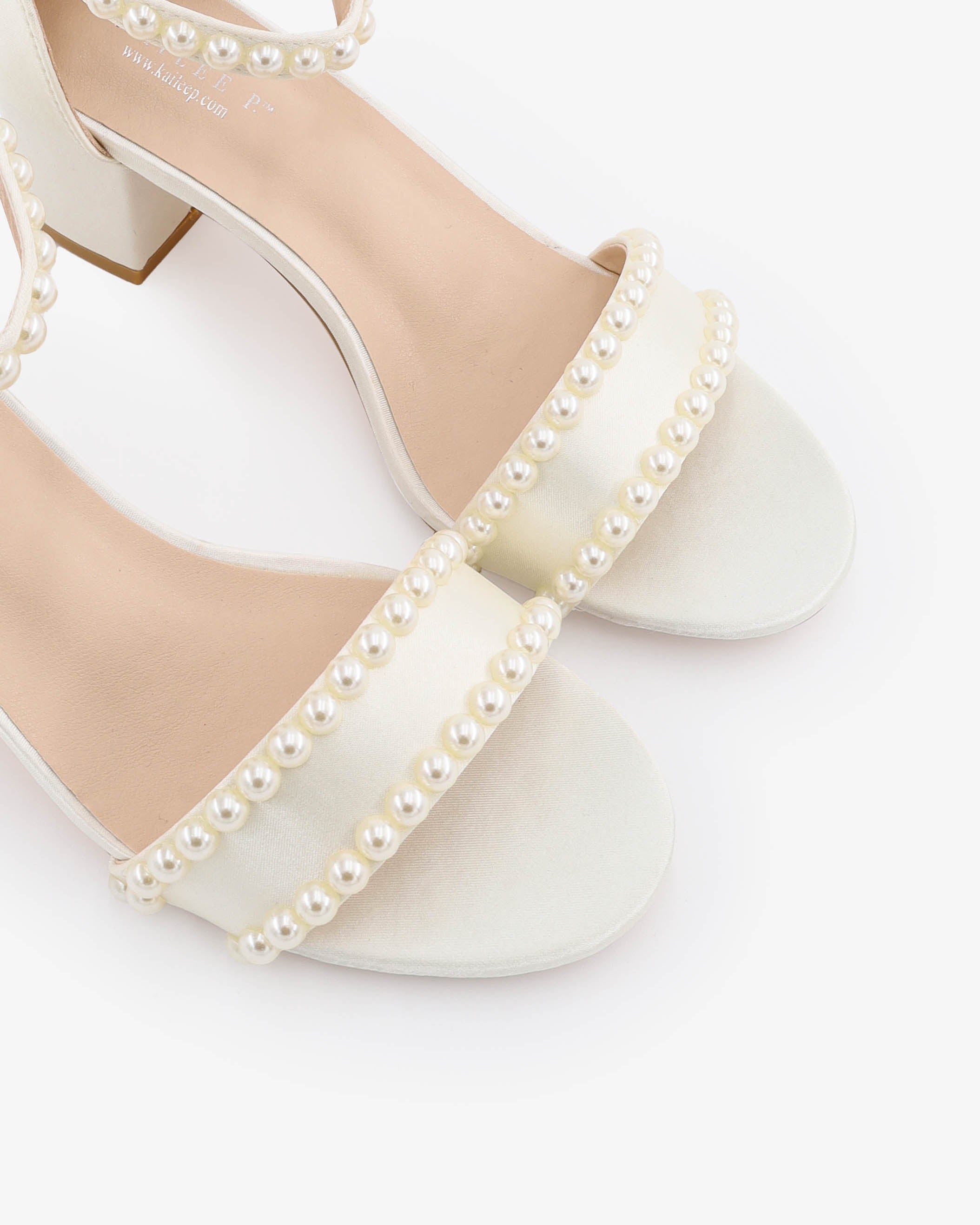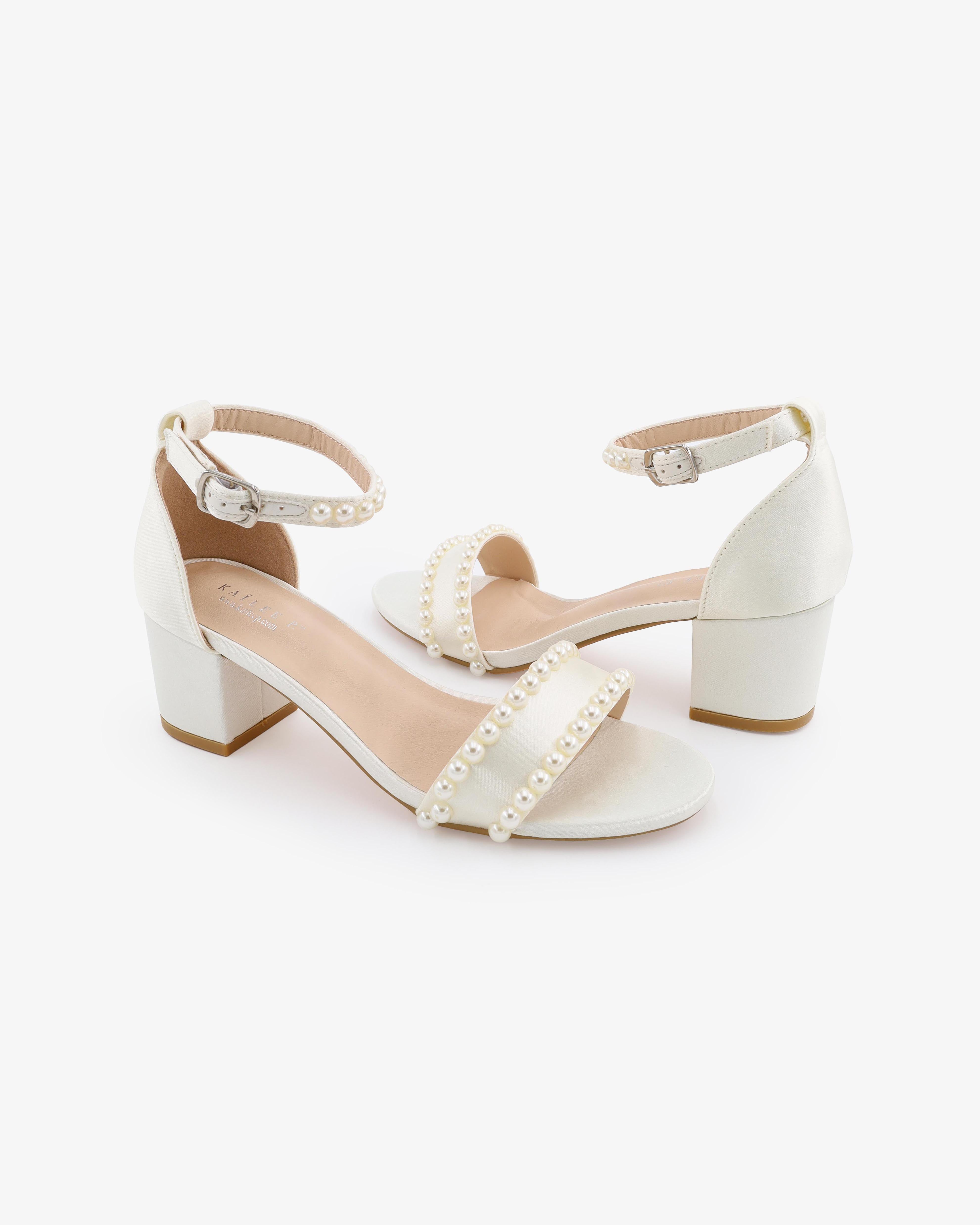 Add a touch of charm to your outfit with these beautiful satin block heels. These shoes also feature standout pearls detail that are delicately placed by hand, made to order to create a graceful and timeless bridal look. It complements any wedding gown beautifully, a perfect choice for brides, bridesmaids, or wedding guests. With an adjustable buckle strap for a secure fit and cushioned insoles for all-day comfort, these heels are as practical as they are pretty.