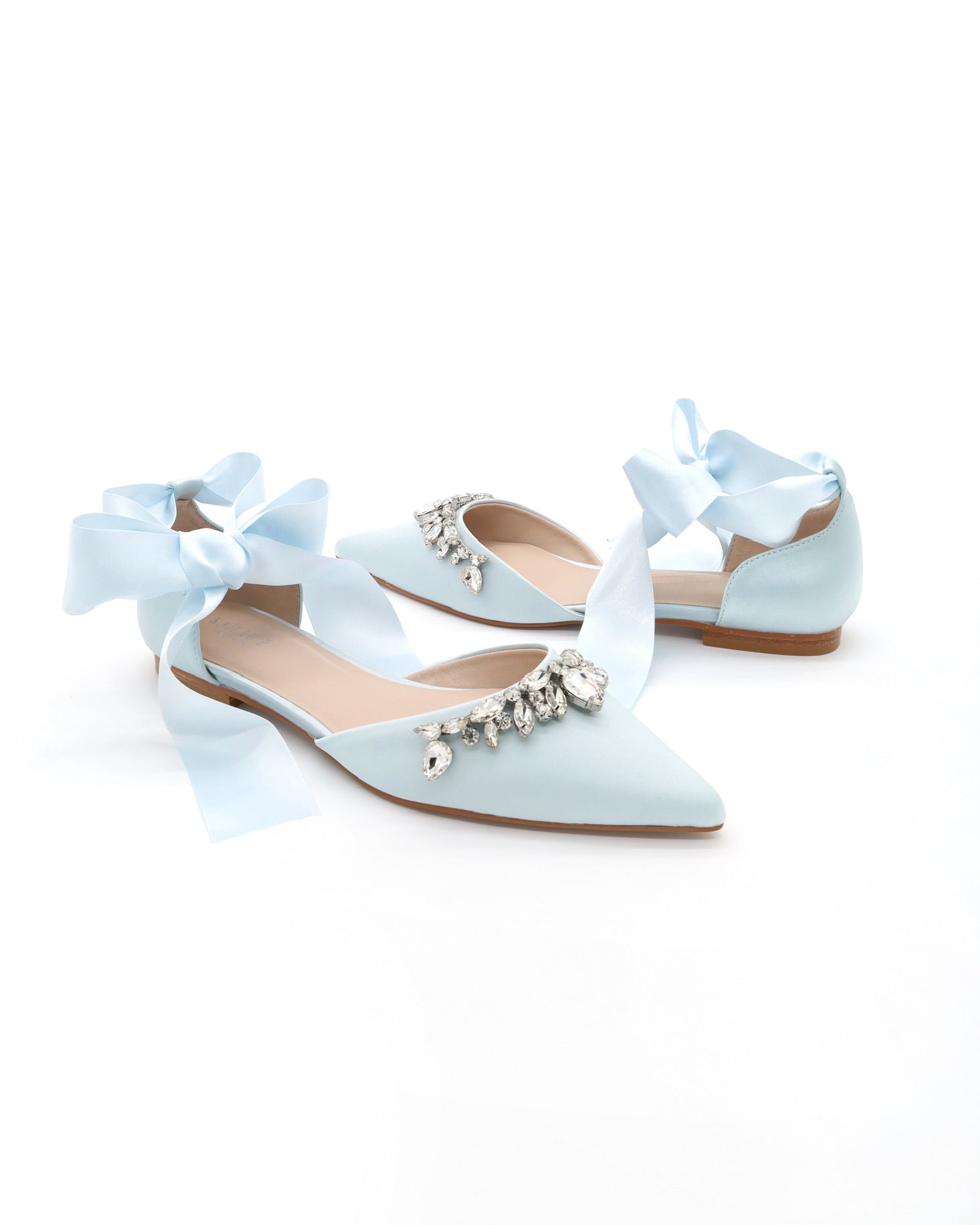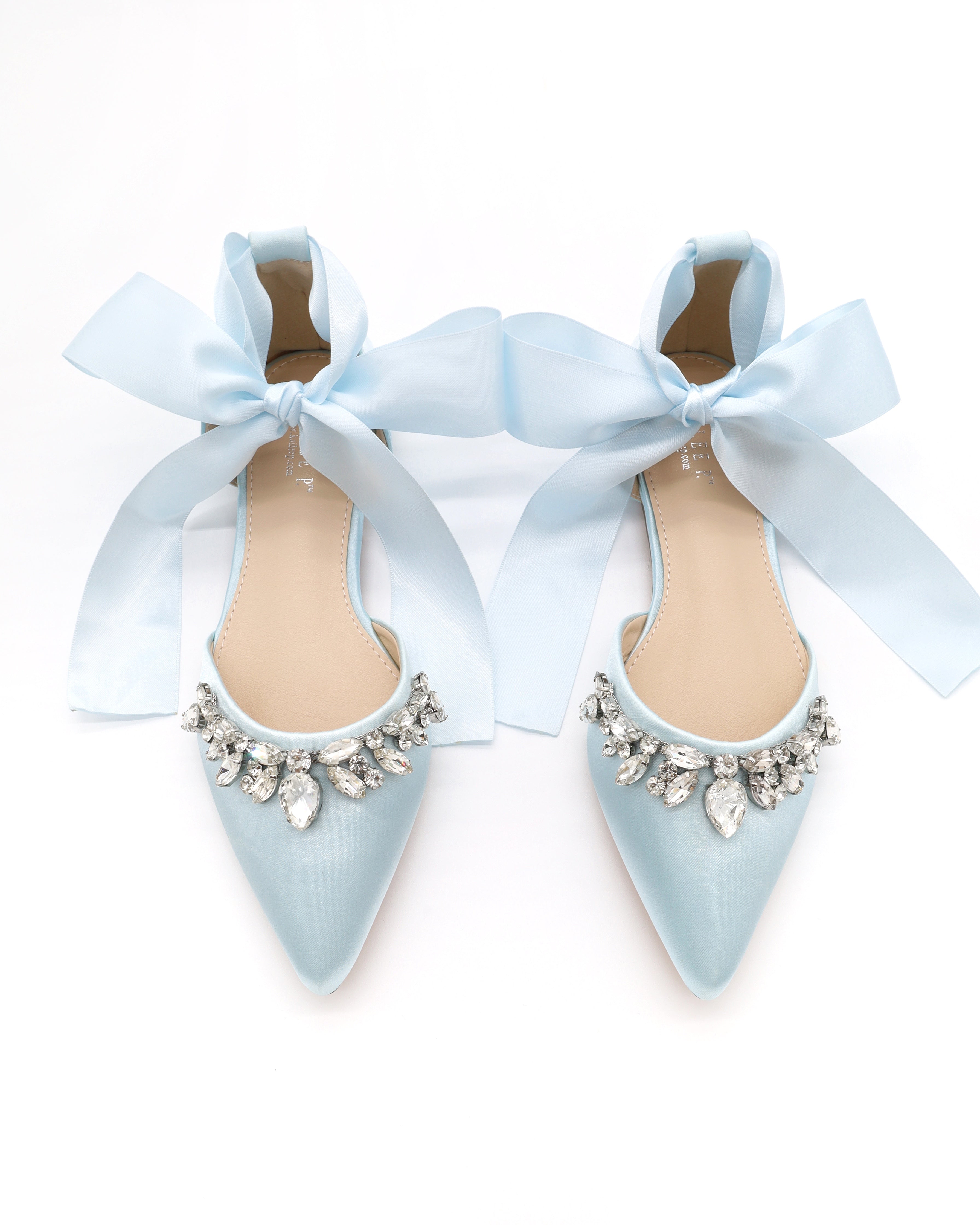 Satin Pointy Toe Flats with Teardrop Rhinestones Embellishments