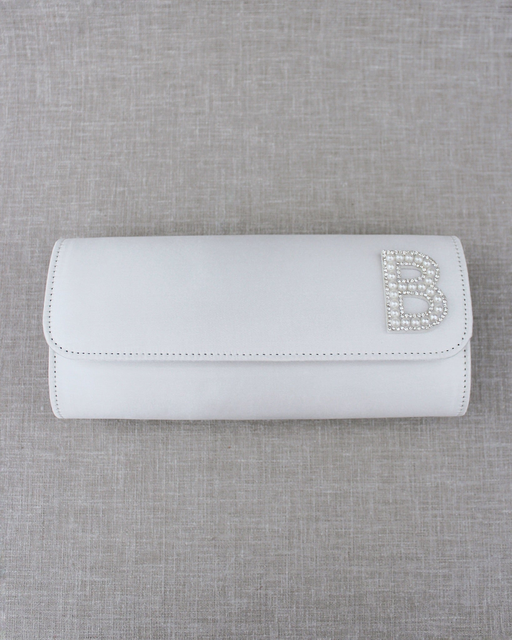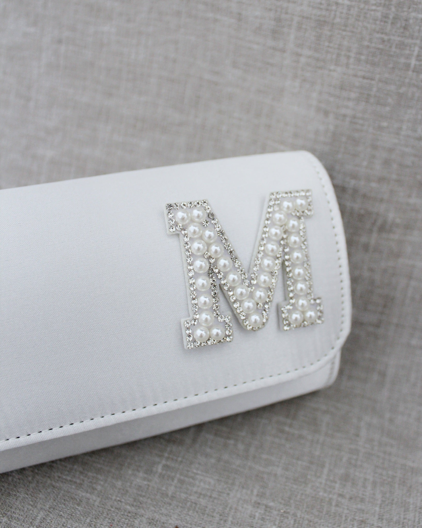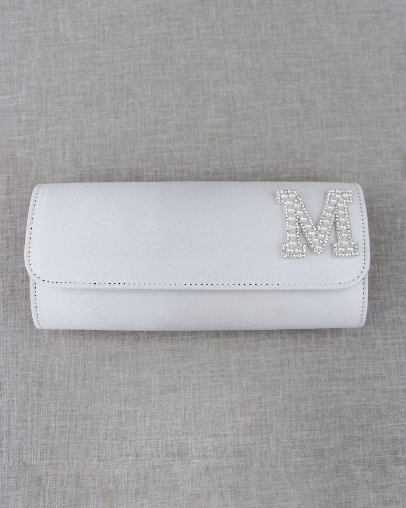 This smooth satin envelop wedding clutch creates a simple yet elegant look. With personalized pearls and rhinestones letter applique, it is a beautiful complement to your bridal gown, evening dress, casual dress, and a perfect ensemble for wedding, parties, as a bridesmaids gifts, or any special occasions.