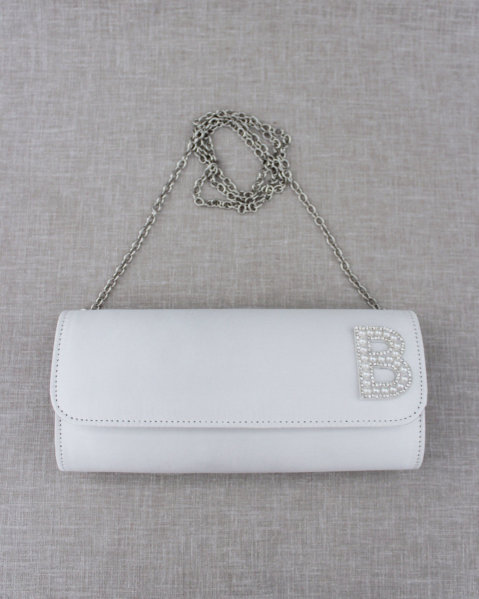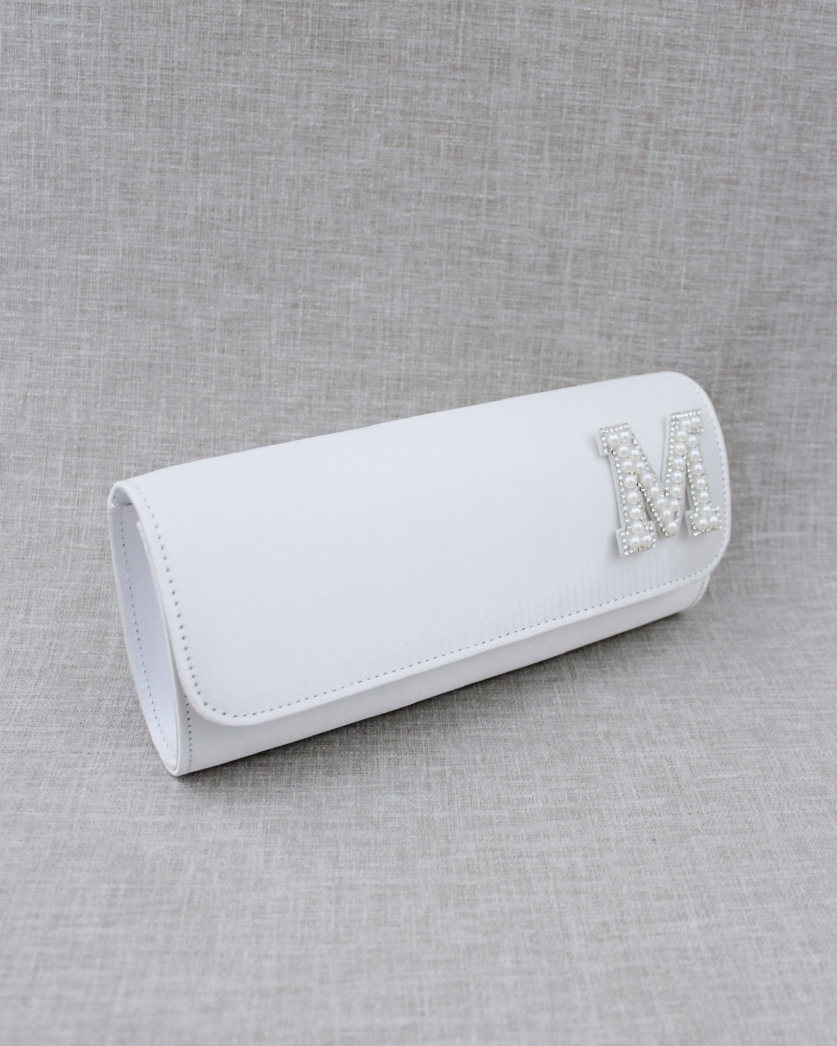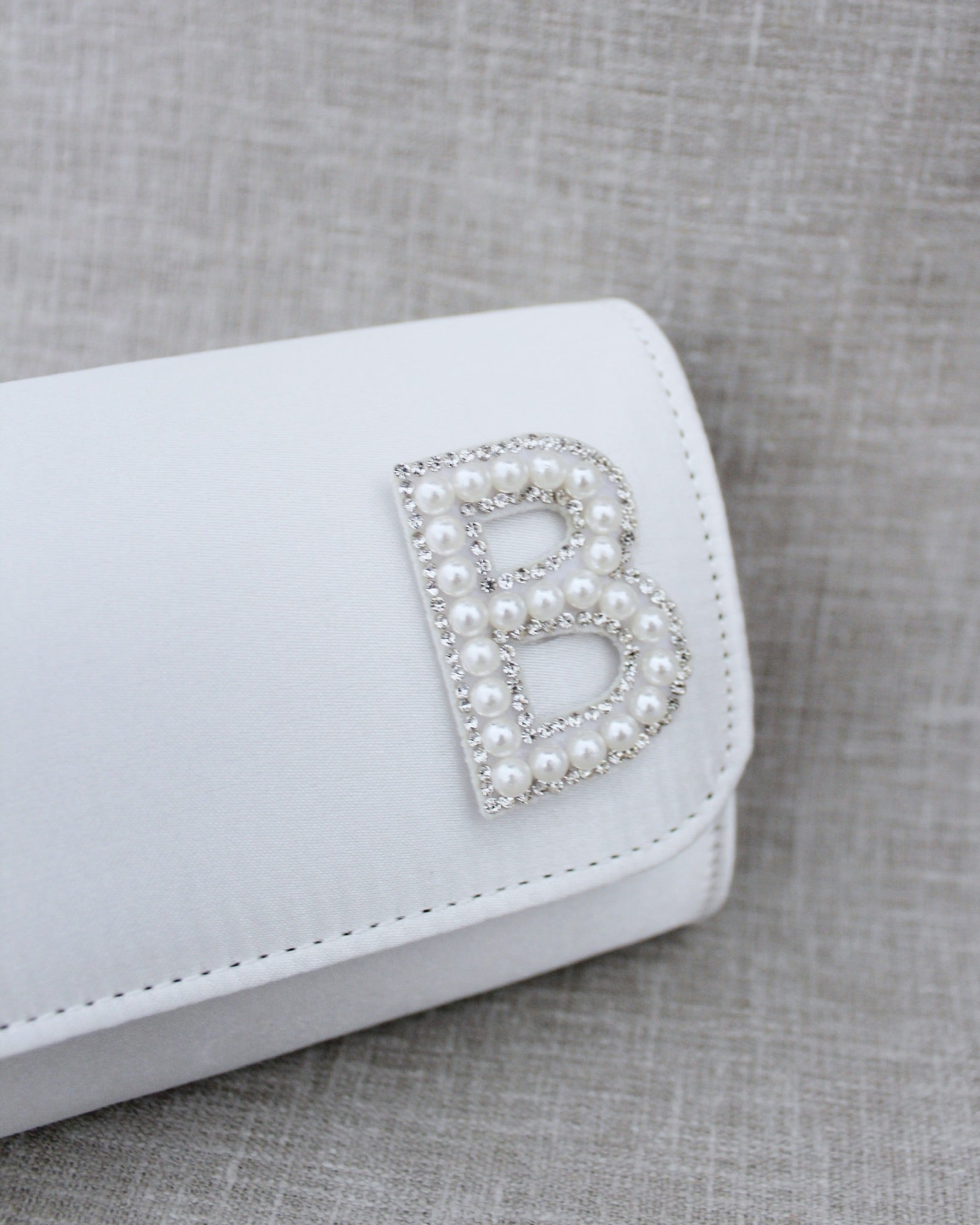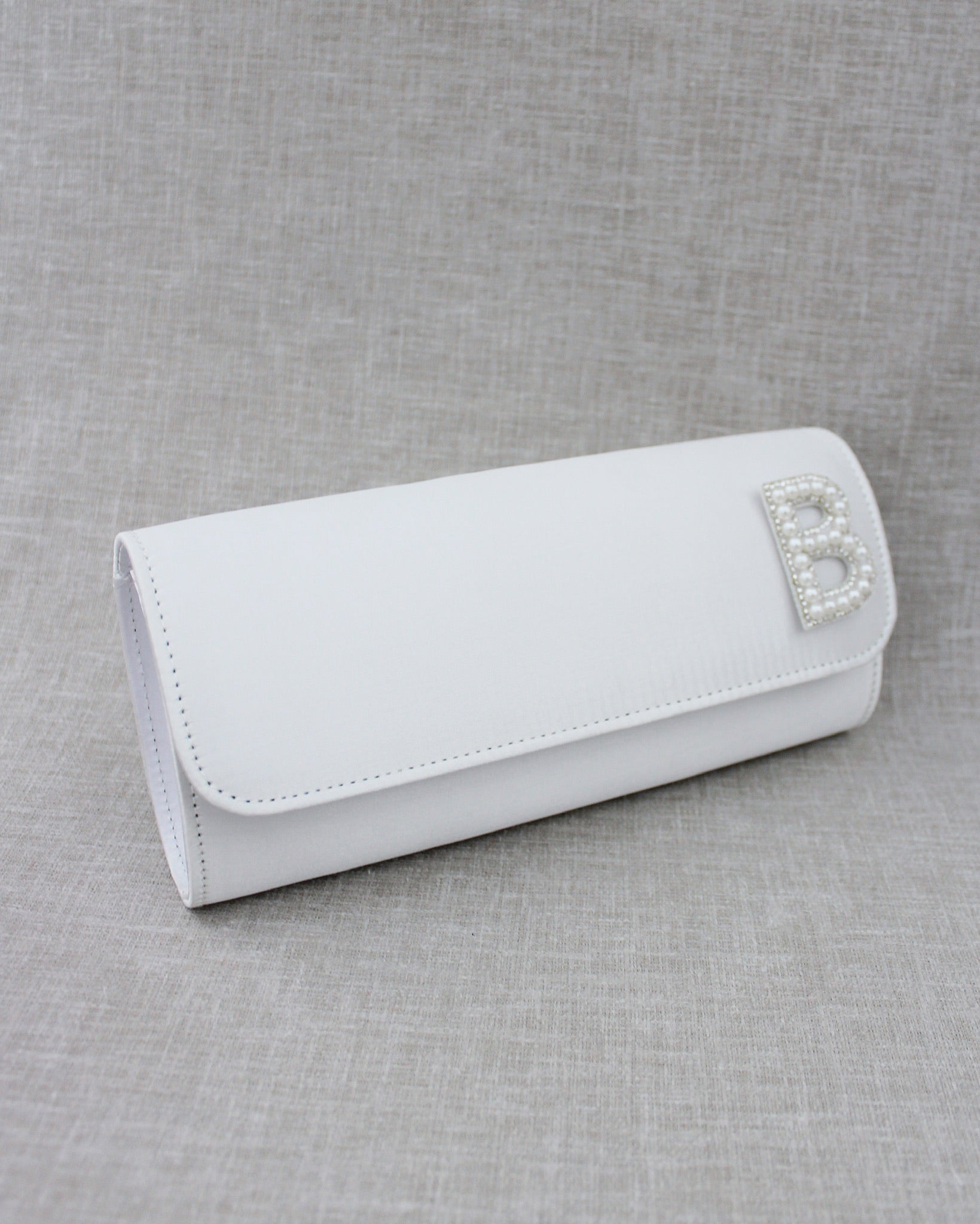 This smooth satin envelop wedding clutch creates a simple yet elegant look. With personalized pearls and rhinestones letter applique, it is a beautiful complement to your bridal gown, evening dress, casual dress, and a perfect ensemble for wedding, parties, as a bridesmaids gifts, or any special occasions.
