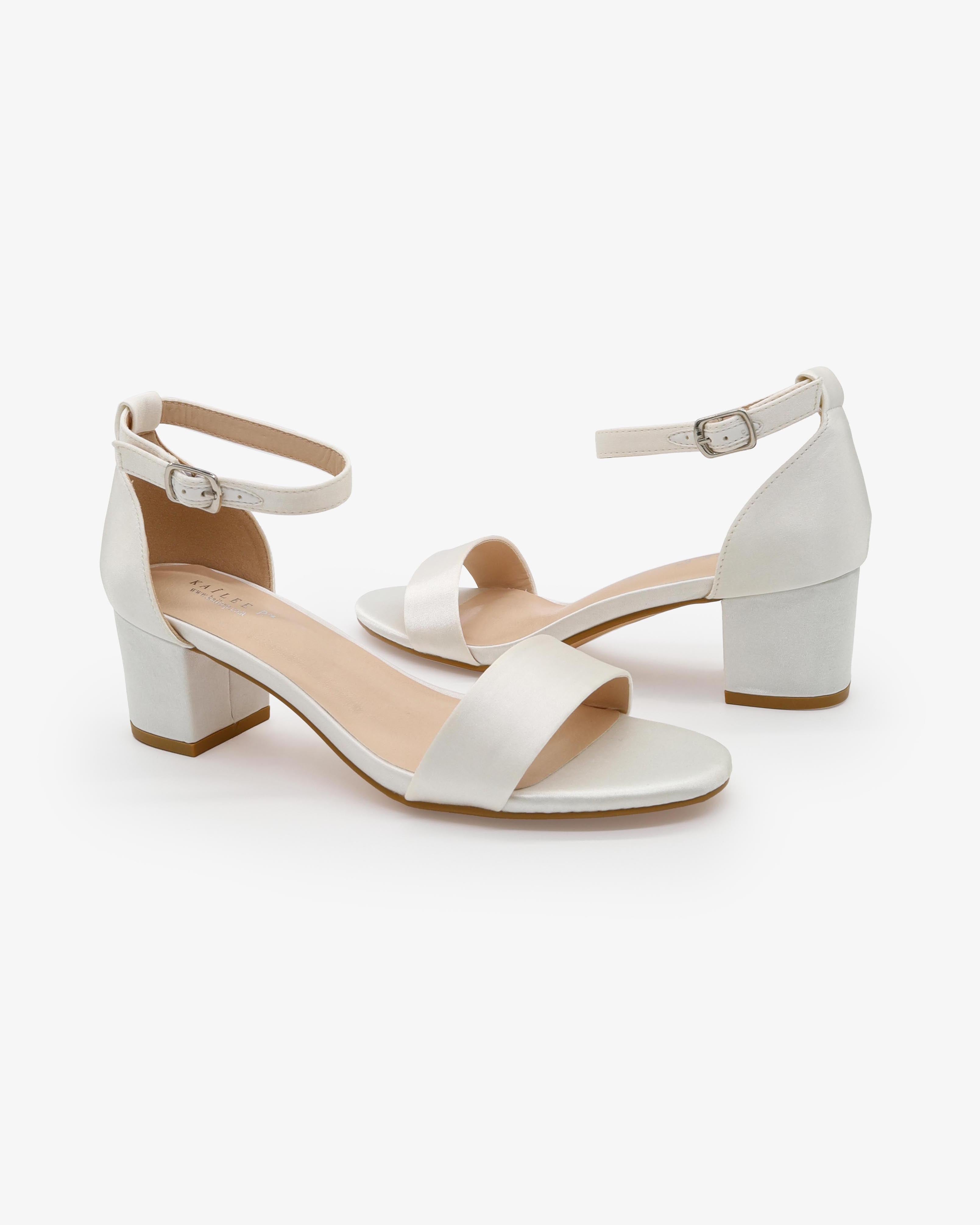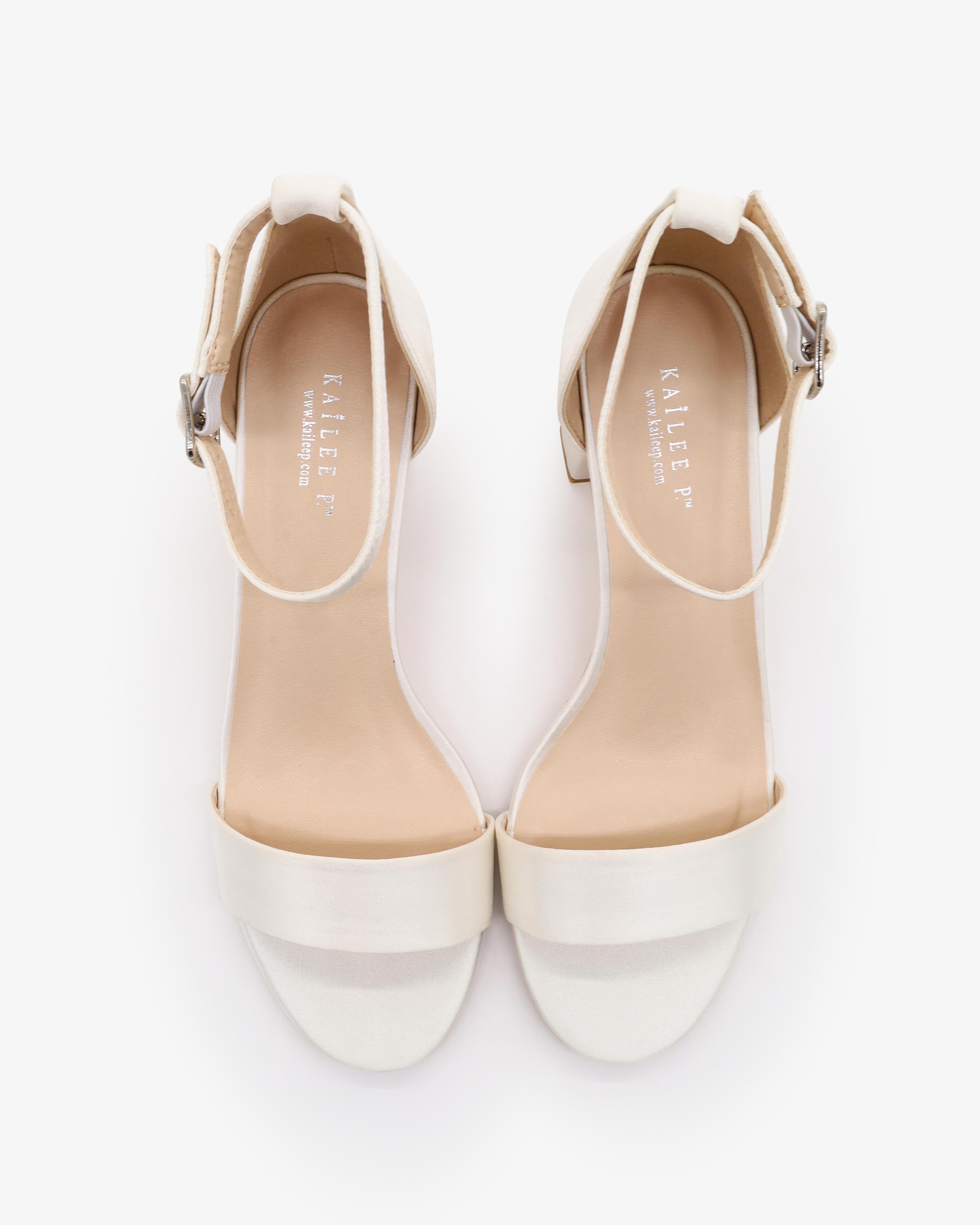 Satin Block Heel Wedding Sandals with Ankle Strap