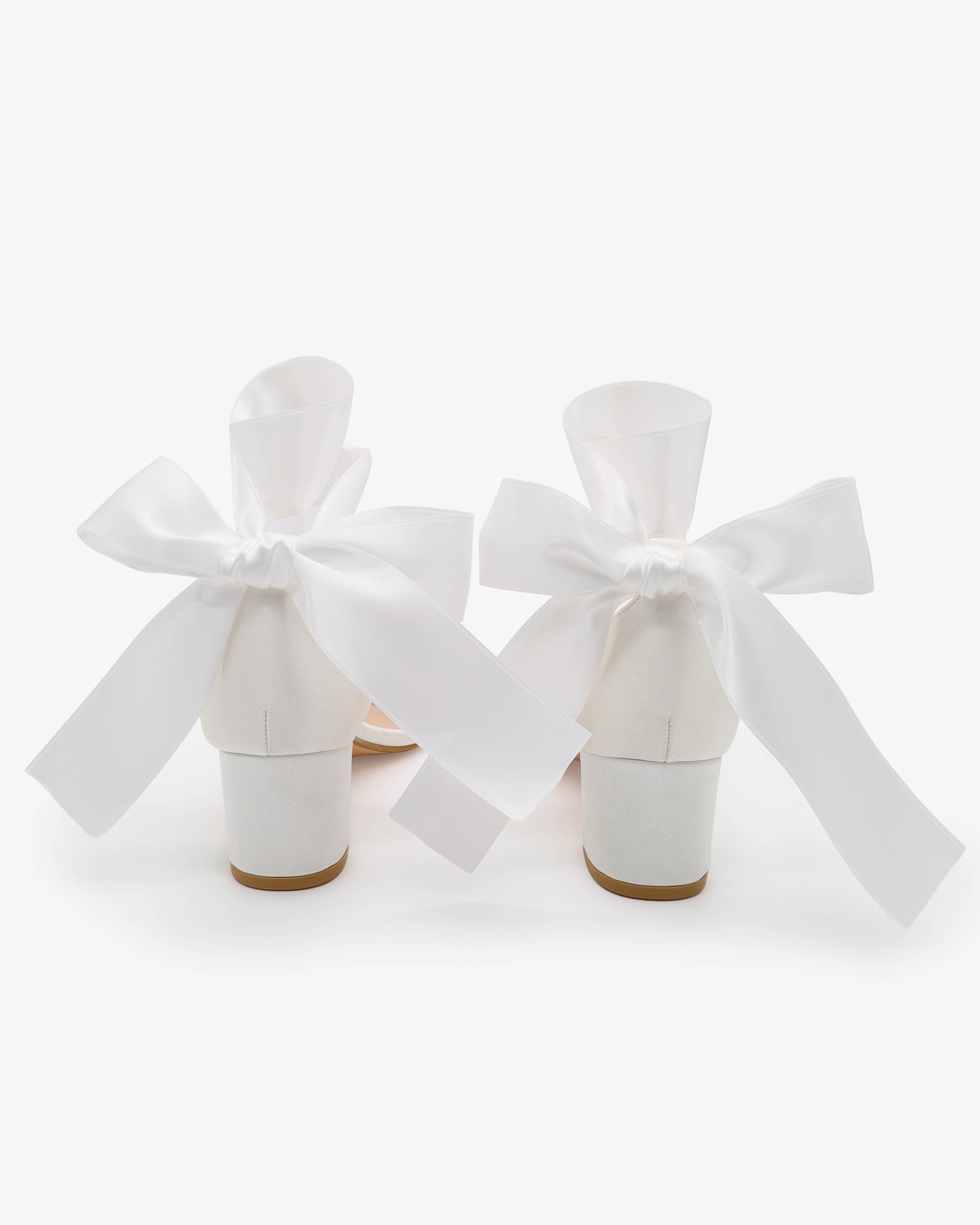Satin Block Heel Wedding Sandal with Wrapped Ribbon Tie