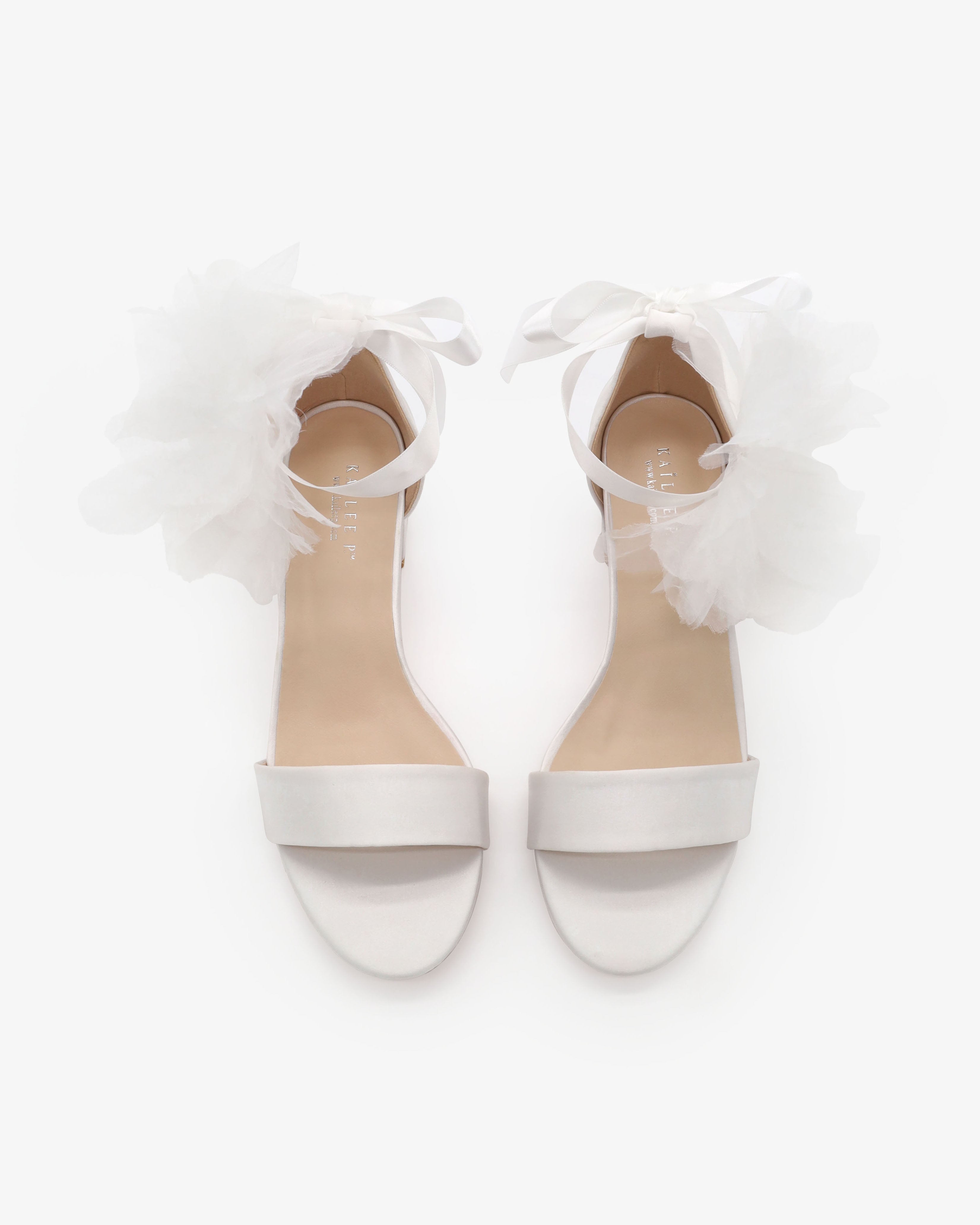 Satin Block Heel Wedding Sandals with Ophelia Flowers