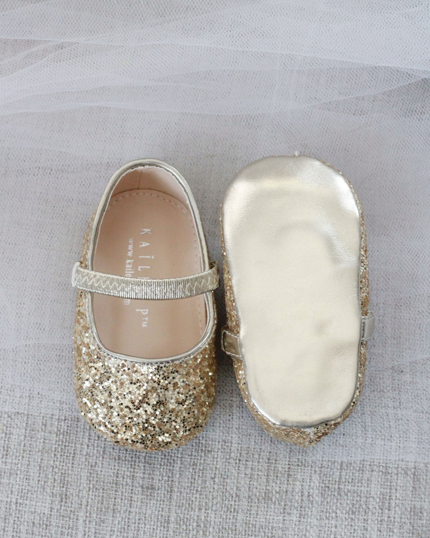 Beautiful allover rock glitter ballet flats with matching hair accessories for baby girls. Perfect gift for baby's first Christmas, Holiday party, family picture.