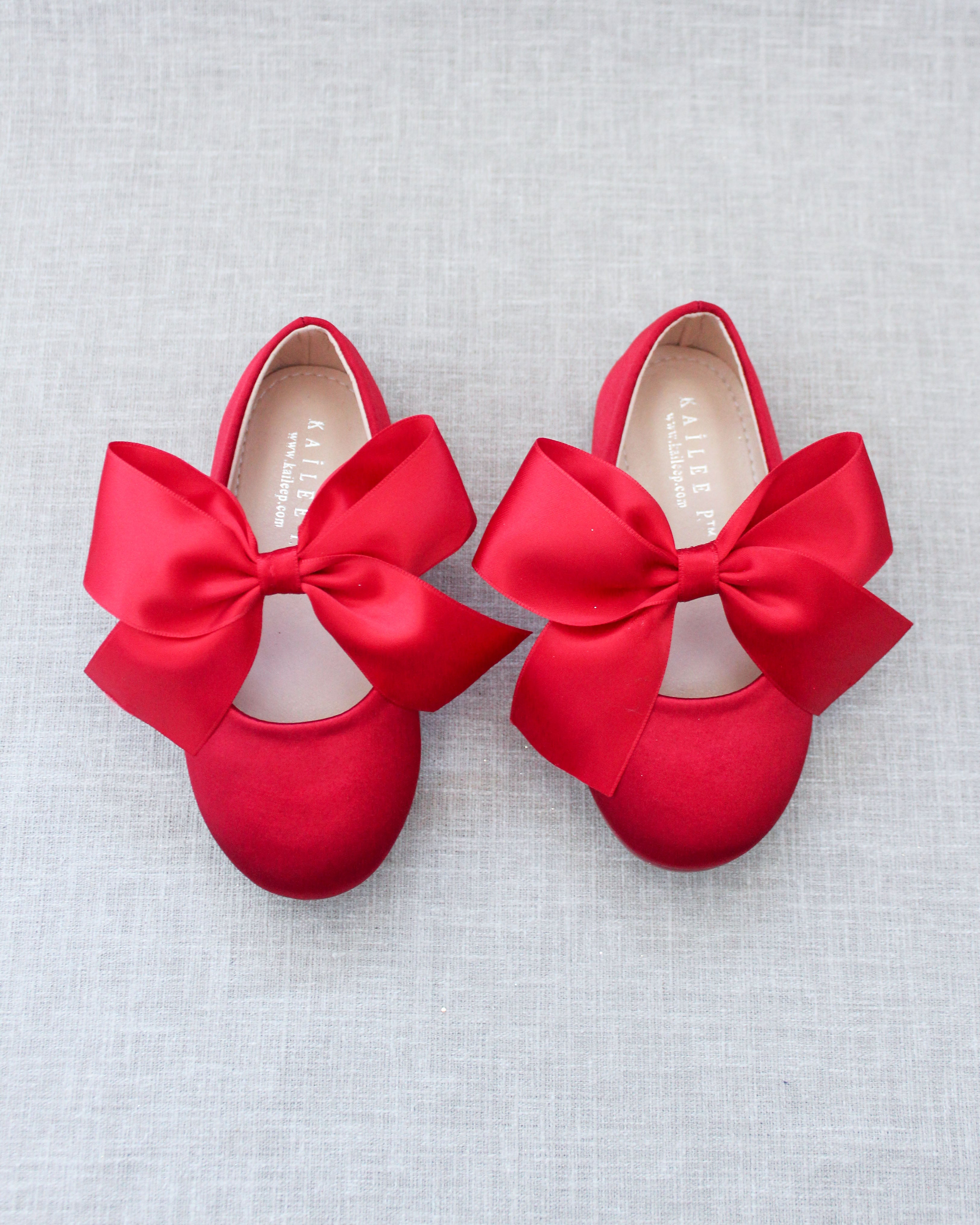 Beautiful satin mary jane flats with satin bow and matching hair accessories for baby girls. Perfect gift for baby's first Christmas, Holiday party, family picture.