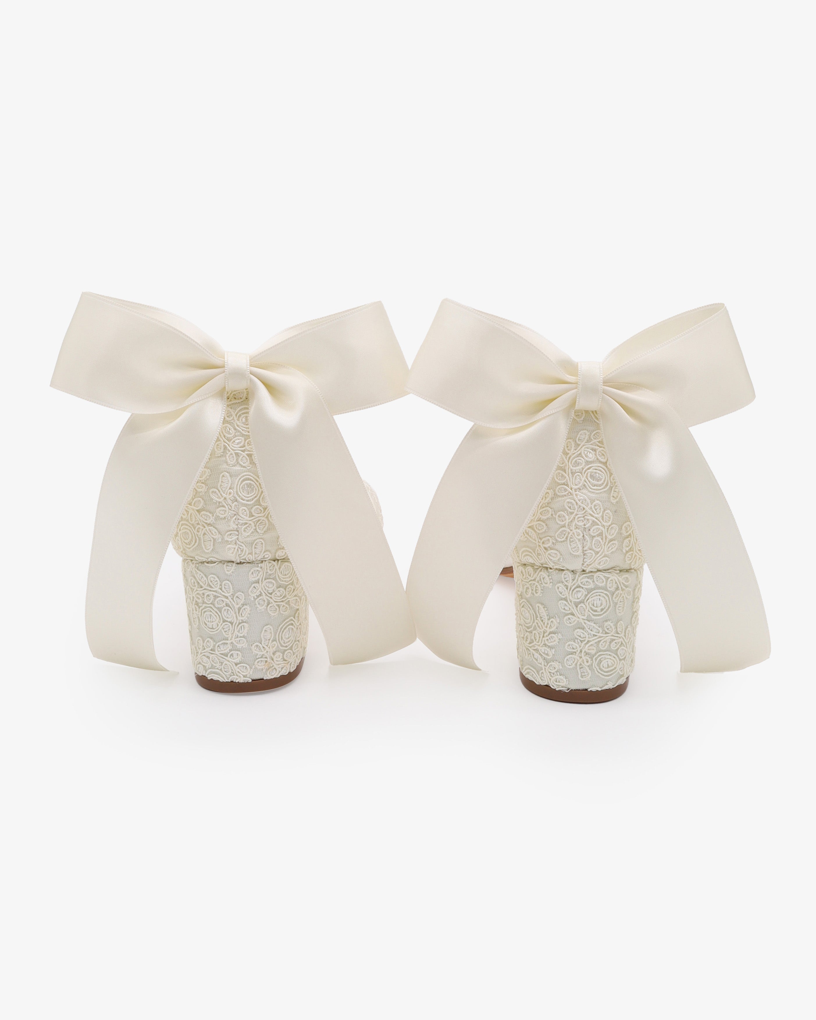 Crochet Lace Block Heel Wedding Sandals with Back Satin Bow