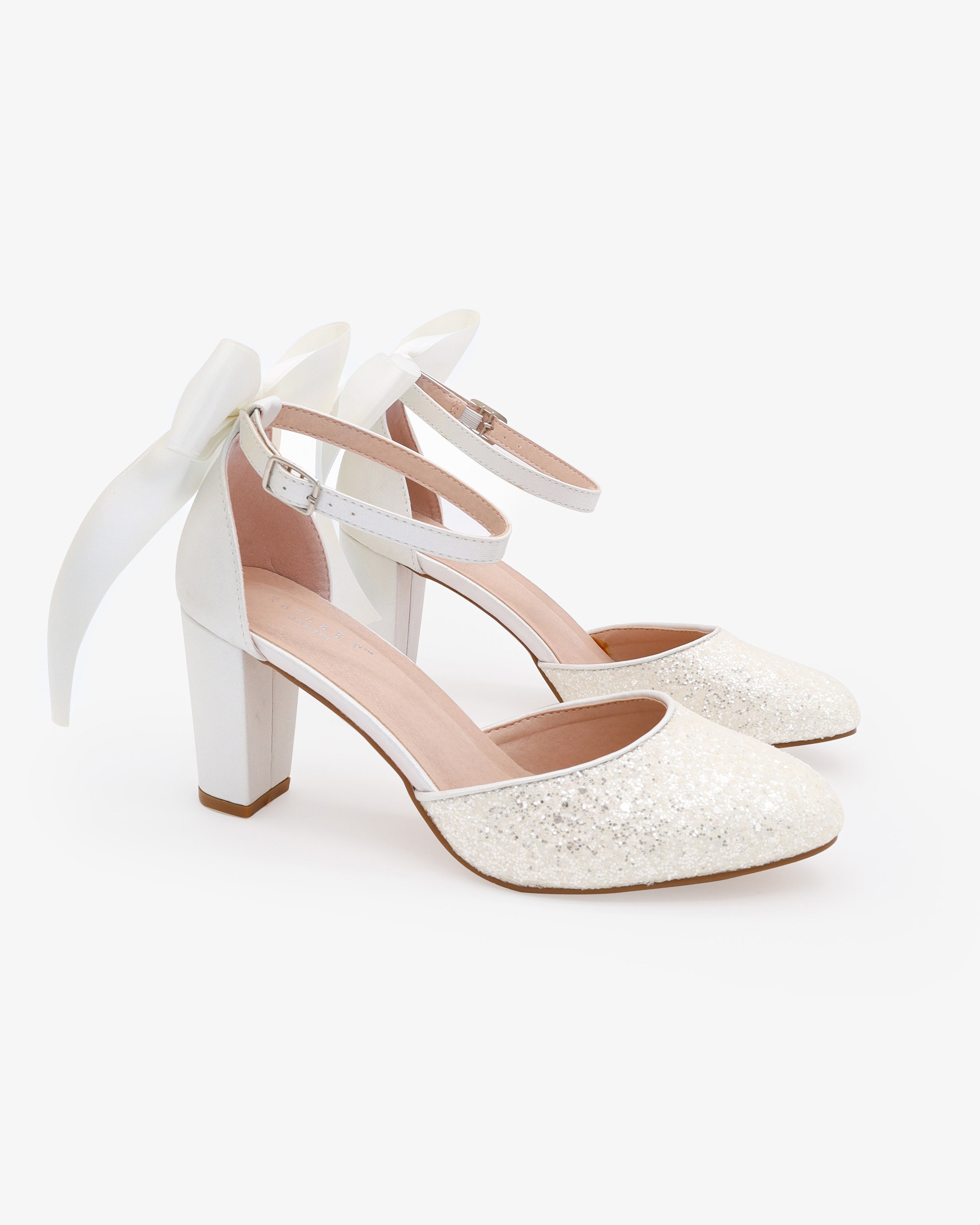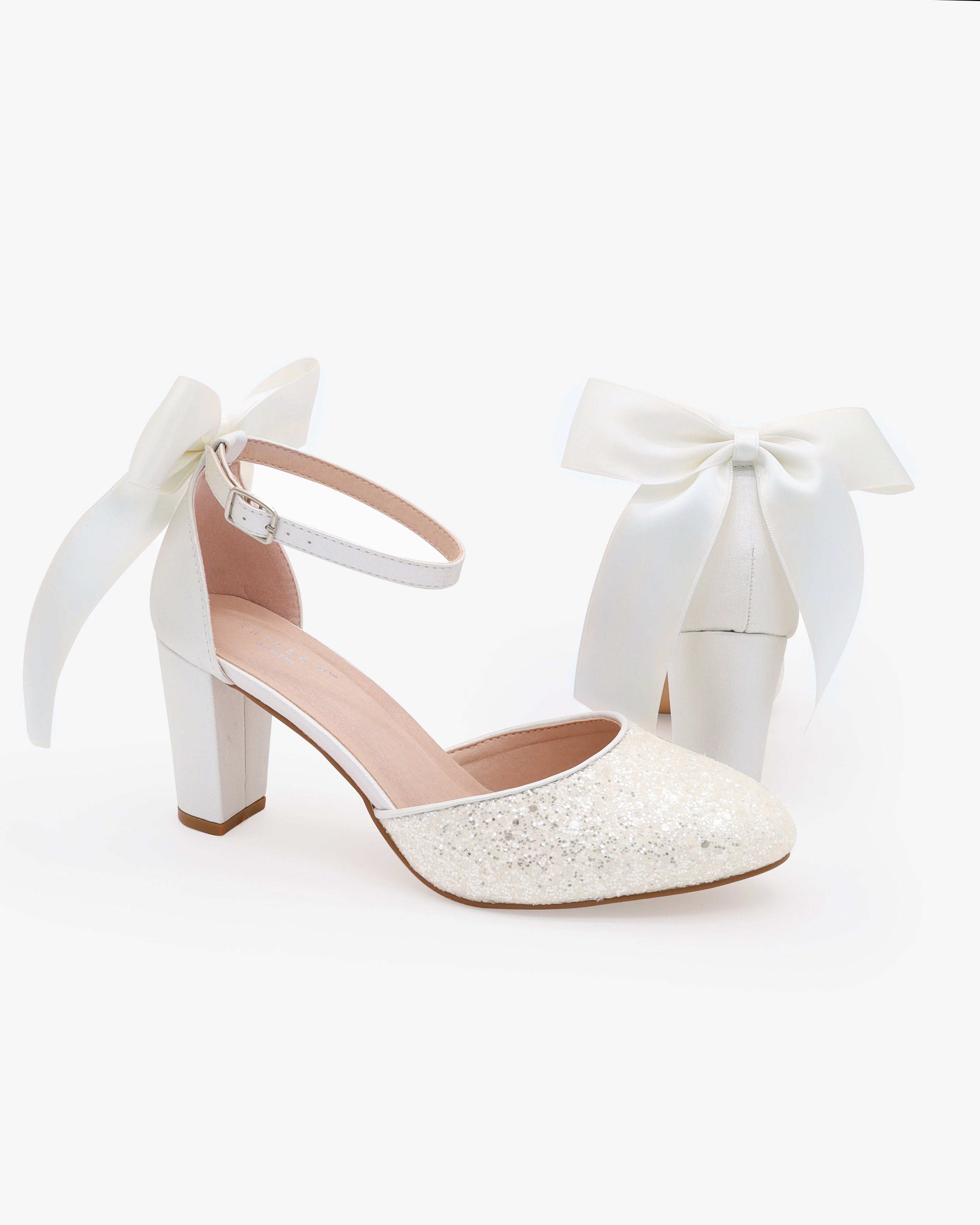 Rock Glitter Block Heel with Back Satin Bow