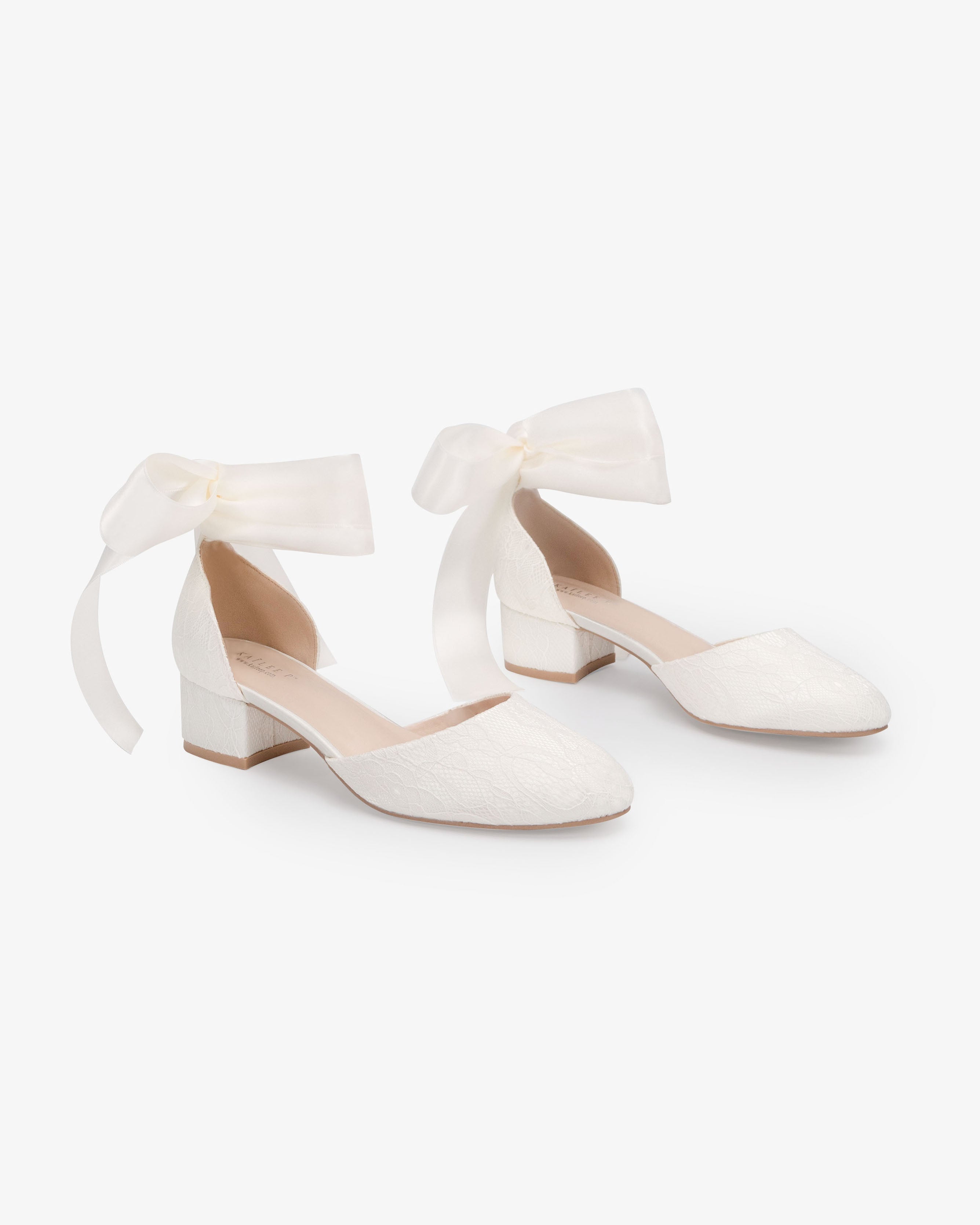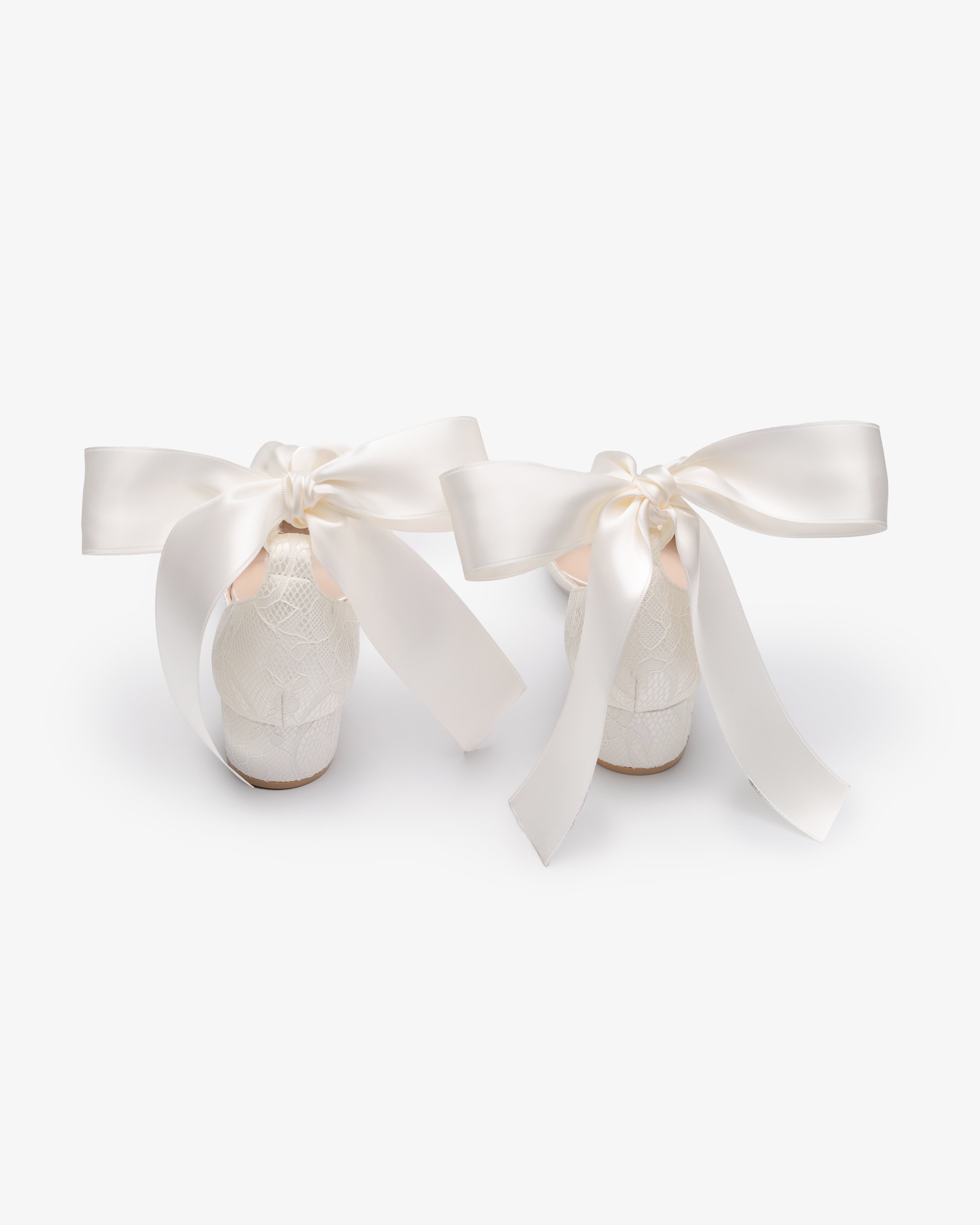 Step into timeless elegance with these lace low block heel, designed for brides who want both comfort and stylish on their big day. Adorned with matching satin or sheer ribbons that ties to an oversized bow around ankle to add dancerly grace to any ensemble a romantic and feminine touch to your wedding look. The low block heel provides comfort, making them perfect for walking down the aisle, dancing through the reception, and for all day long celebration. Perfect for brides, bridesmaids, prom night, date night, and any special occasions.