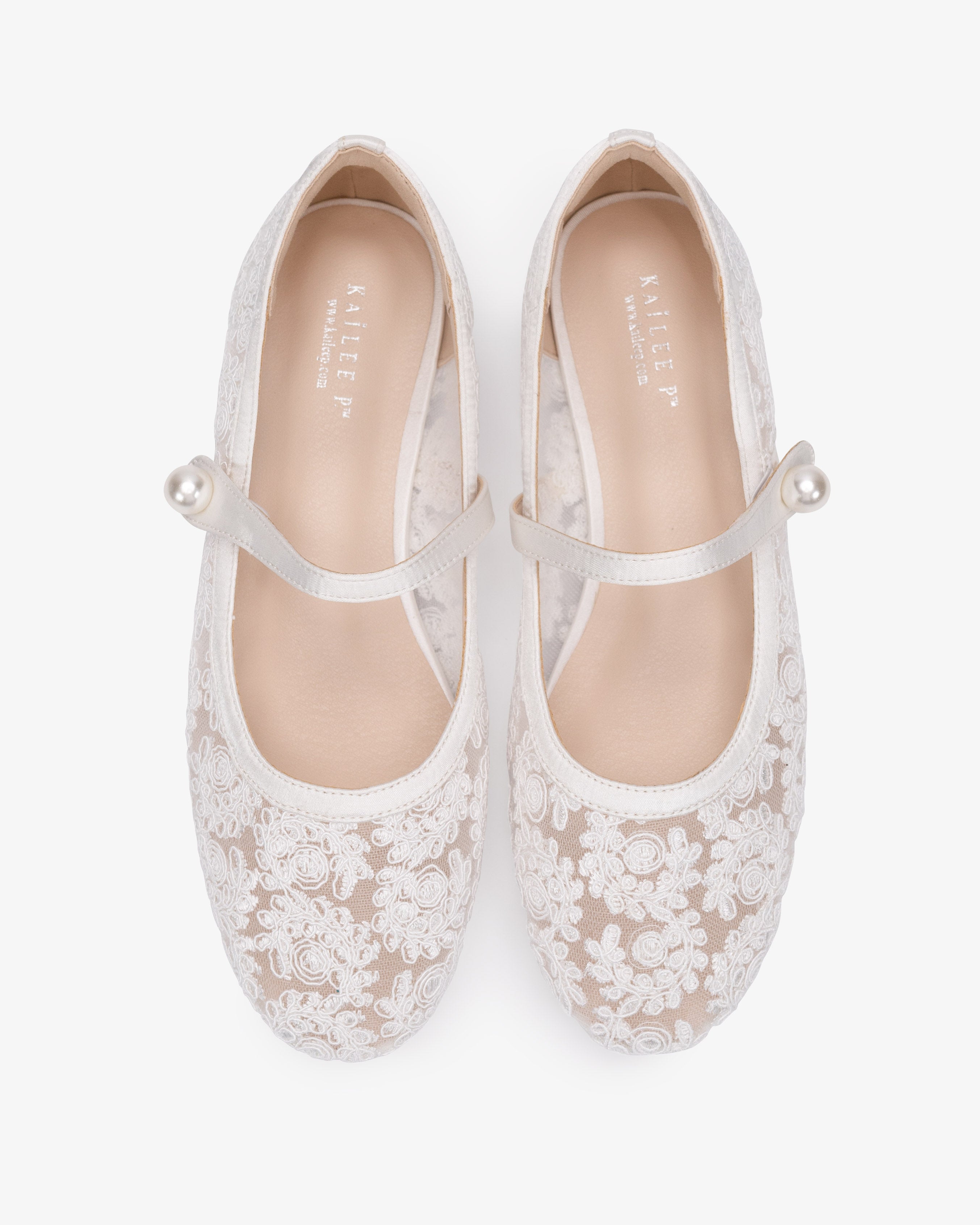 Add a touch of vintage romantic wedding look with these crochet lace Mary Jane shoes. With the delicate lace details, this bridal shoes show a timeless elegance with modern comfort. The pearl accent on the Mary Jane strap adds a graceful touch to the ensemble and ensures all-day comfort for walking down the aisle, receptions, and dancing the night away. Pair it beautifully with lace wedding gowns, tea party dresses, or bohemian bridal styles, a versatile choice for traditional, garden, or destination weddings. Perfect for brides, bridesmaids, prom night, date night, or any special occasions.