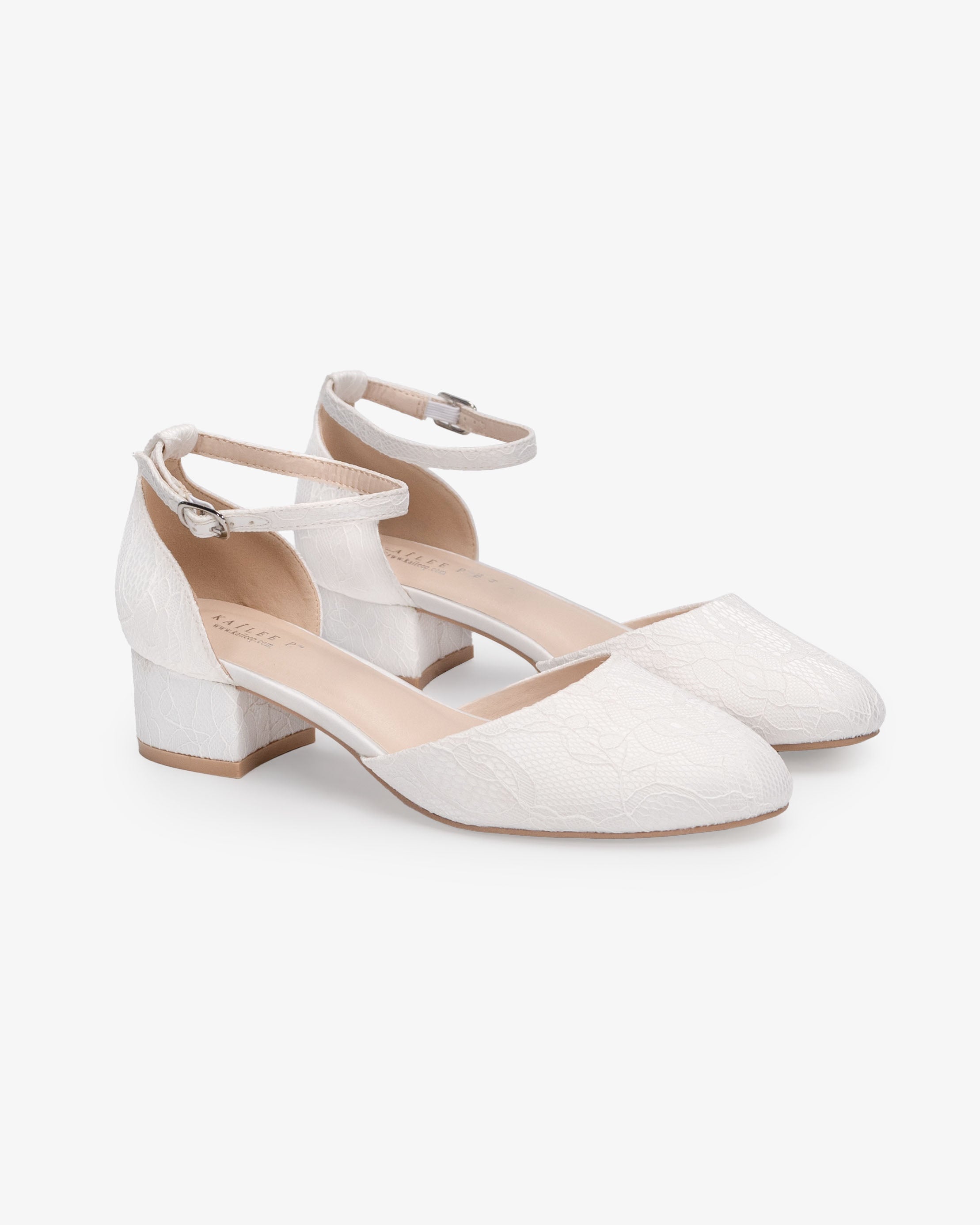 Lace Round Toe Low Block Heel Wedding Shoes with Ankle Strap