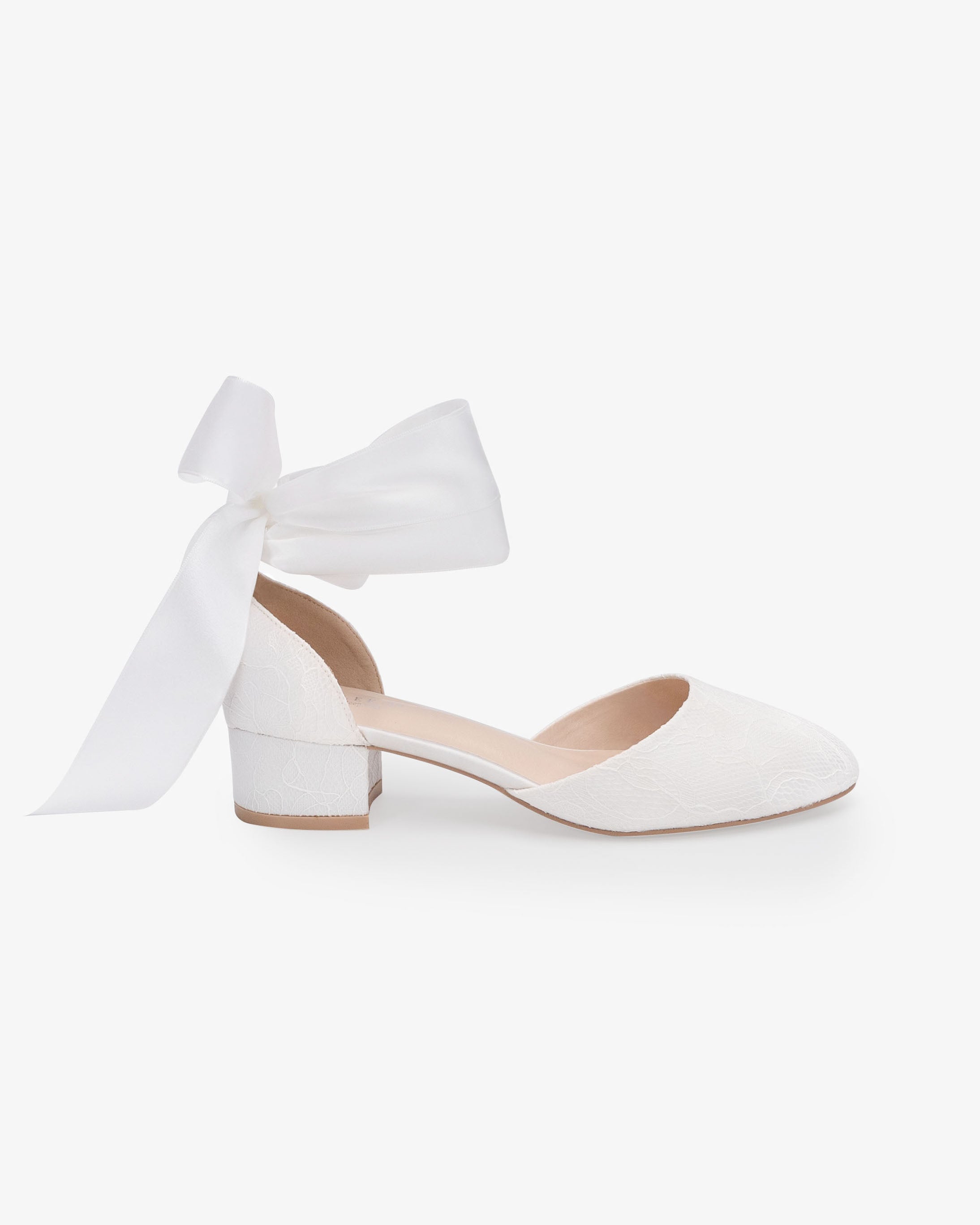 Step into timeless elegance with these lace low block heel, designed for brides who want both comfort and stylish on their big day. Adorned with matching satin or sheer ribbons that ties to an oversized bow around ankle to add dancerly grace to any ensemble a romantic and feminine touch to your wedding look. The low block heel provides comfort, making them perfect for walking down the aisle, dancing through the reception, and for all day long celebration. Perfect for brides, bridesmaids, prom night, date night, and any special occasions.