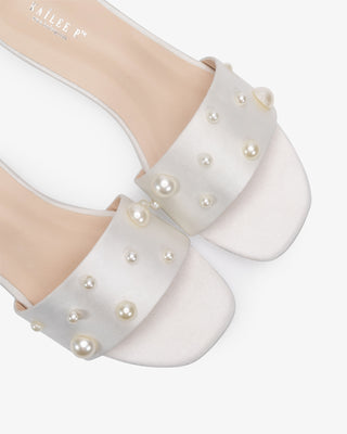 At Kailee P., we believe your bridal shoes should be as special as your gown and for you to walk down the aisle in style & comfort. Our curated collection blends elegant design and all-day comfort, featuring lux satin, delicate lace, romantic pearl details. Whether you're dreaming of stilettos, block heels, flats, or a “something blue” touch, you'll find your perfect pair here.