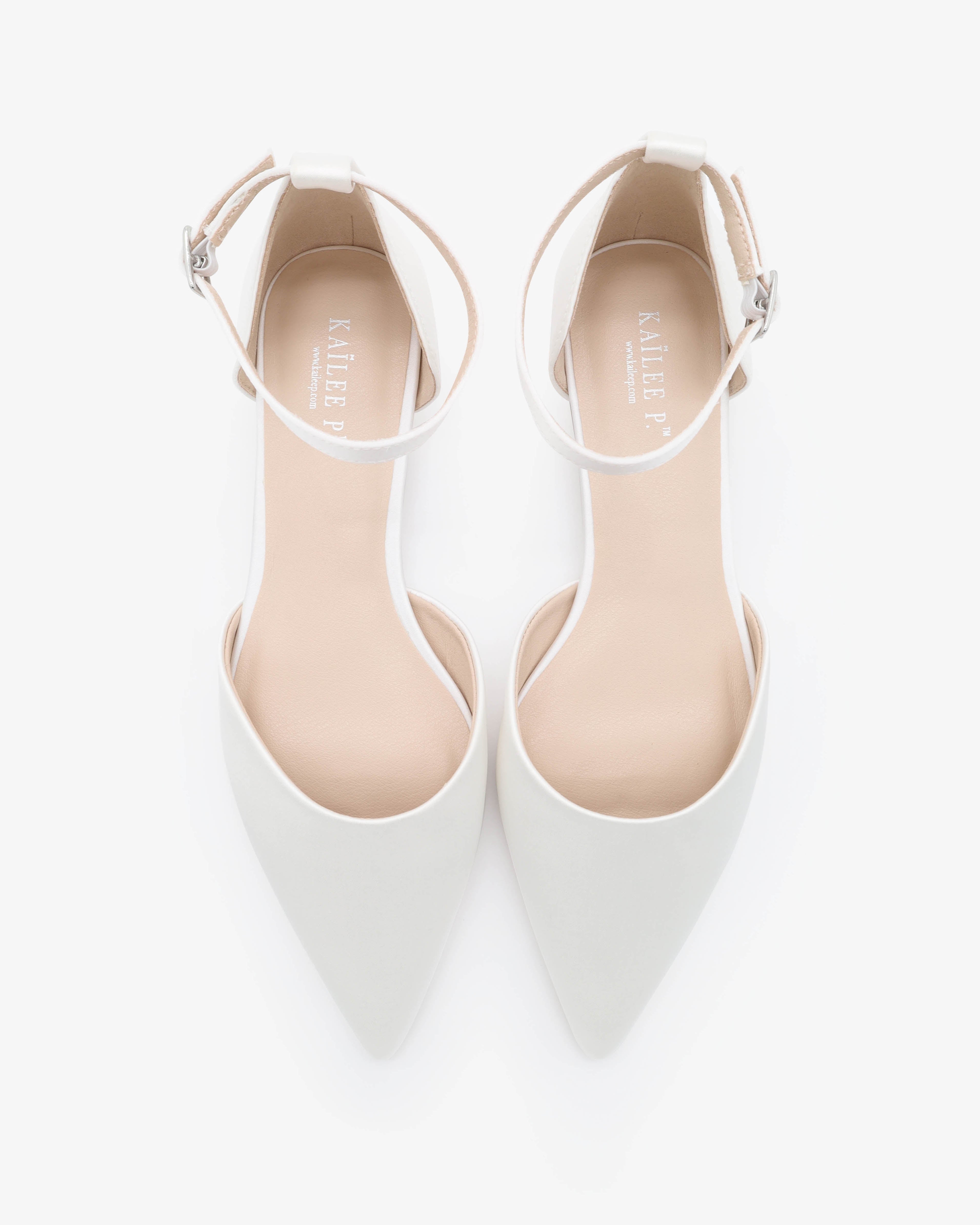 Satin Pointy Toe Wedding Flats with Ankle Strap