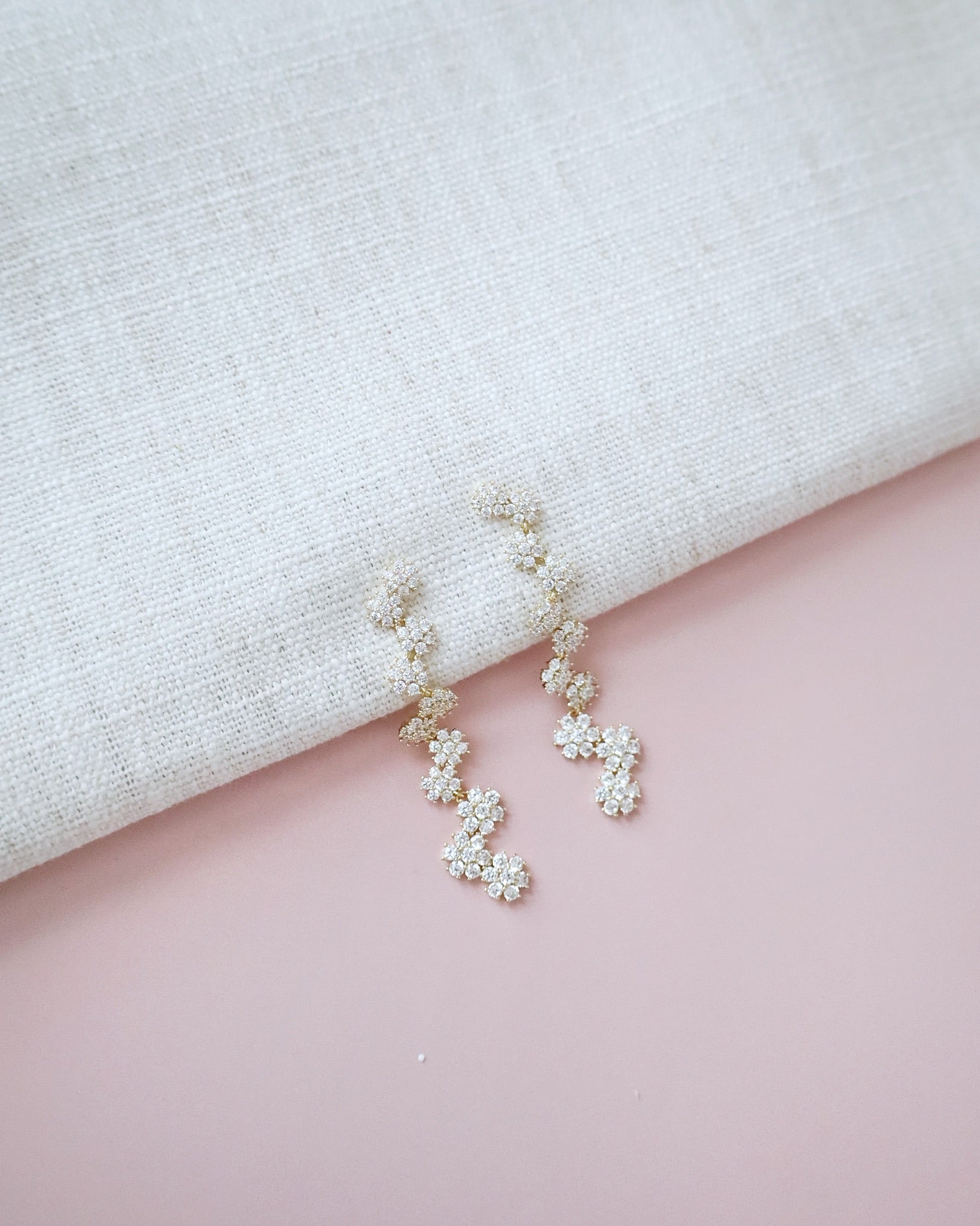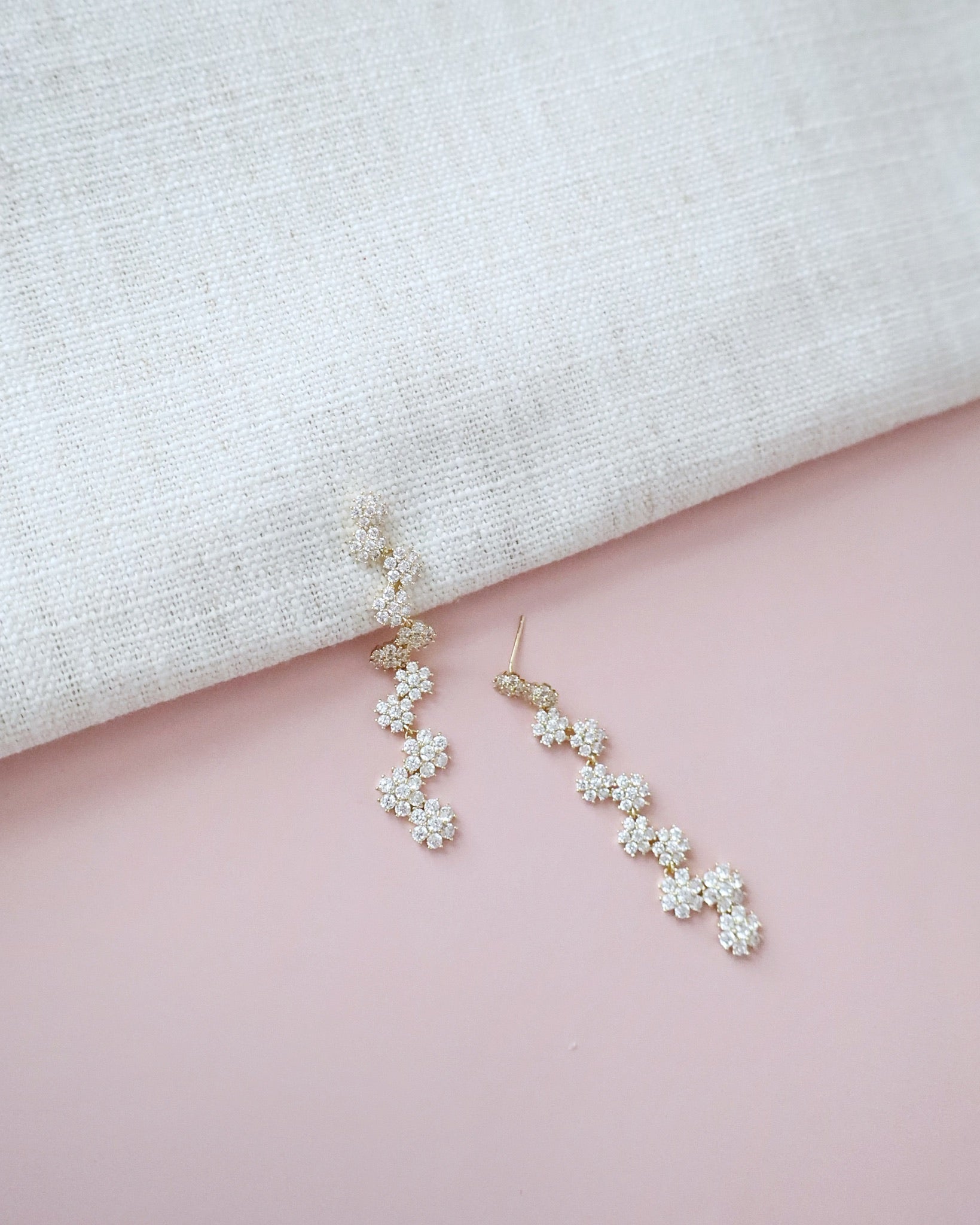 A long floral-shaped rhinestones that gracefully cascade creating a stunning and glamour silhouette. Whether you are attending a glamourous event, or looking to make statement to your daily look, this earring is effortlessly illuminate your style. Perfect for prom, date night, wedding, bridesmaids, holiday party, and any special occasions.