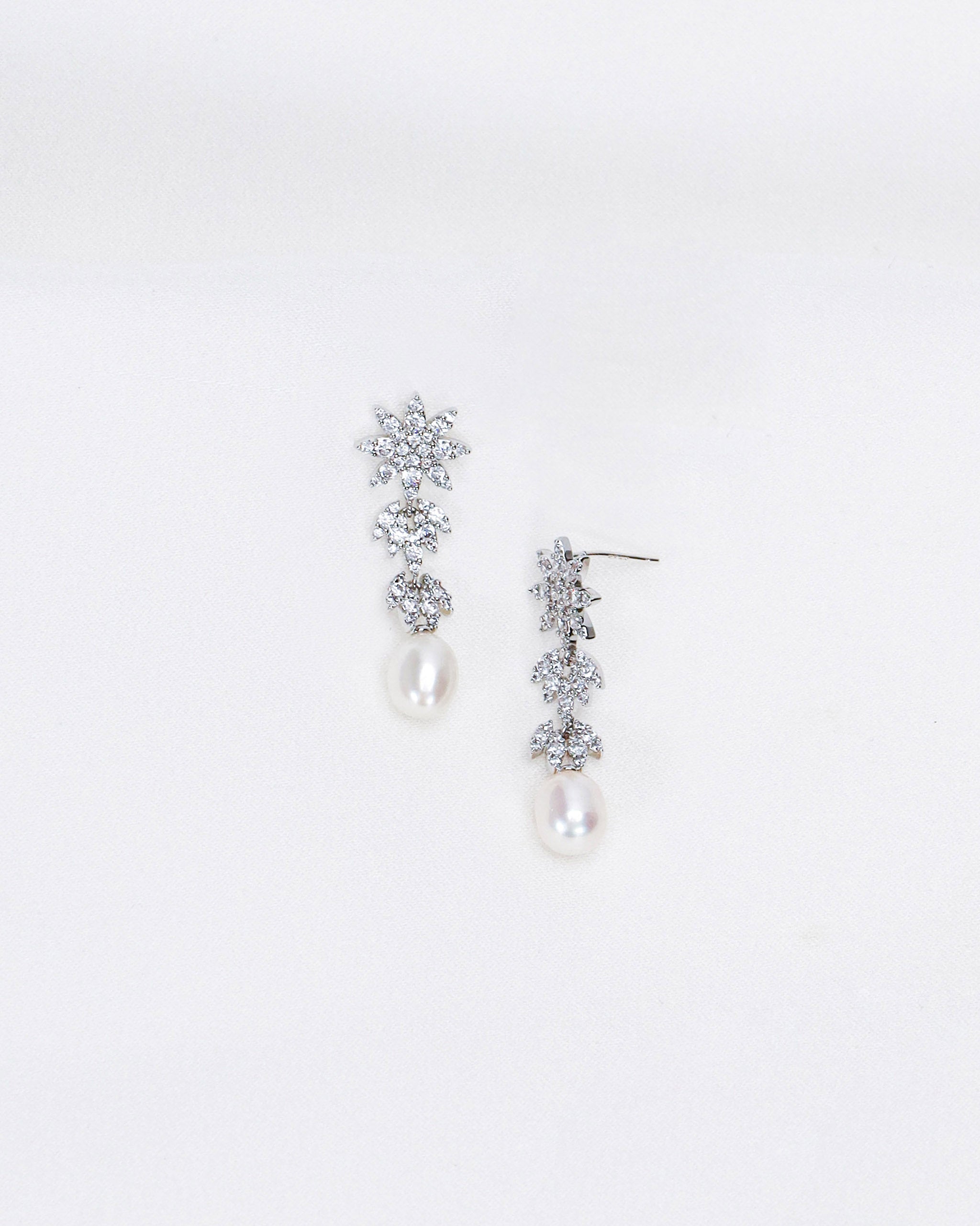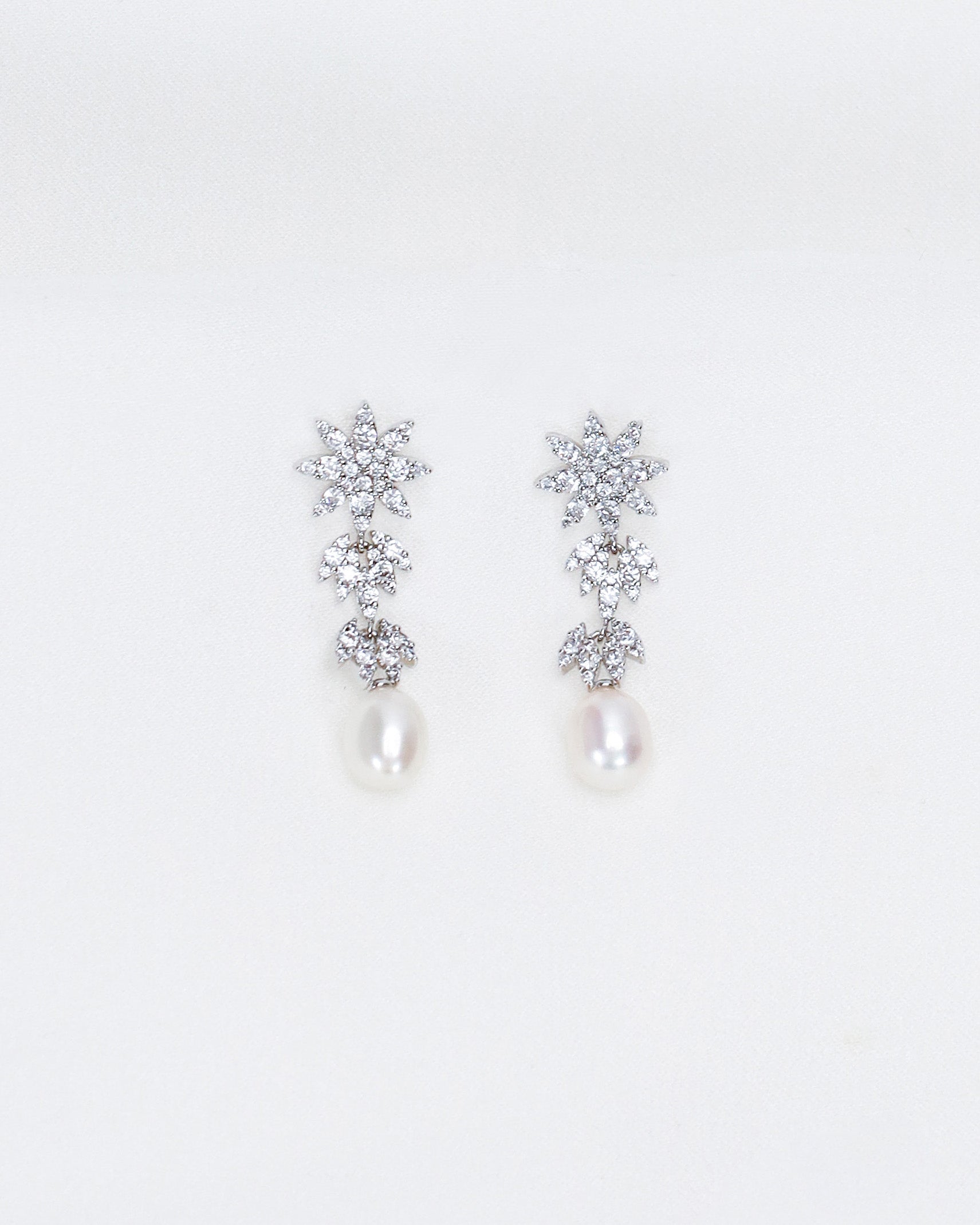 Delicate and glamourous, these stud earrings add the perfect touch of sparkle to any special outfit. Featuring sparkly dainty star shaped rhinestones accented with a dangling pearl.
