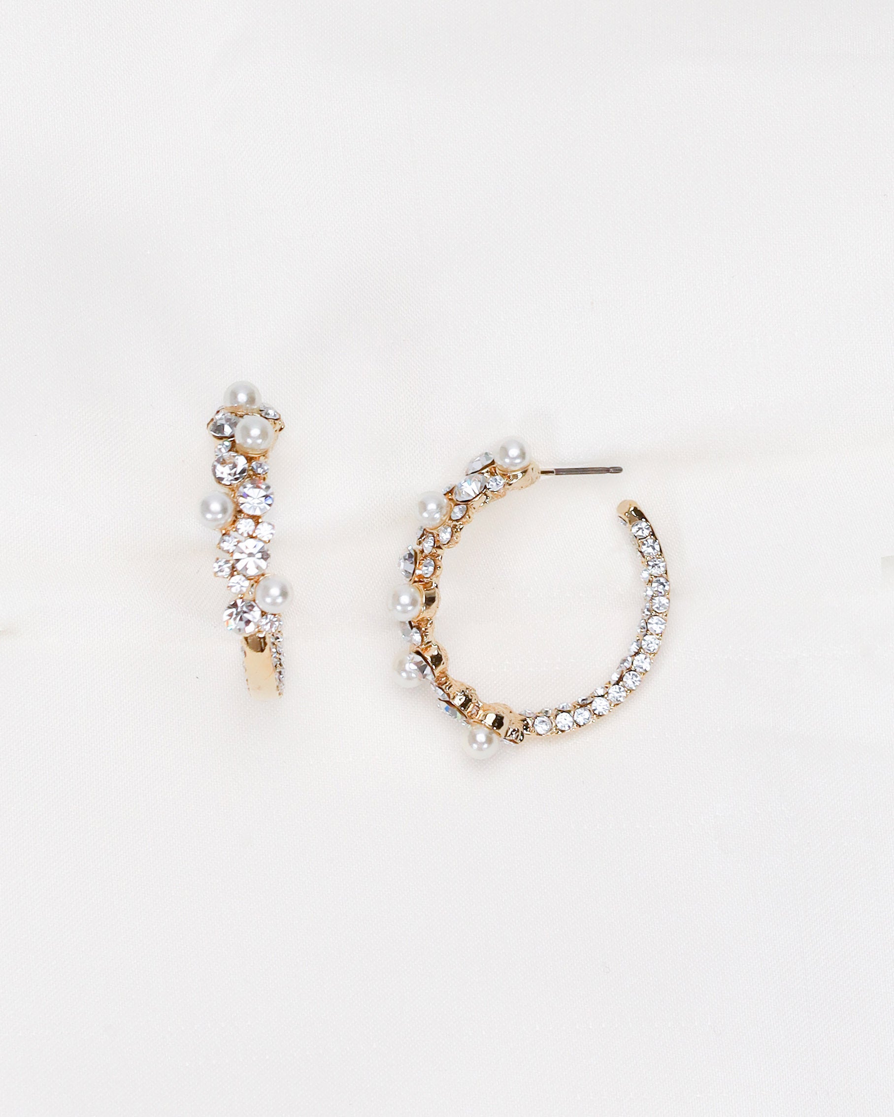 Delicate and charming, these pearl & crystal earrings add the perfect touch of sparkle to any special outfit. Featuring dainty pearls nestled among shimmering crystal accents in a hoops earring design. Lightweight and comfortable for all-day wear.