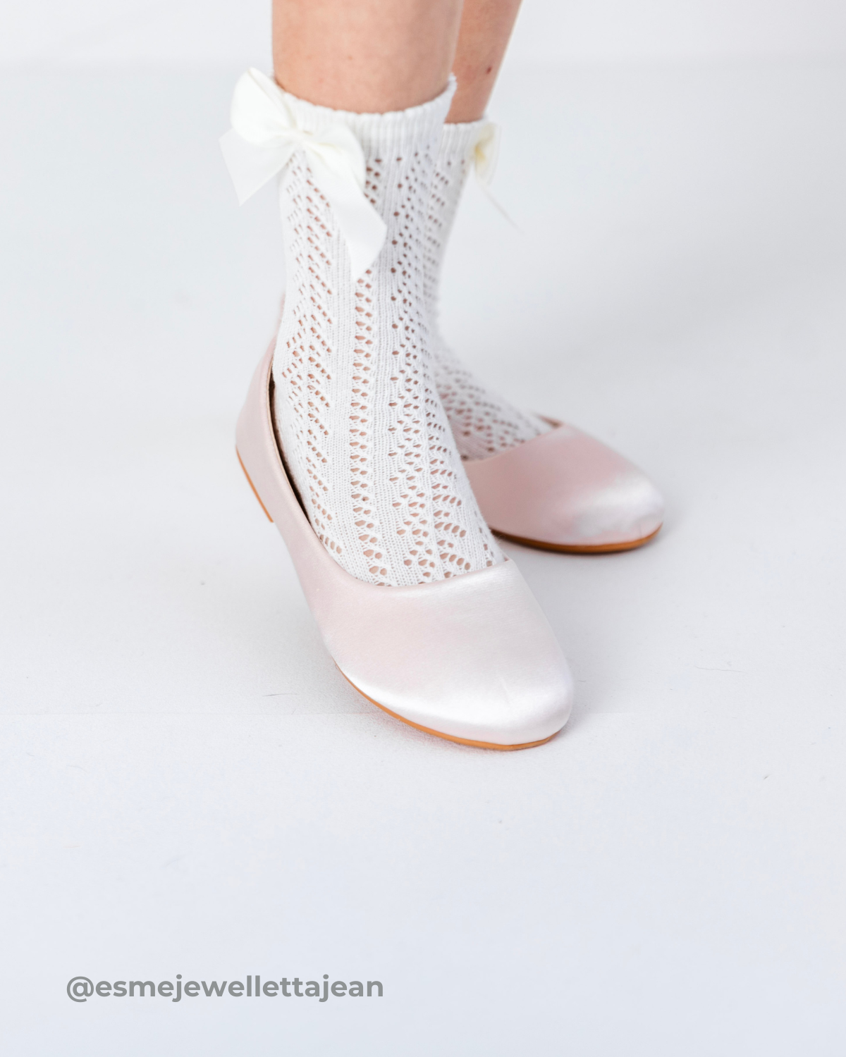 Classic satin flats with velcro ankle strap makes the perfect simplicity for any occassion. For flower girls, pair up with tutu ballerinas, fairies or birthday parties.