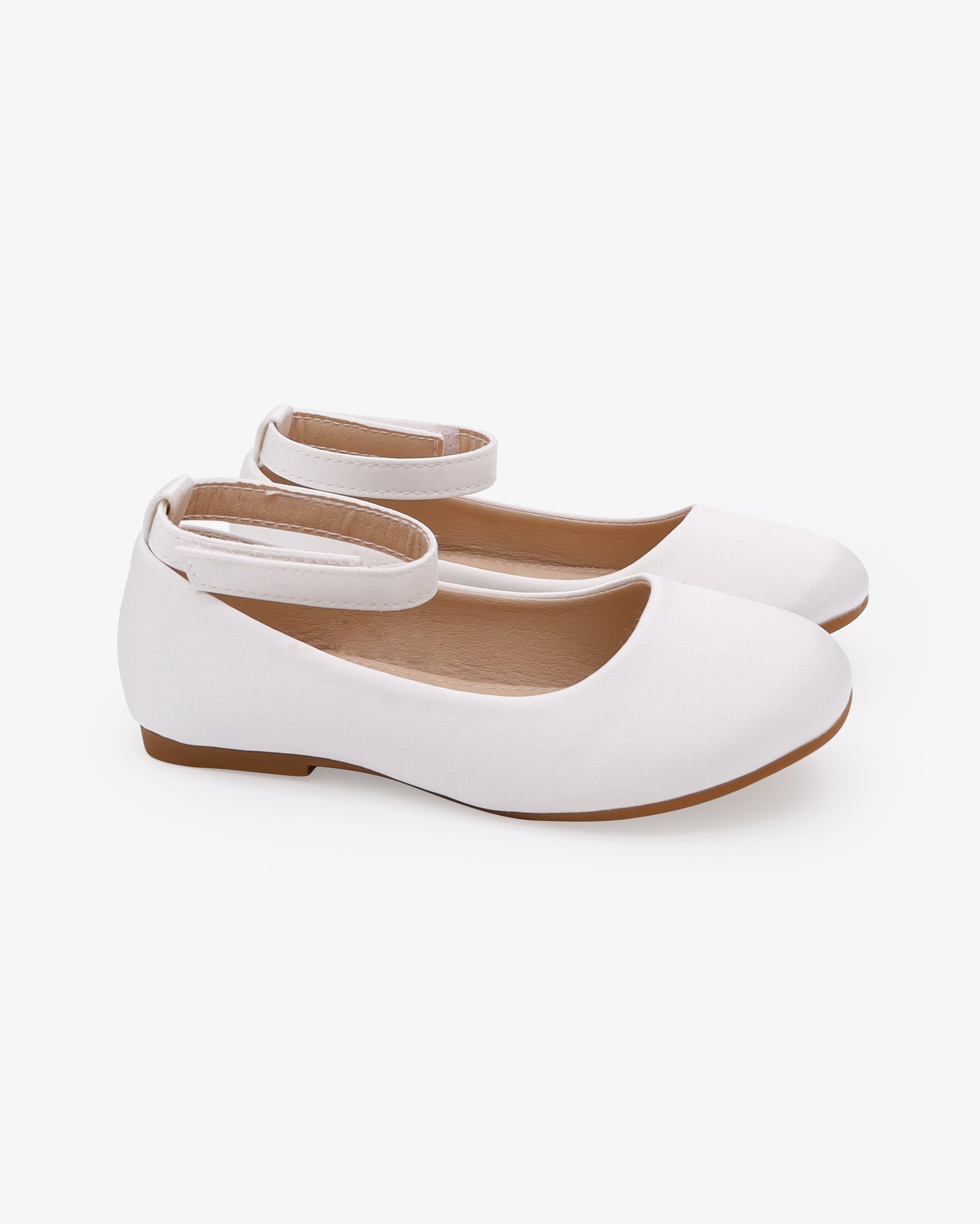 Classic satin flats with velcro ankle strap makes the perfect simplicity for any occasion. For flower girls, pair up with tutu ballerinas, fairies or birthday parties.