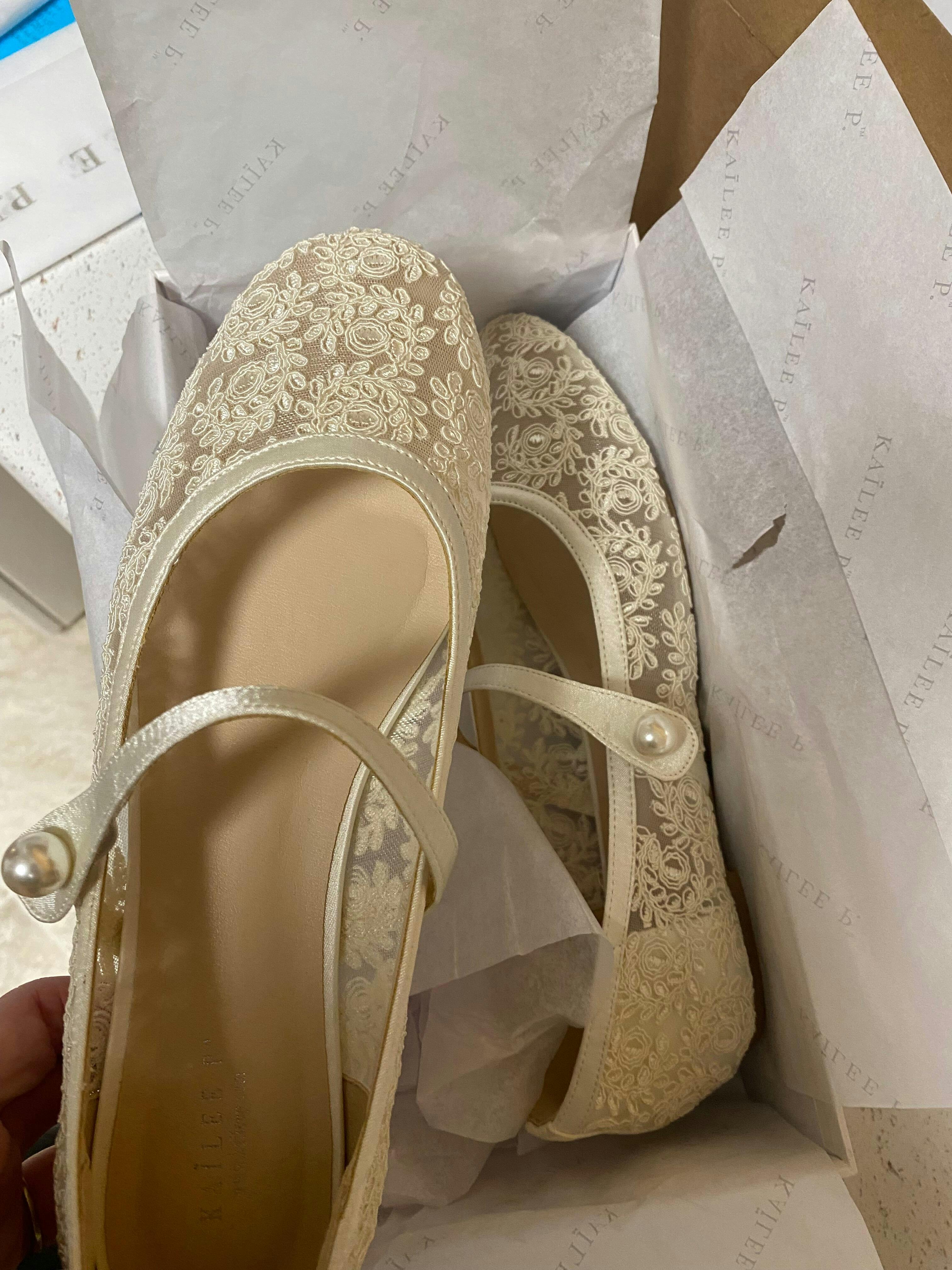 Add a touch of vintage romantic wedding look with these crochet lace Mary Jane shoes. With the delicate lace details, this bridal shoes show a timeless elegance with modern comfort. The pearl accent on the Mary Jane strap adds a graceful touch to the ensemble and ensures all-day comfort for walking down the aisle, taking photos, and dancing the night away. Pair it beautifully with lace wedding gowns, tea party dresses, or bohemian bridal styles, a versatile choice for traditional, garden, or destination weddings. Perfect for brides, bridesmaids, prom night, date night, or any special occasions.