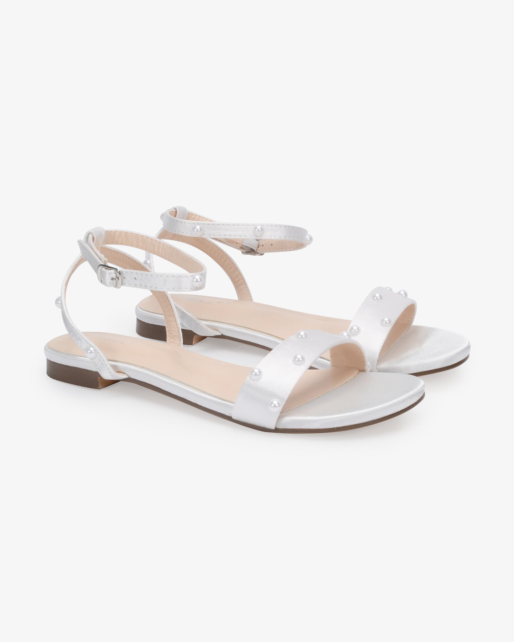 Satin Flat Wedding Sandal with Scattered Pearls