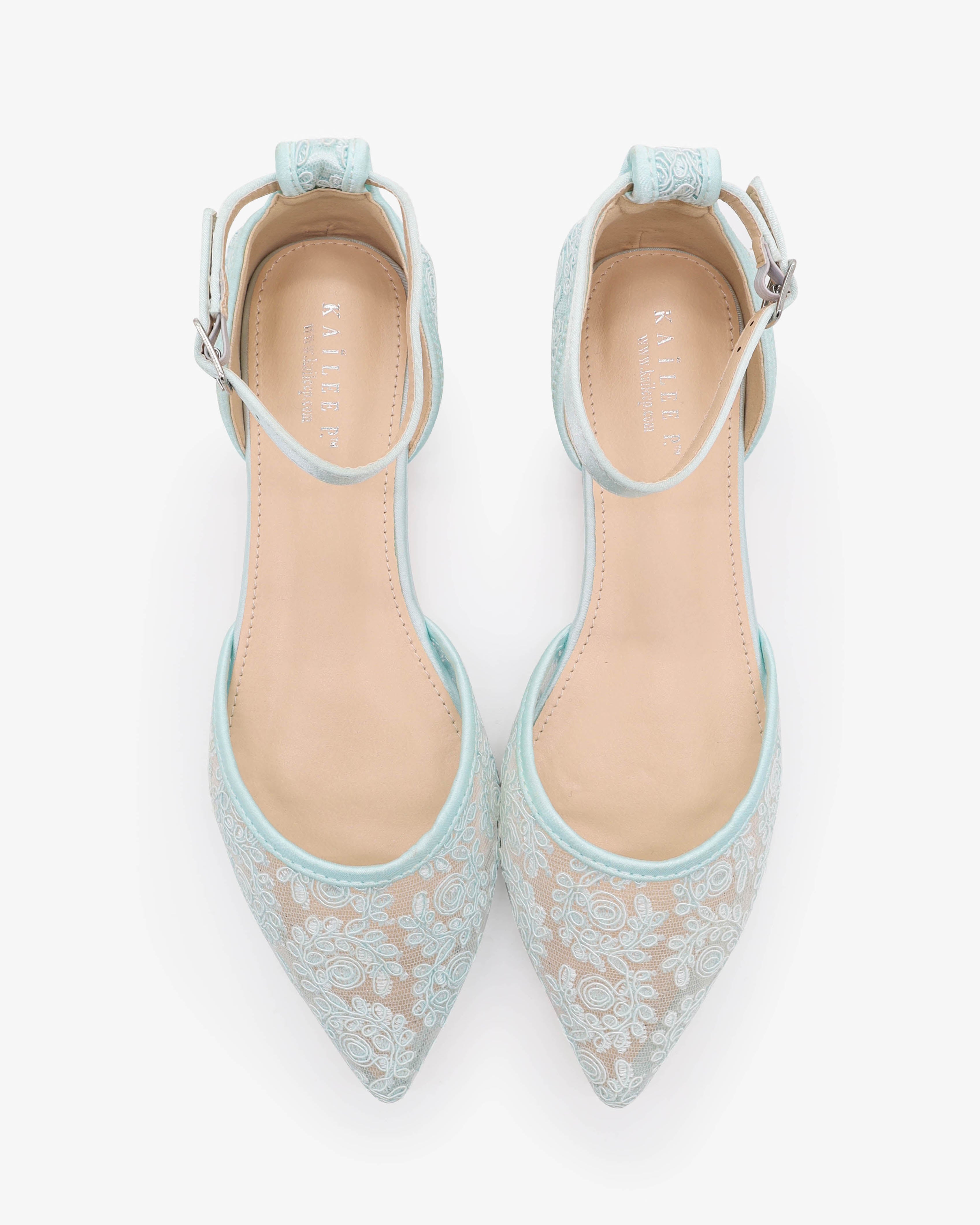 Crochet Lace Pointy Toe Flats with Ankle Strap