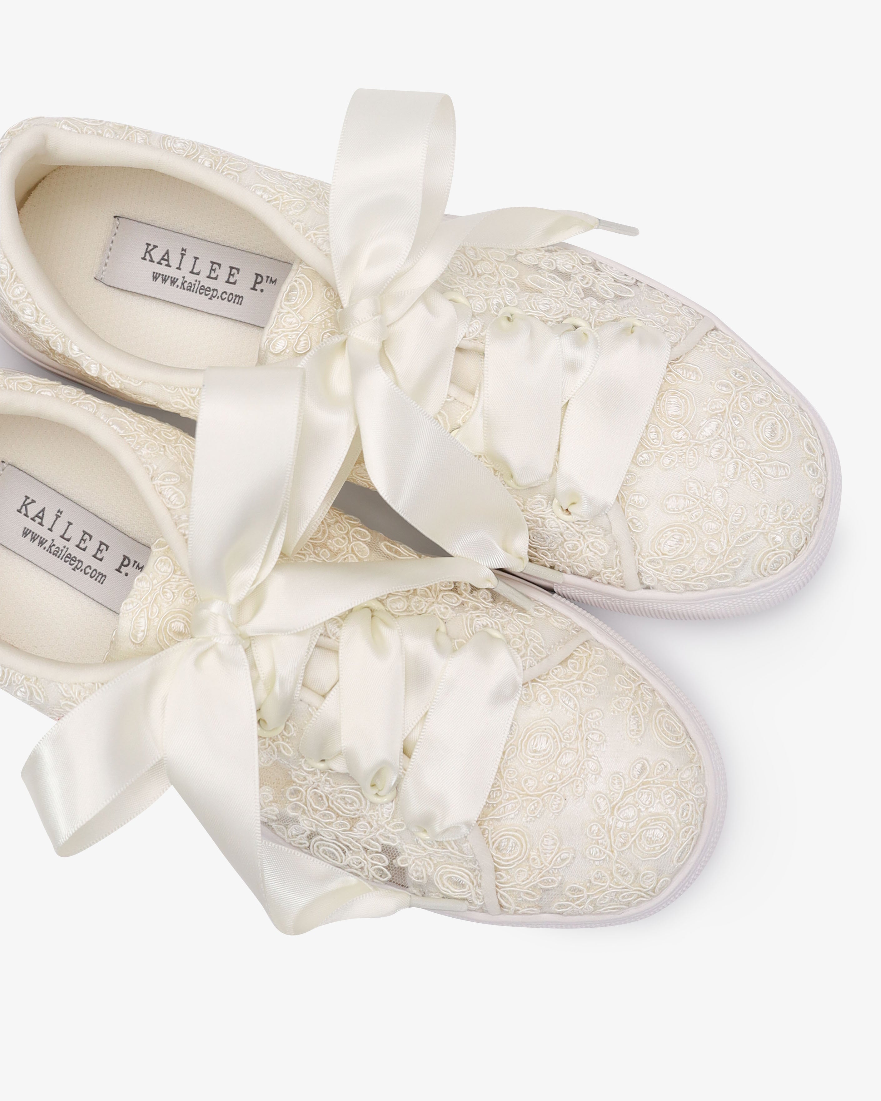 This crochet lace wedding sneakers combine both classic and comfort for any special occasions while adding a touch of personality to your outfit. The platform provides extra cushions, allowing you to dance the night away with ease. Perfect for wedding, bridesmaids, bridal shower, prom, birthday, or even pair them with your casual look. Choose between satin or sheer laces to customize your look.