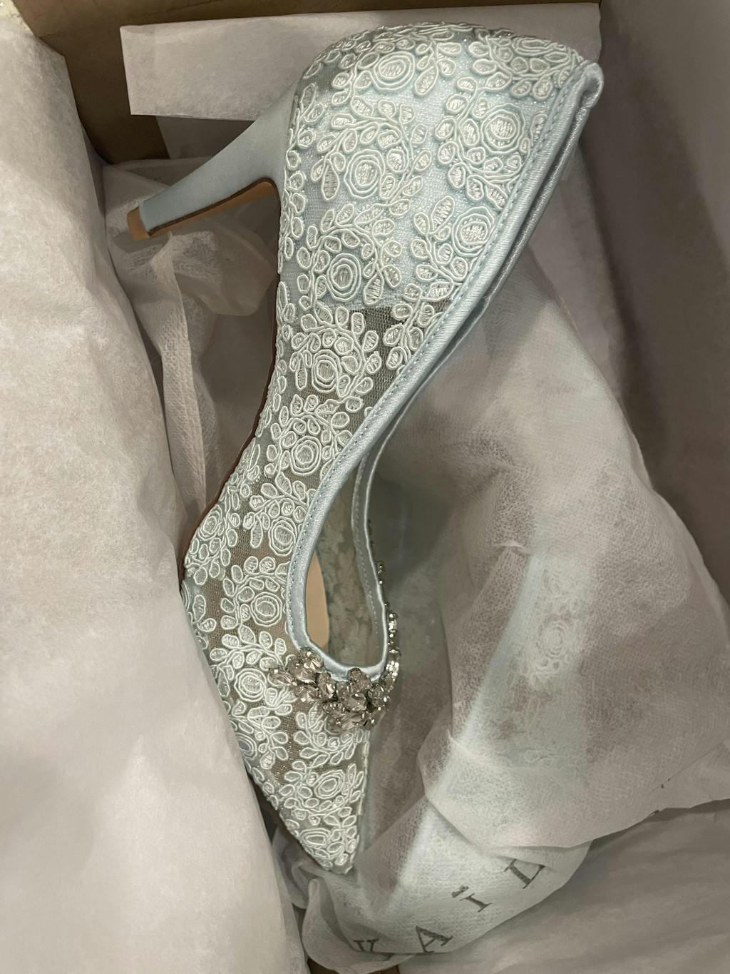 The lace is beautiful and there is good detailing, but there’s no way I could walk down any aisle in them. The lace feels rough and stiff from the inside, like it’s been spray glued.