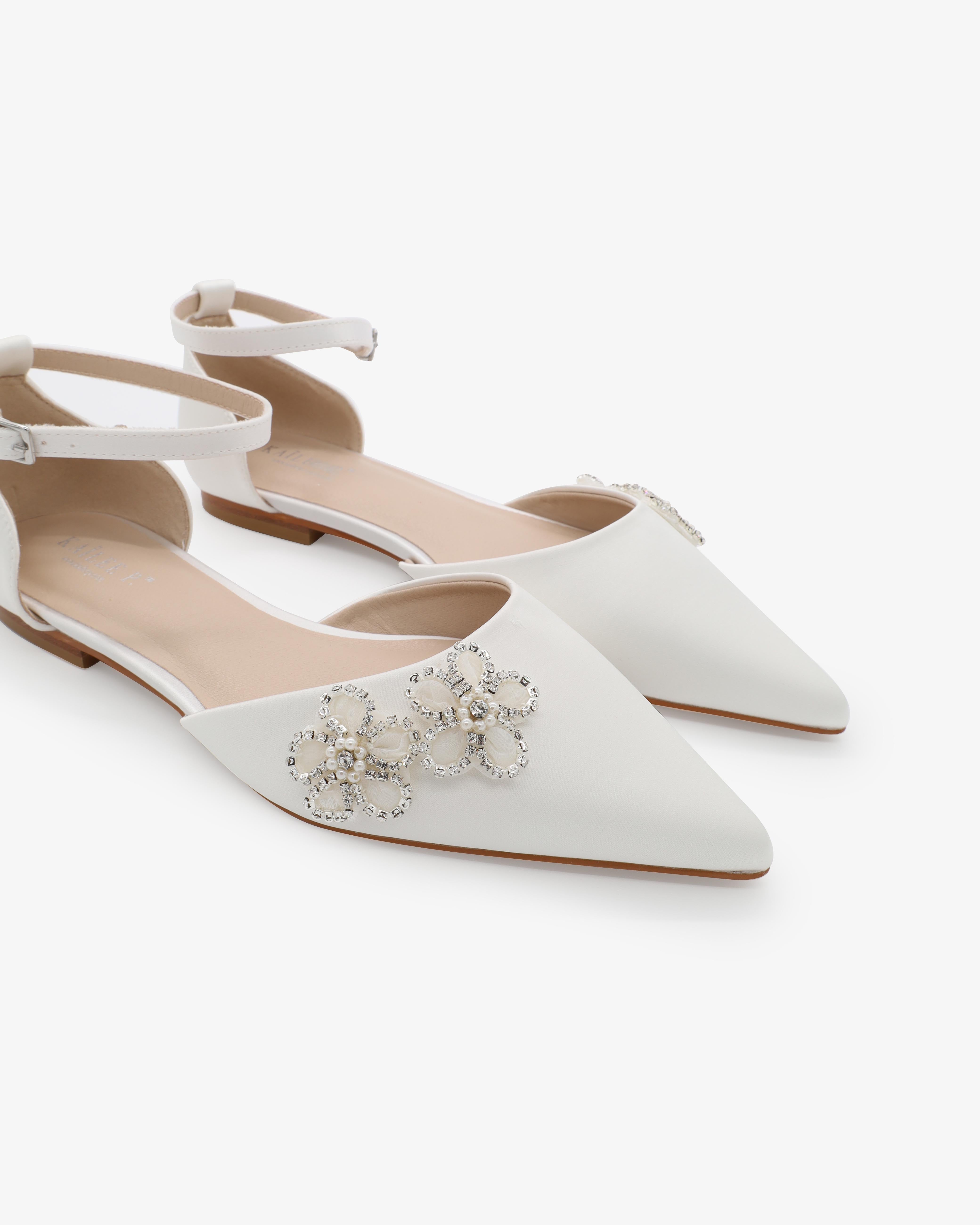 Satin Pointy Toe Wedding Flats with Rhinestones Chassia Flower