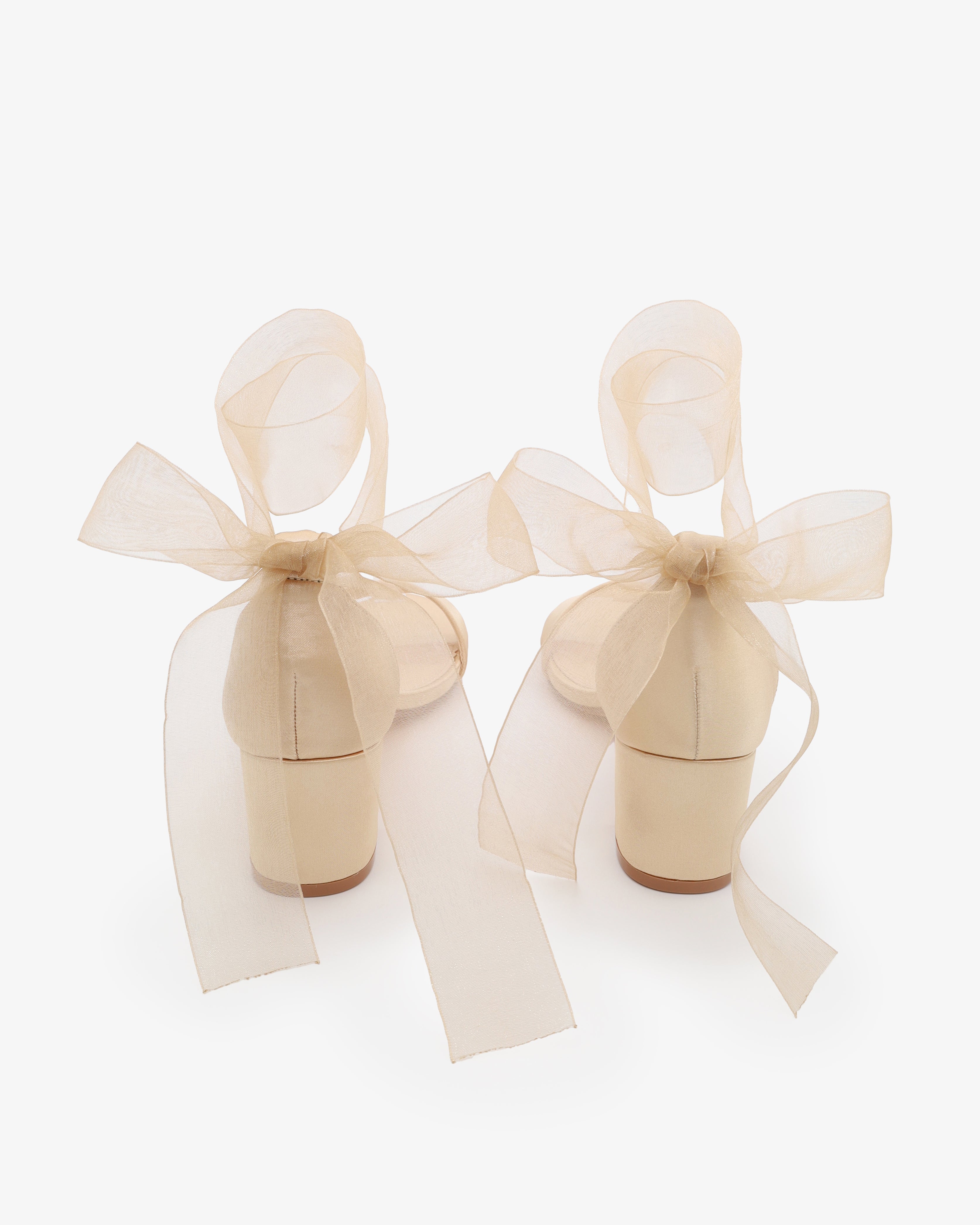 Classy satin block heel with satin ribbon ankle tie. Simple yet elegant are great combination and will definitely be a favorite. Perfect for bridesmaids, flower girls, maid of honor, prom night, holiday party, and any special occasions.