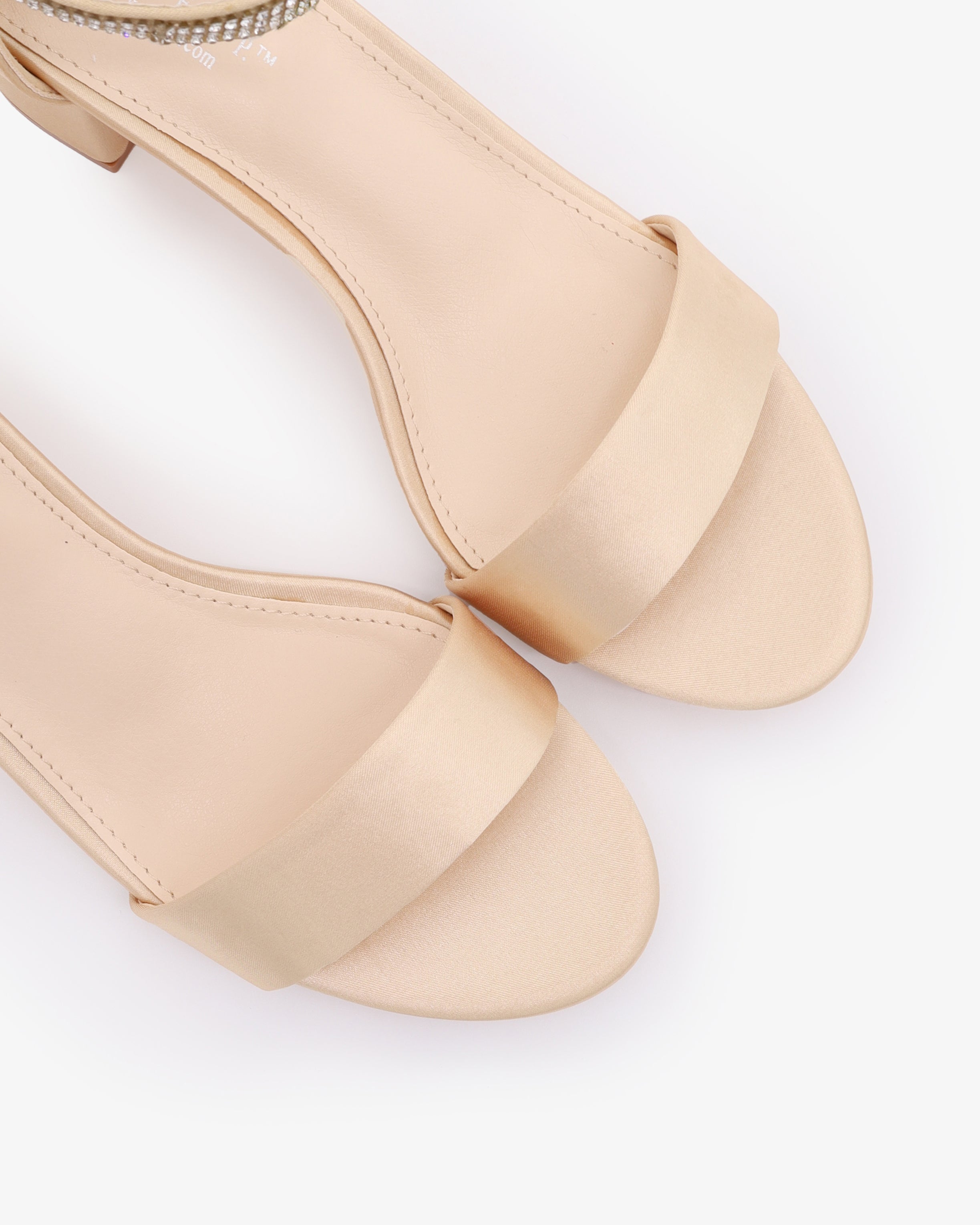Classy satin block heel with rows of rhinestones on ankle strap. Sparkly and glamour is great combination and will definitely be a favorite. Perfect for brides, bridesmaids, flower girls, maid of honor, prom night, holiday party, and any special occasions.