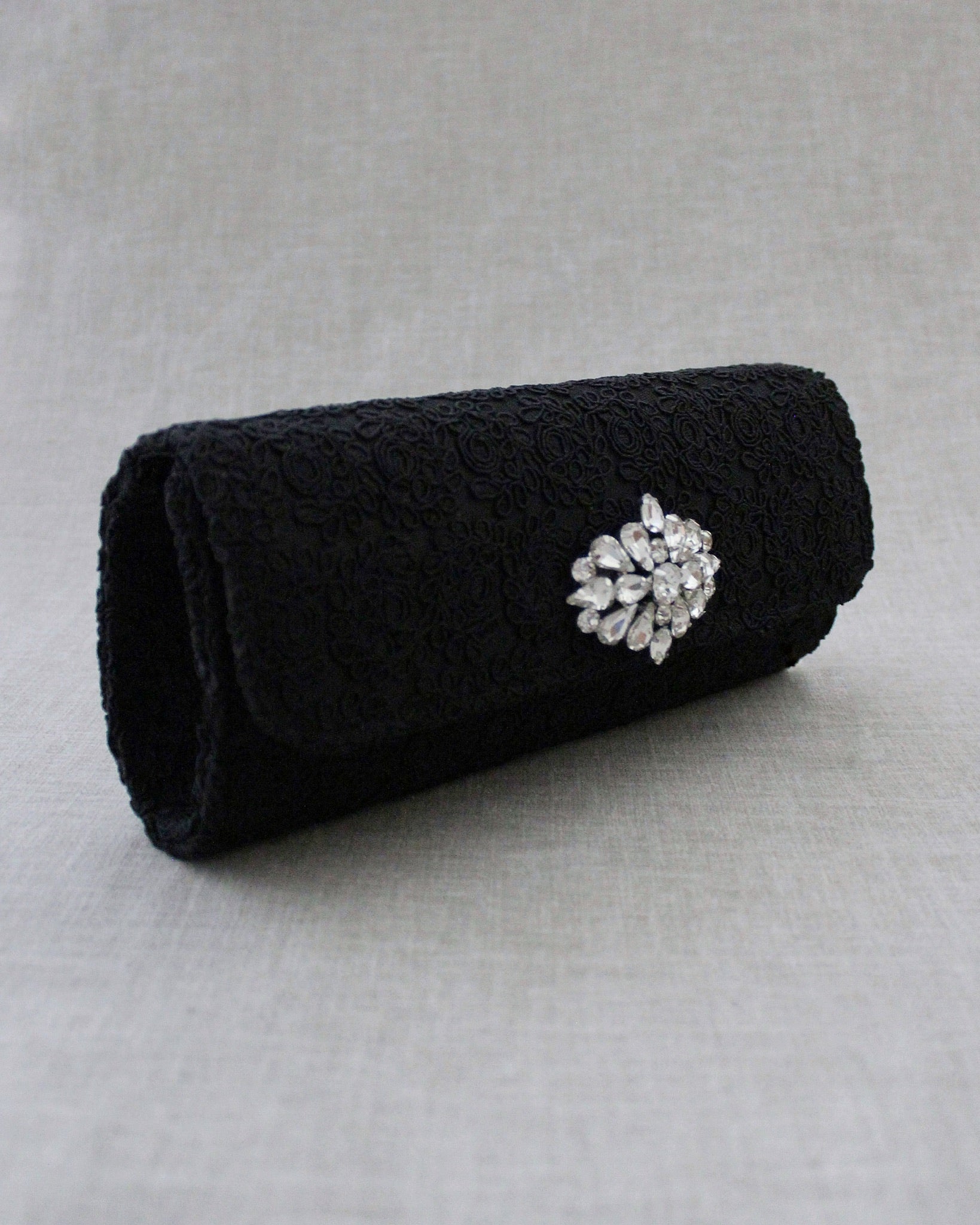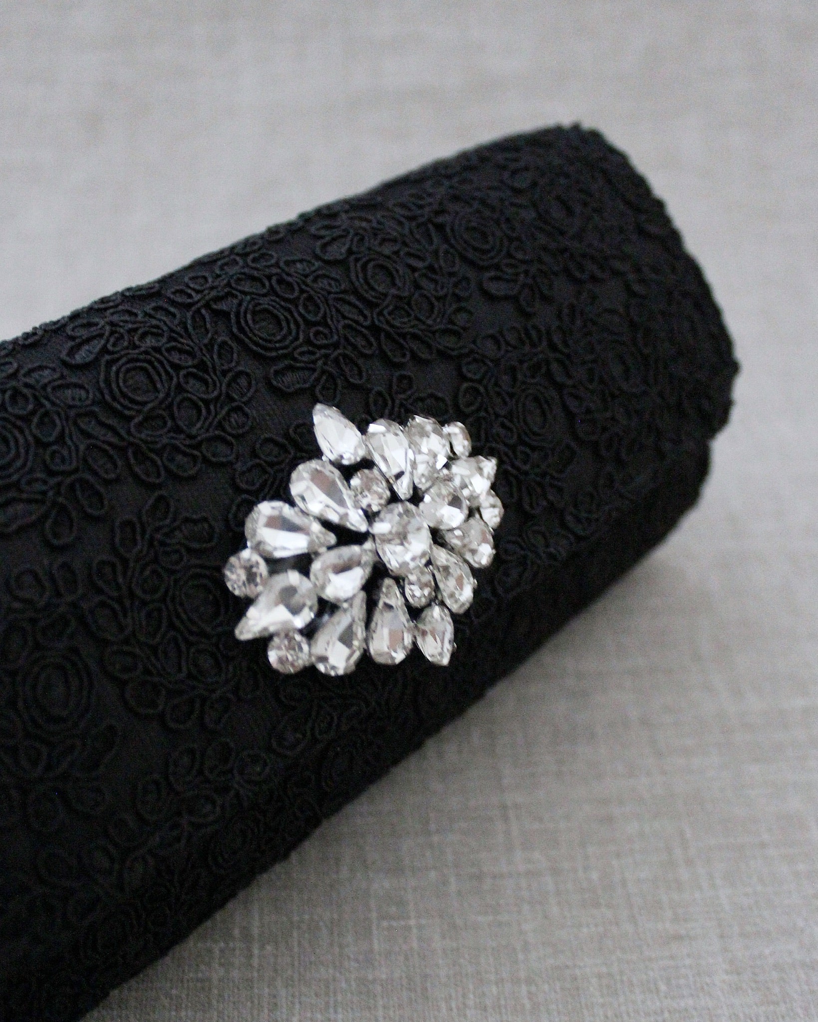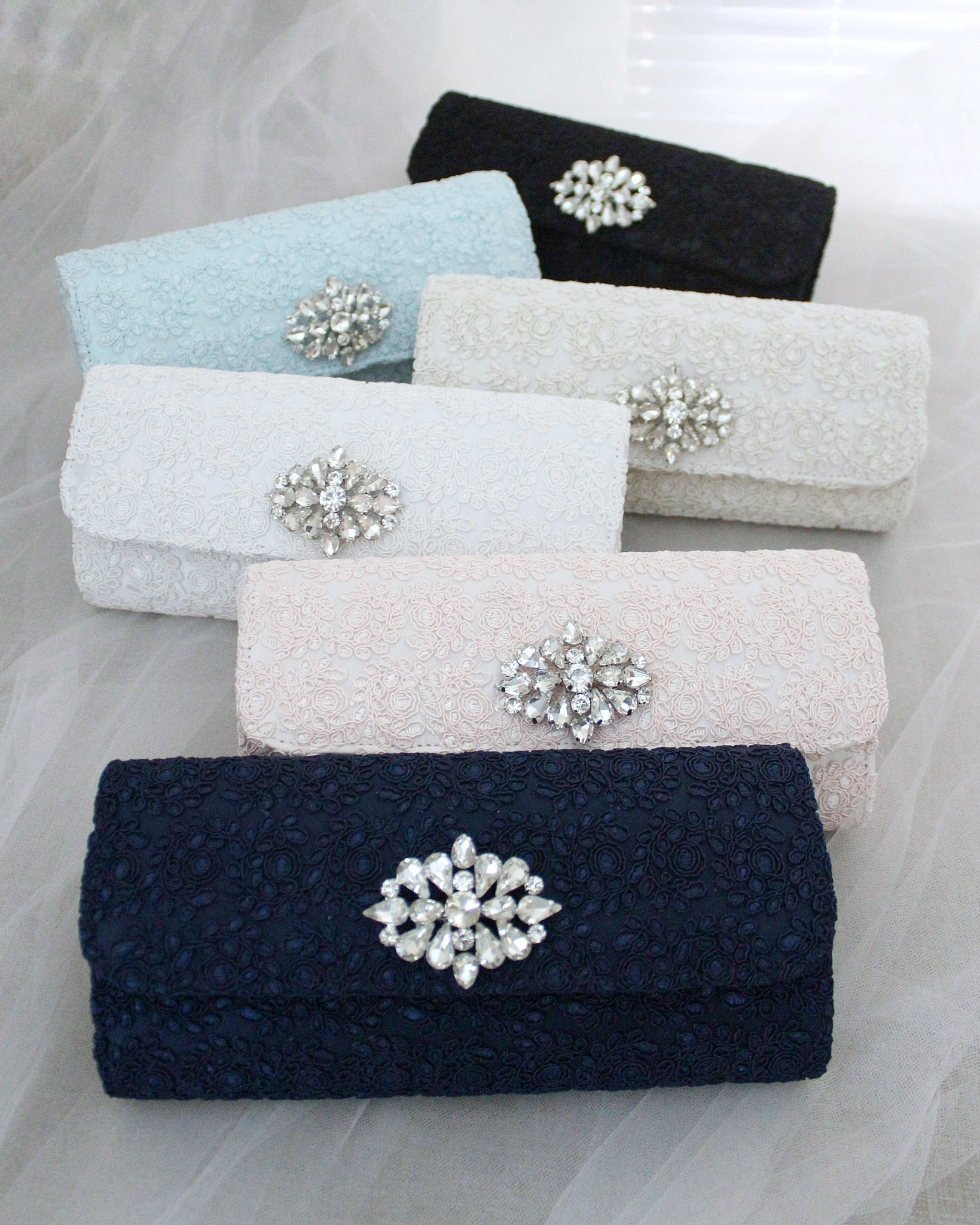 With added sparkly brooch, this crochet lace envelop clutch will definitely elevate your look. A beautiful complement to your evening dress, casual dress, and a perfect ensemble for date-night, holiday party, wedding party, or any special occasions. The navy color can be added as your "something blue".