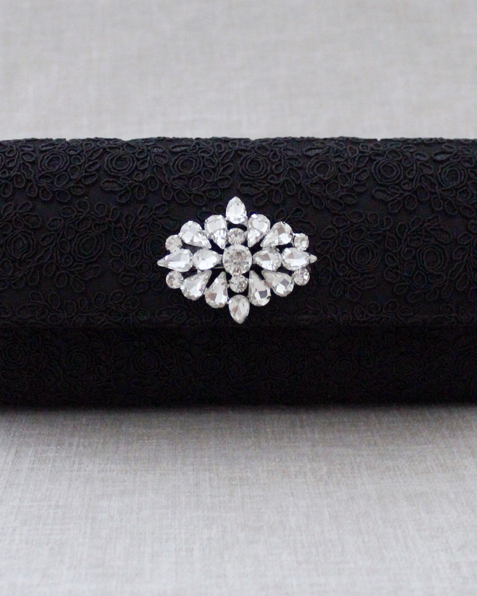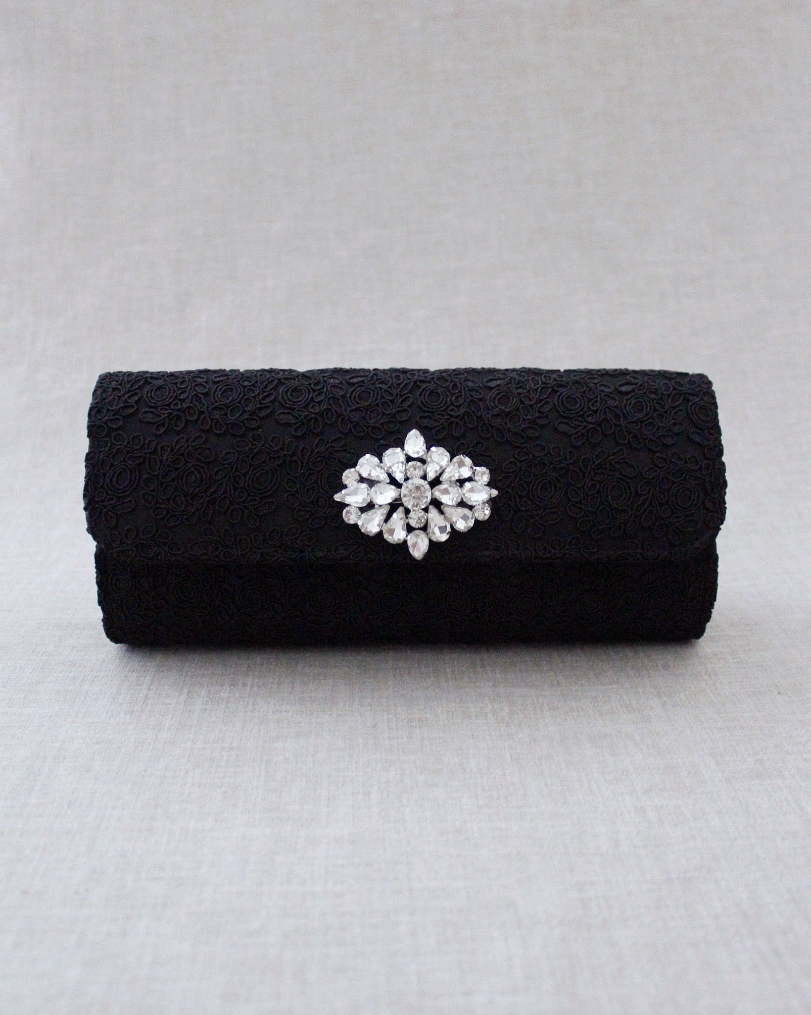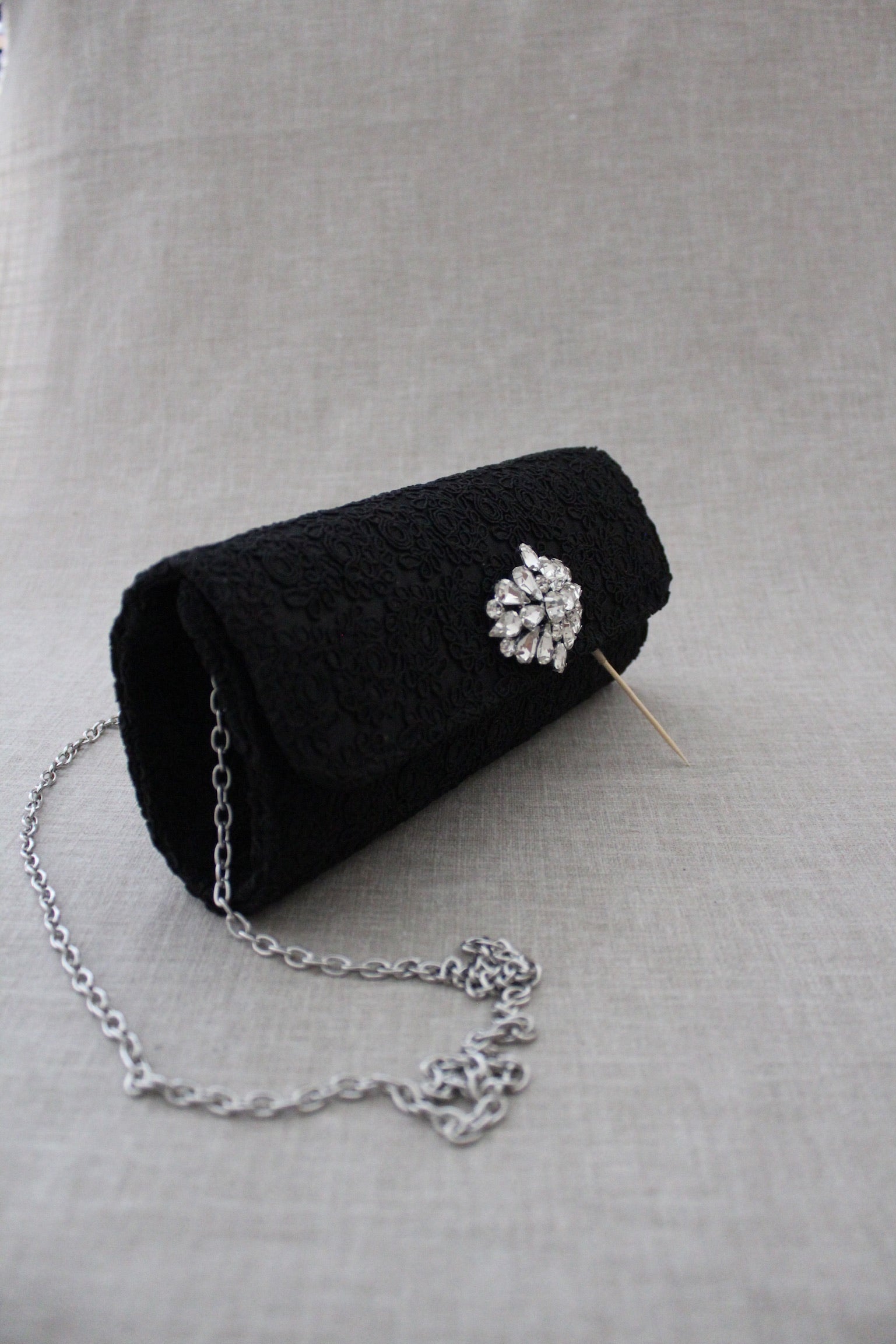 With added sparkly brooch, this crochet lace envelop clutch will definitely elevate your look. A beautiful complement to your evening dress, casual dress, and a perfect ensemble for date-night, holiday party, wedding party, or any special occasions. The navy color can be added as your "something blue".