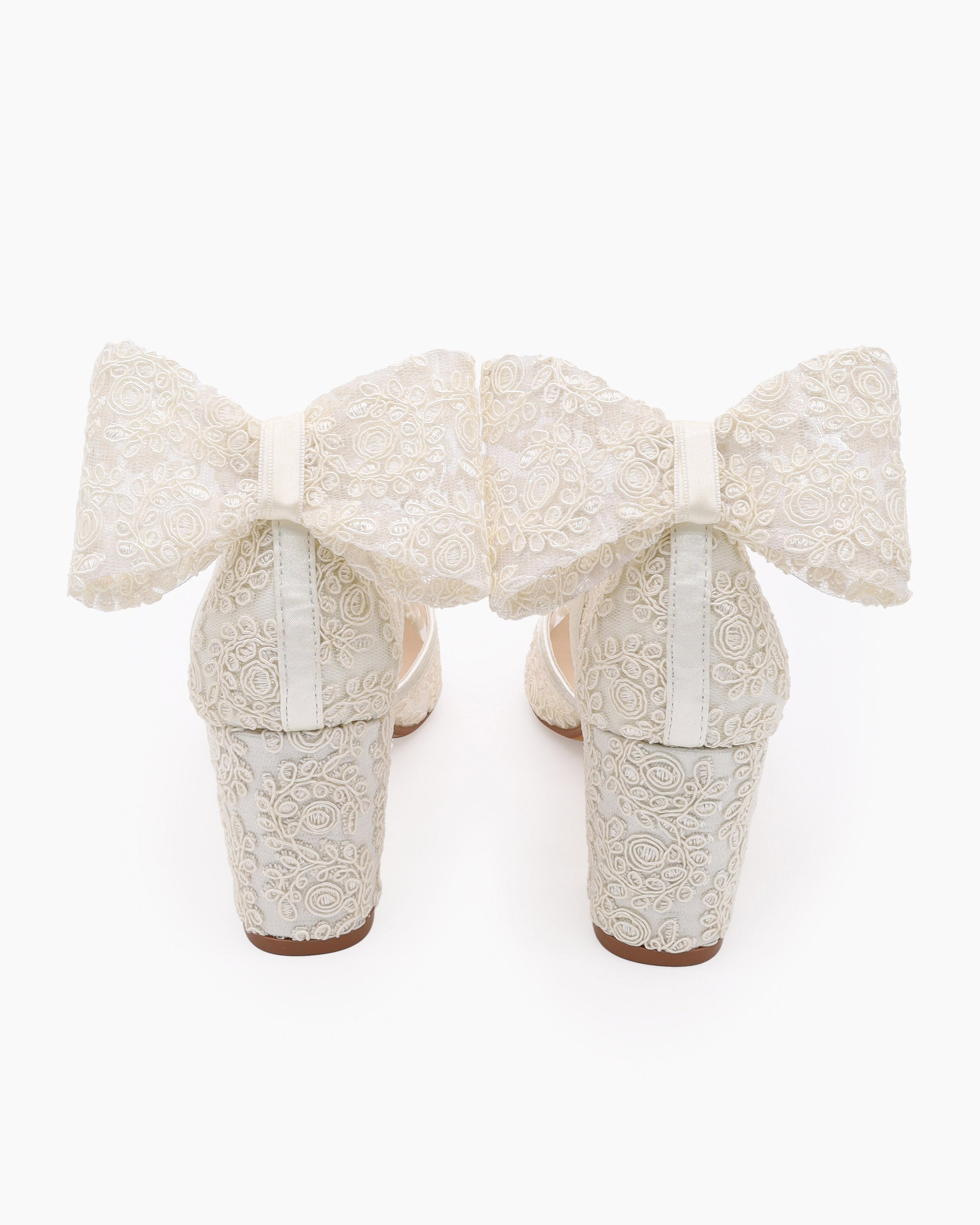 Lace Block Heel For Weddings with Back Crochet Bow