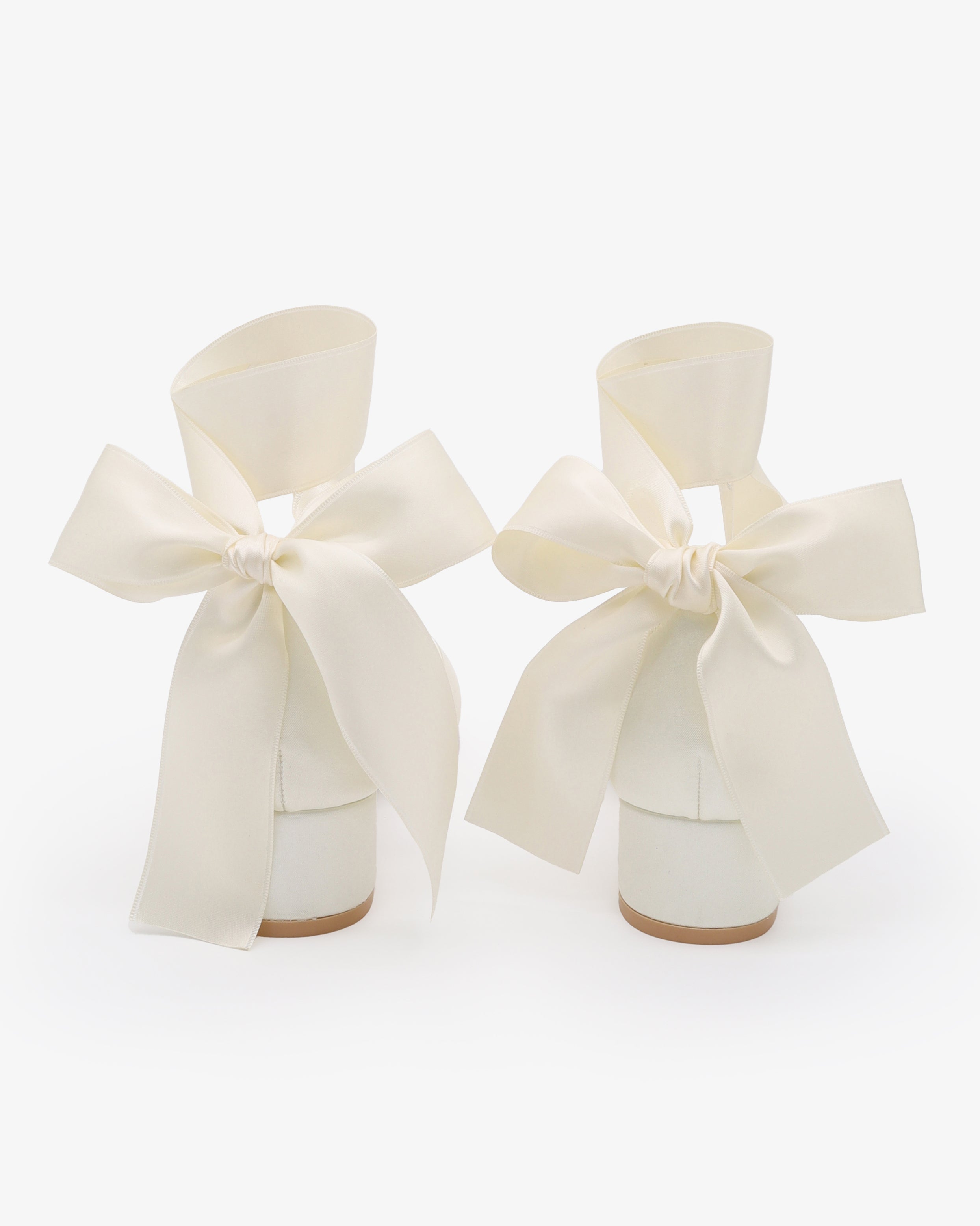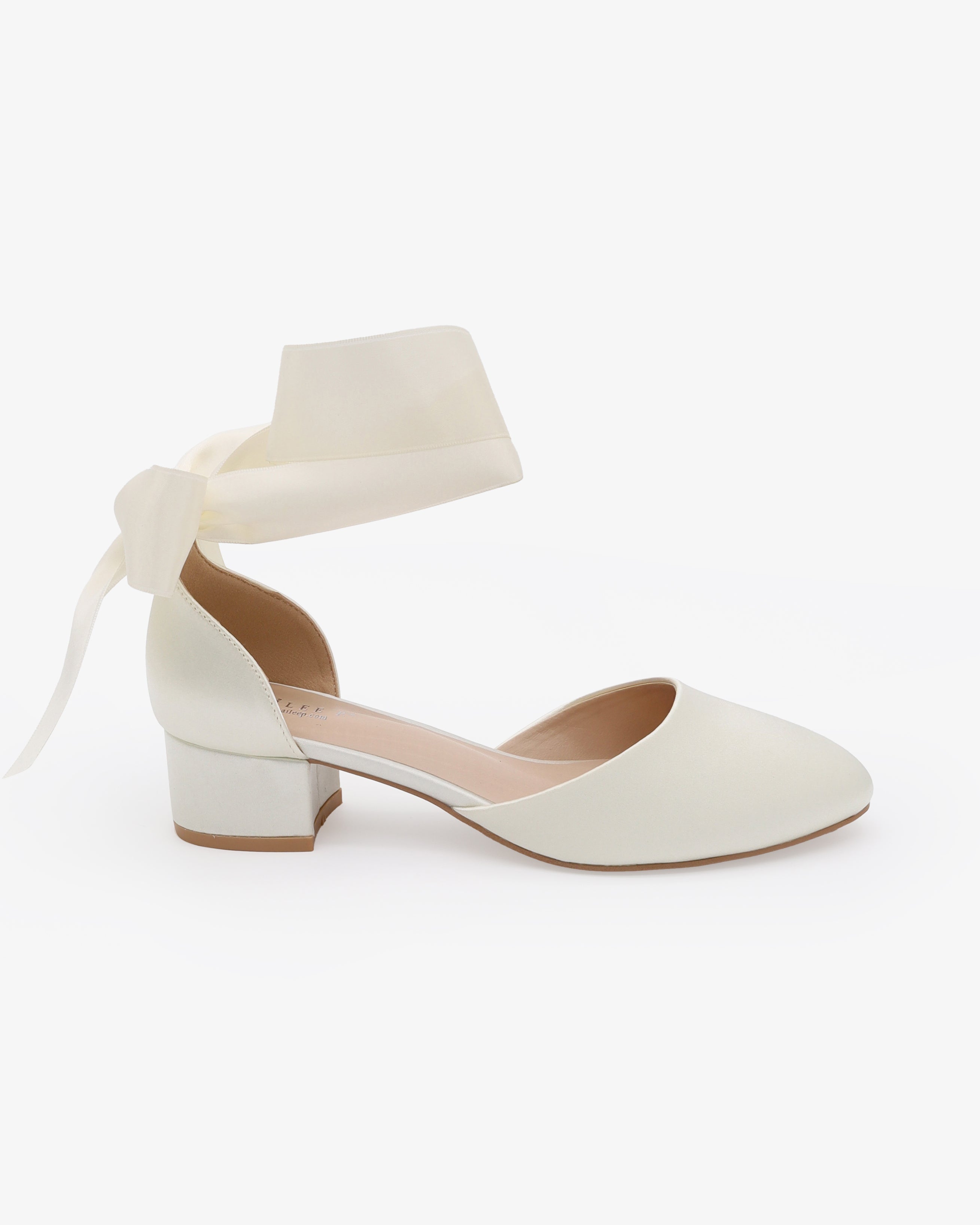 Round Toe Satin Low Block Heel with Wrapped Ribbon Tie