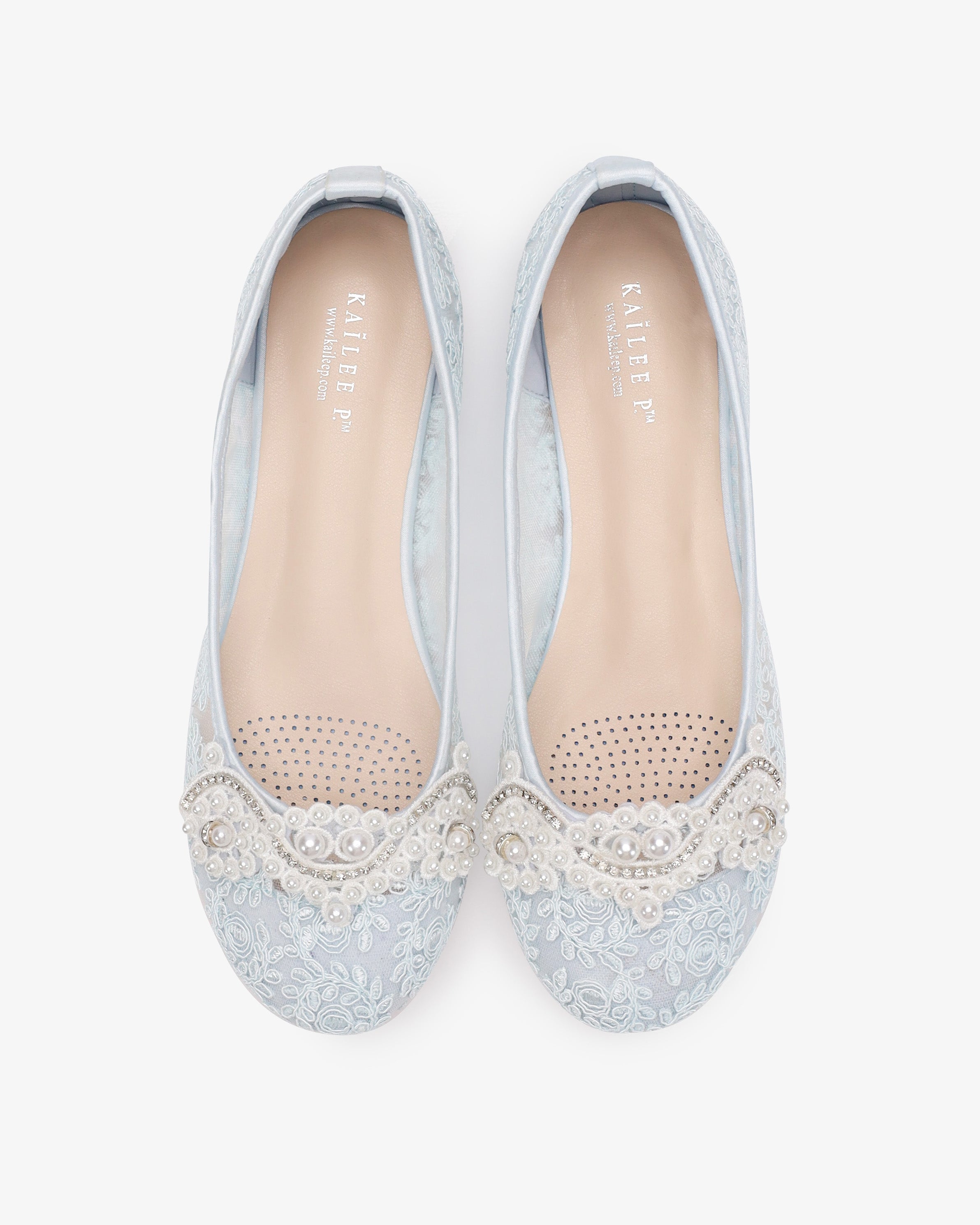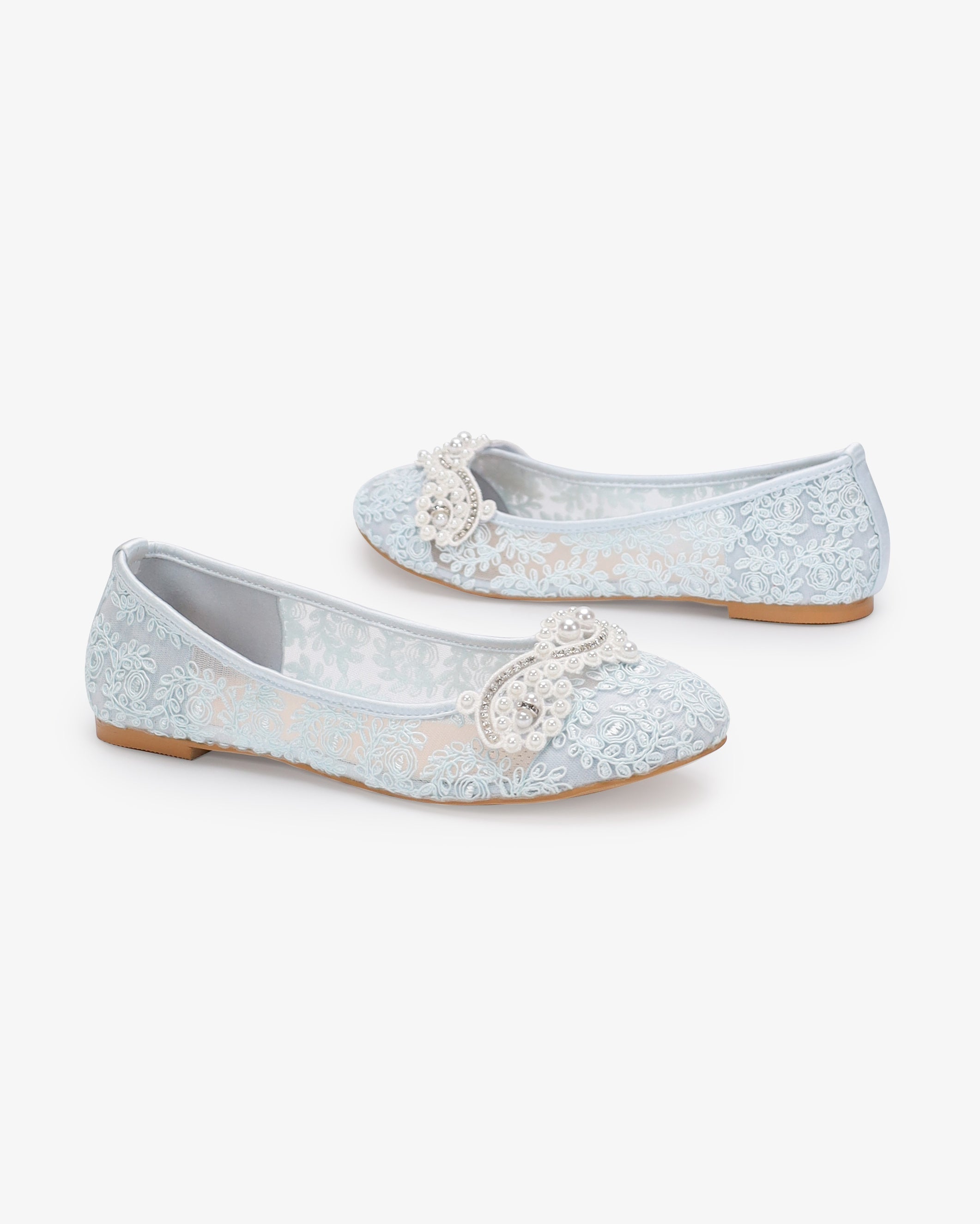 A graceful and timeless bridal flats with elegant crochet lace and accented with a classic touch of pearl applique.
