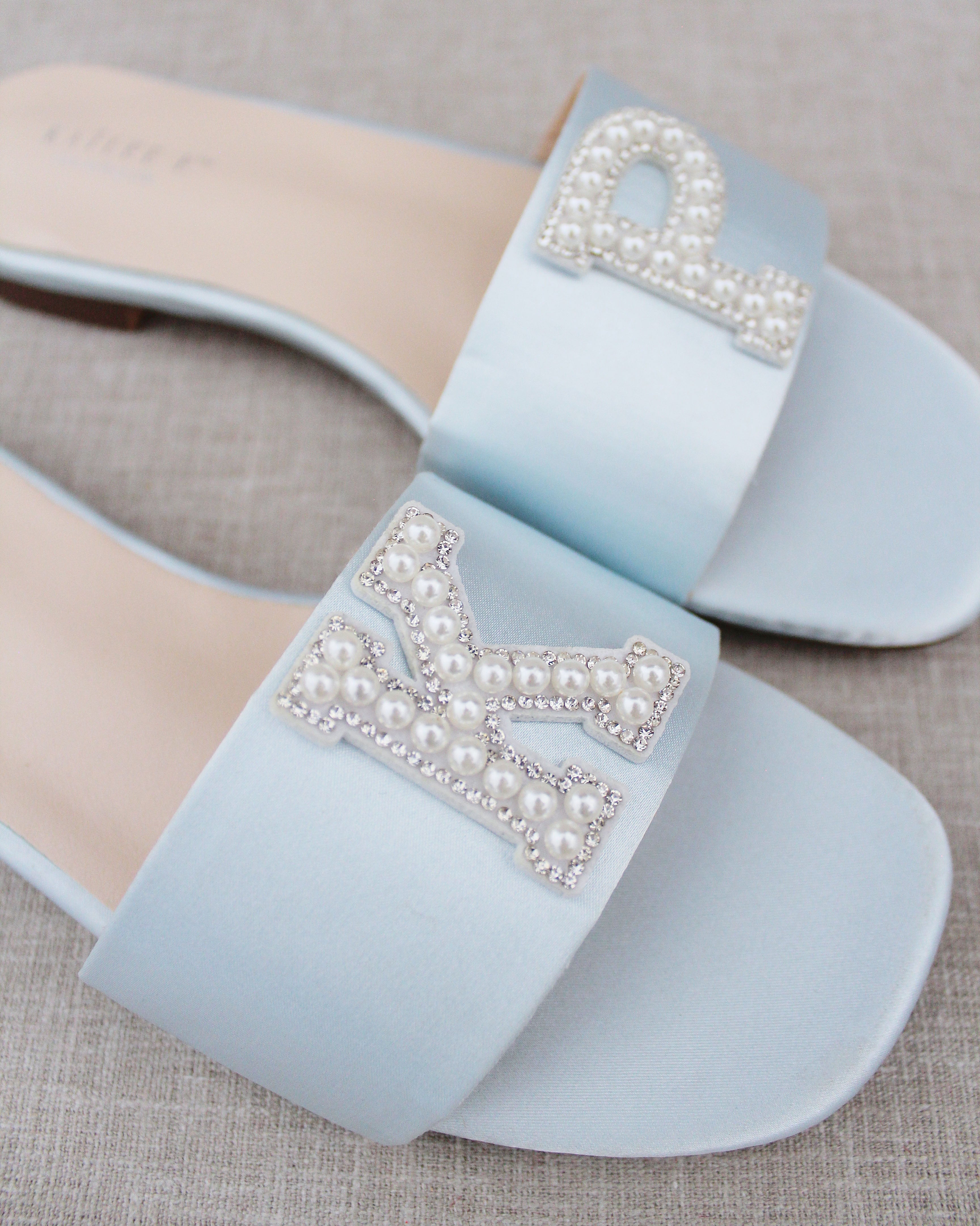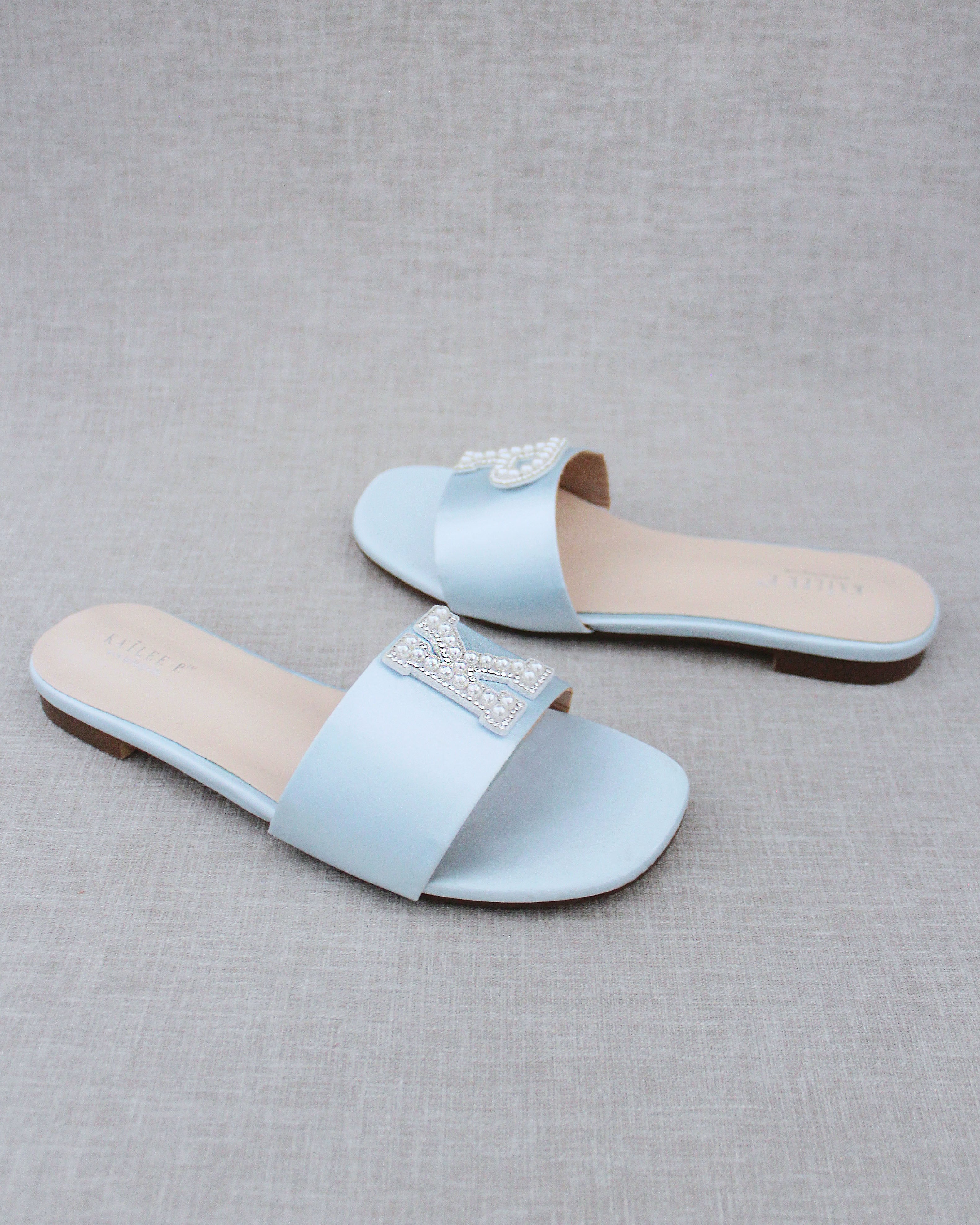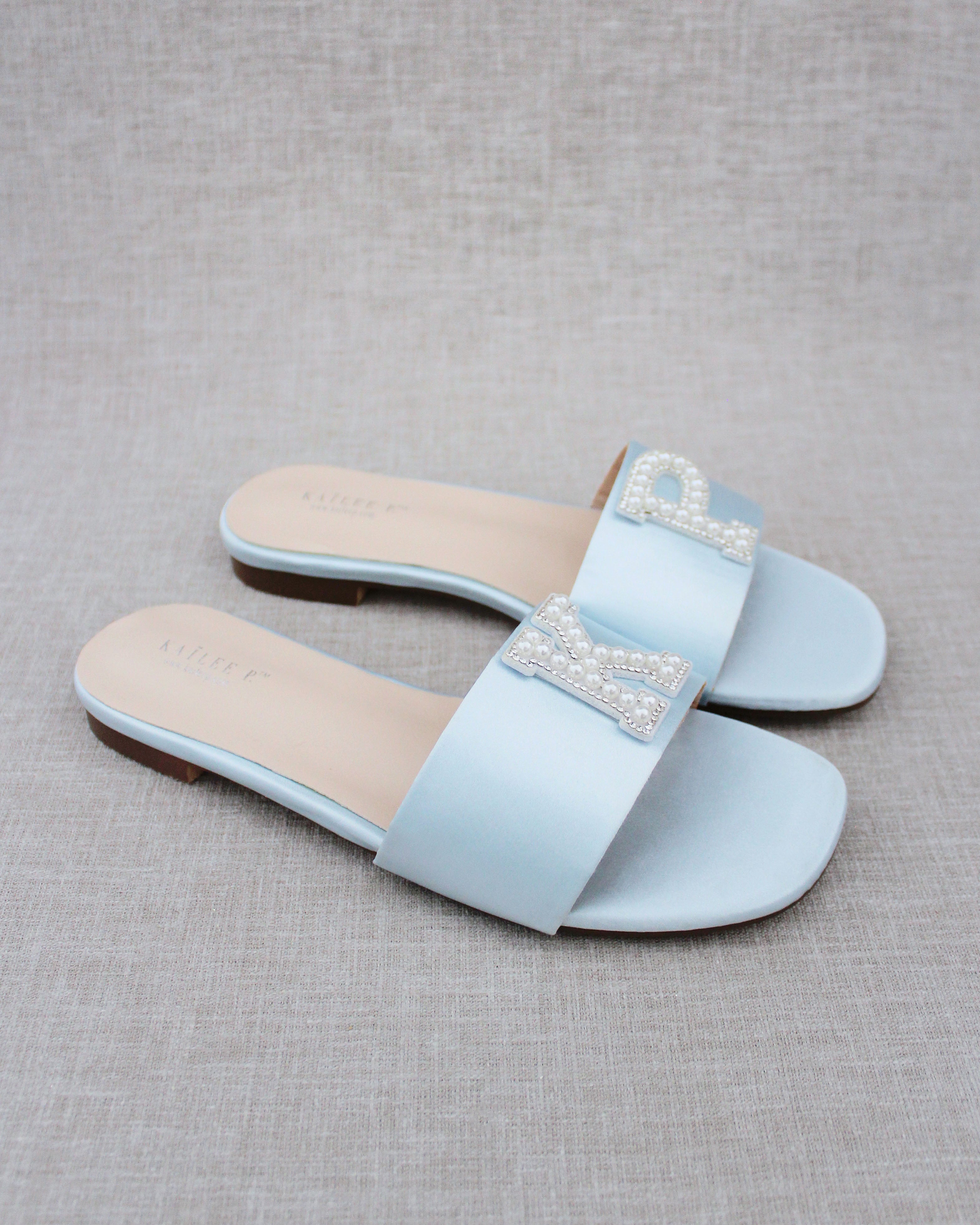 Personalized Satin Slip On Flat Wedding Sandals