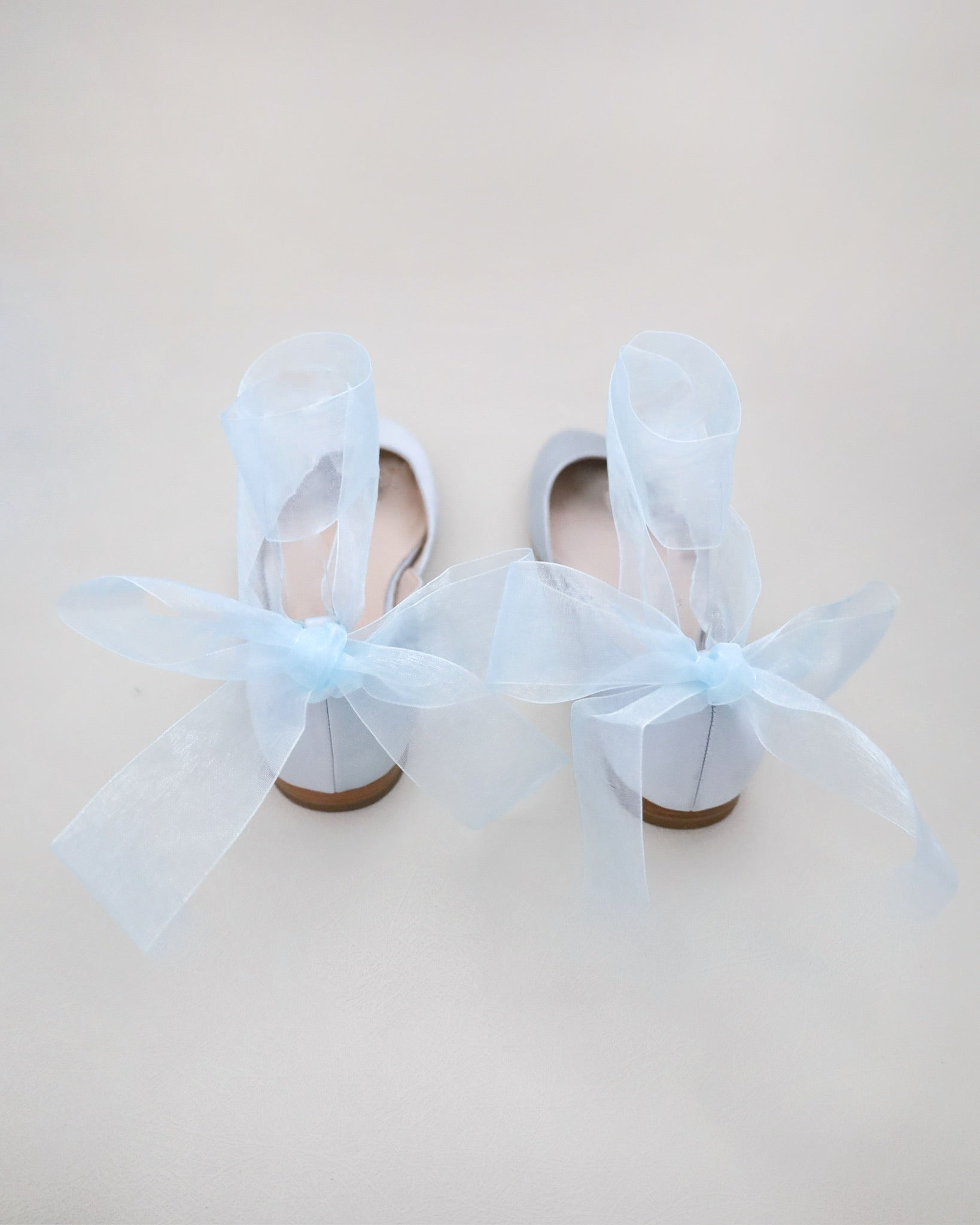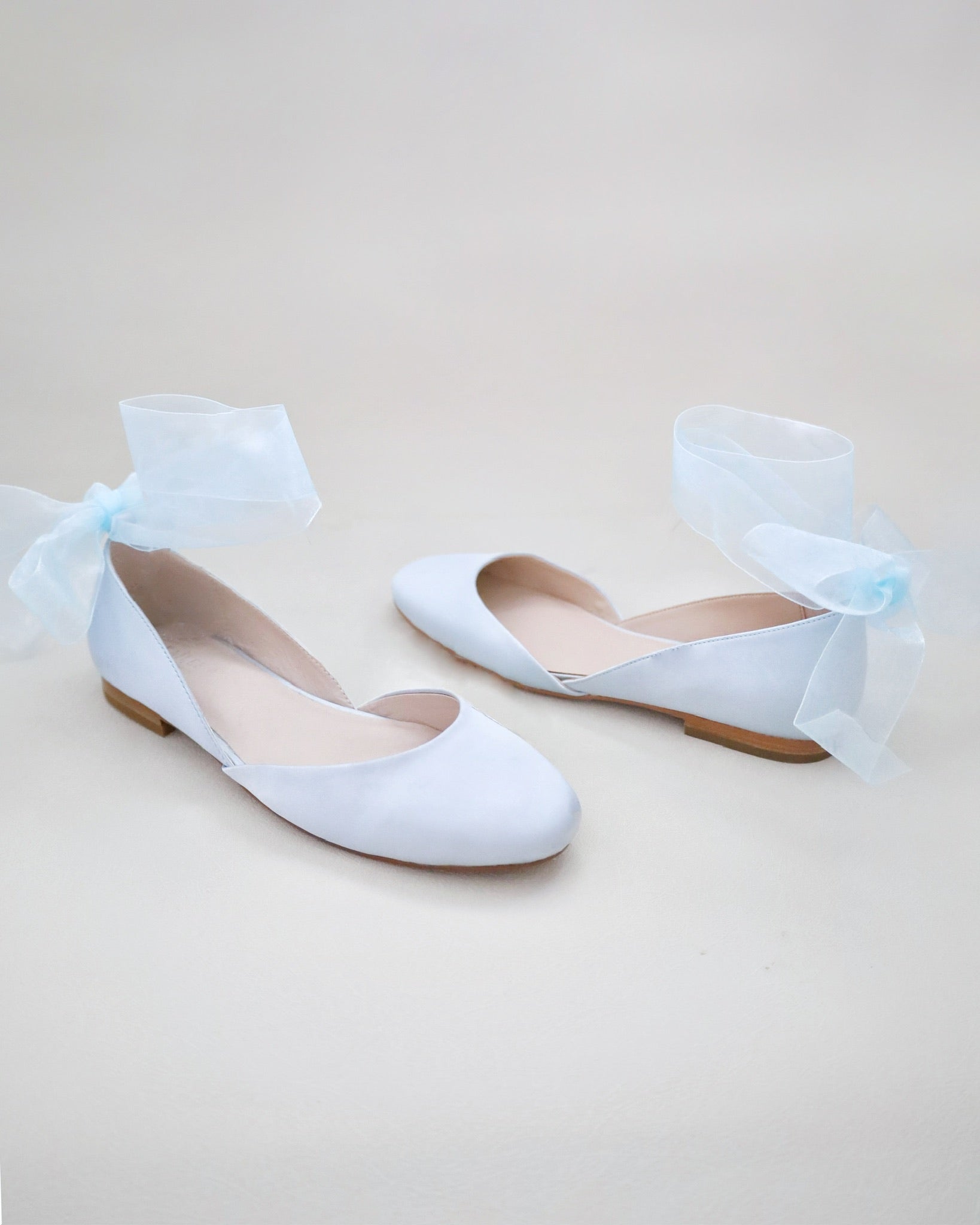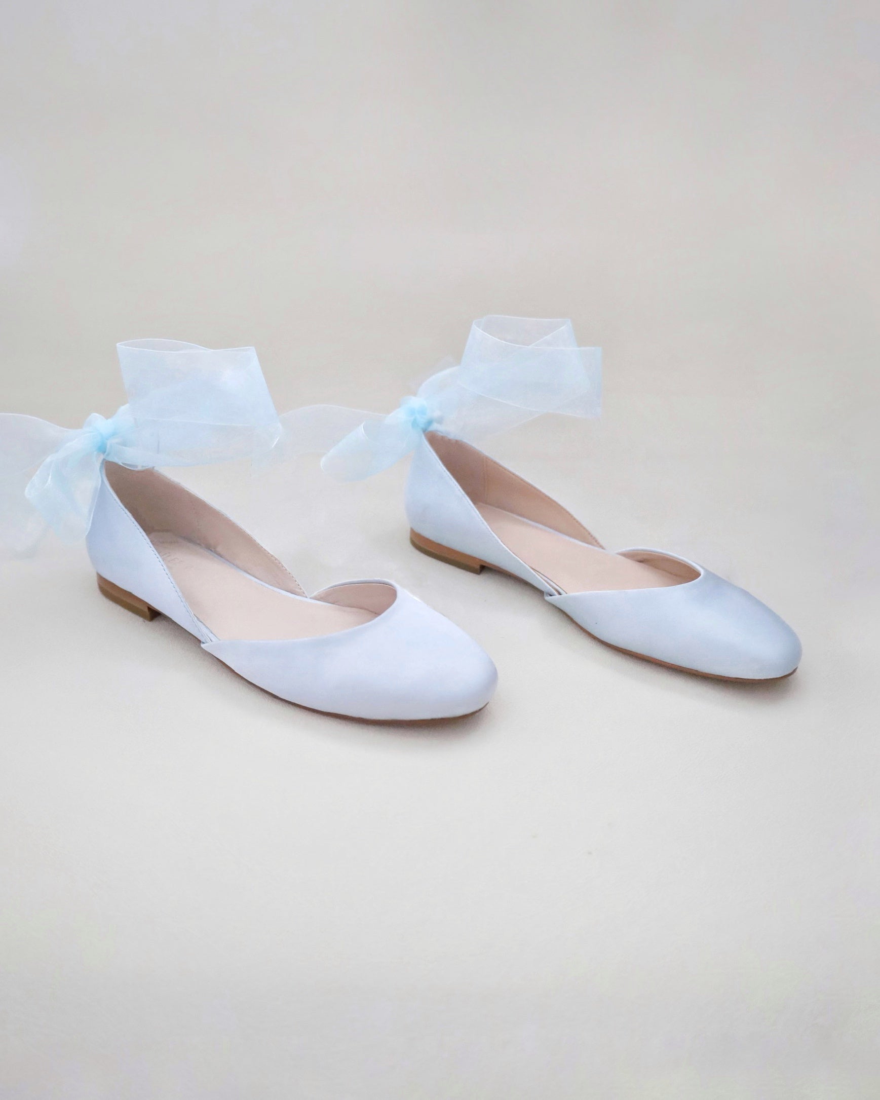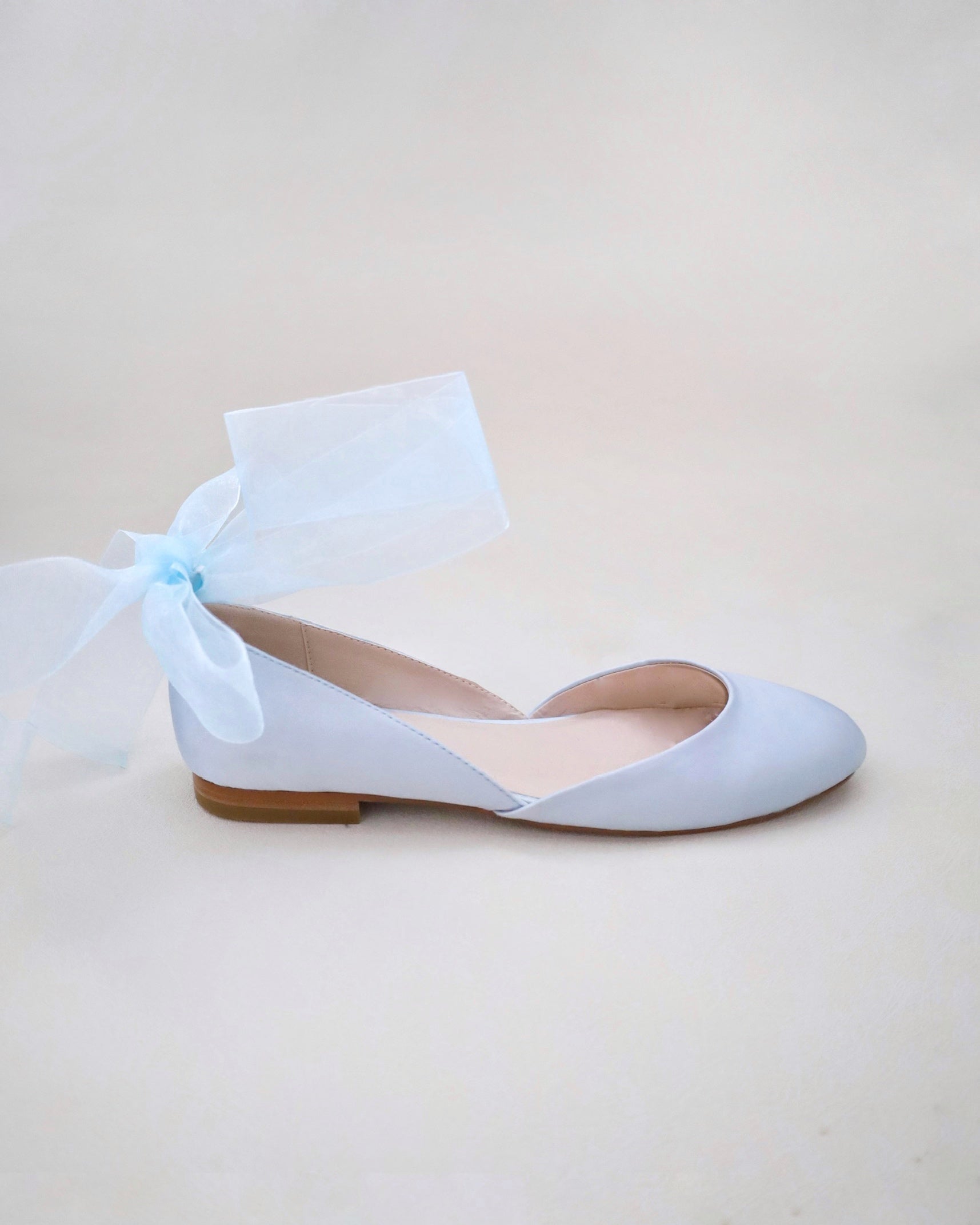 Satin Round Toe Bridal Flat with Wrapped Ribbon Tie