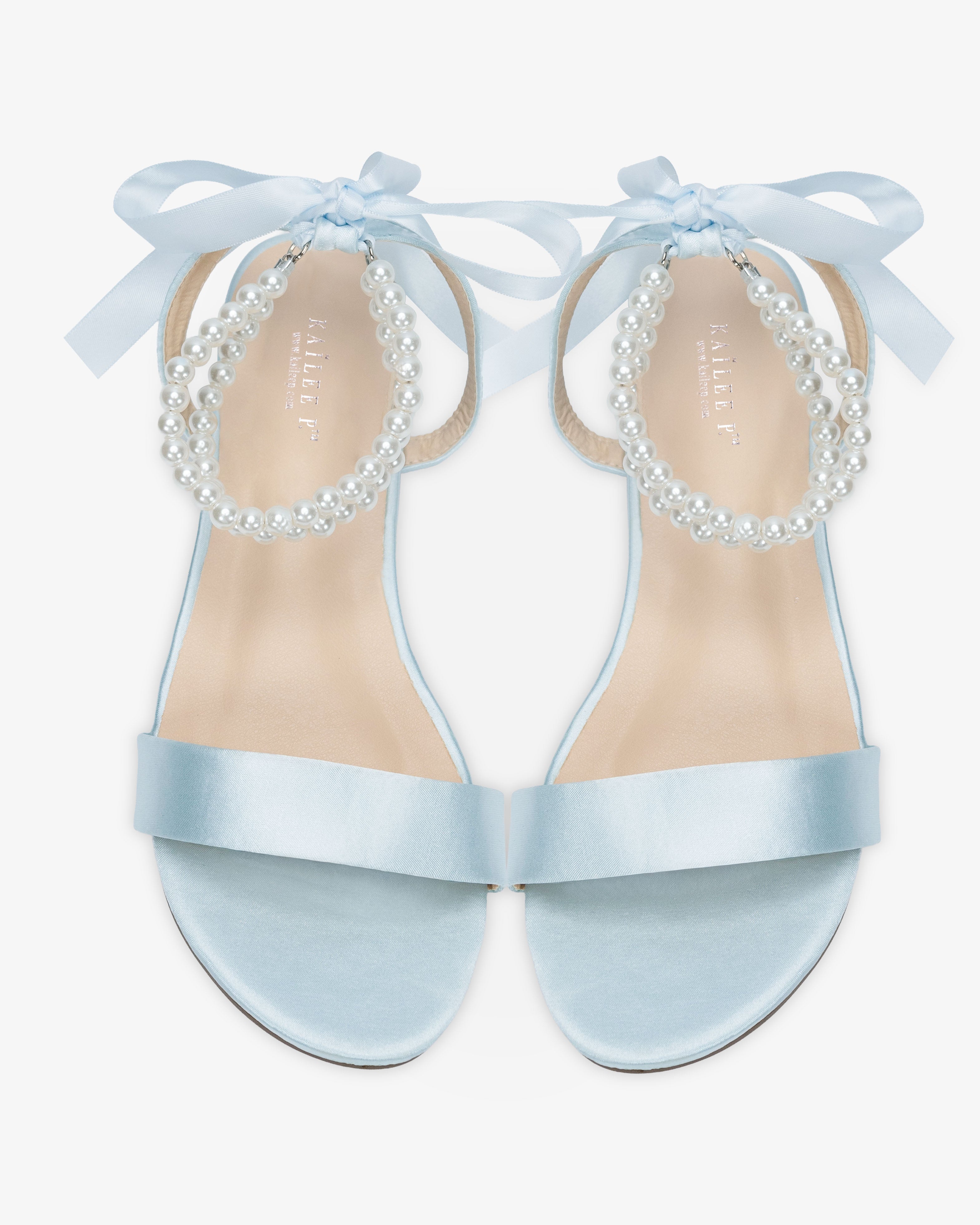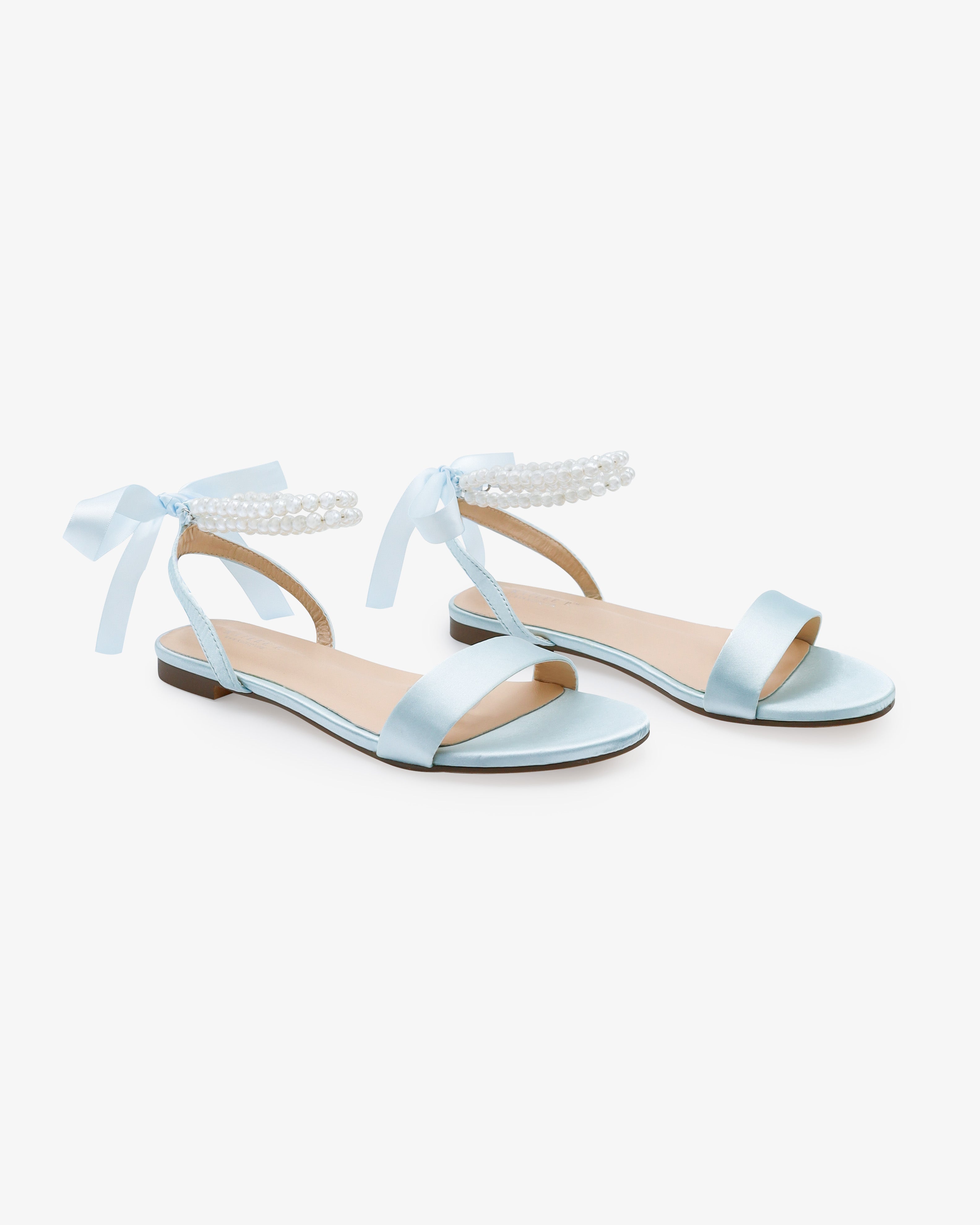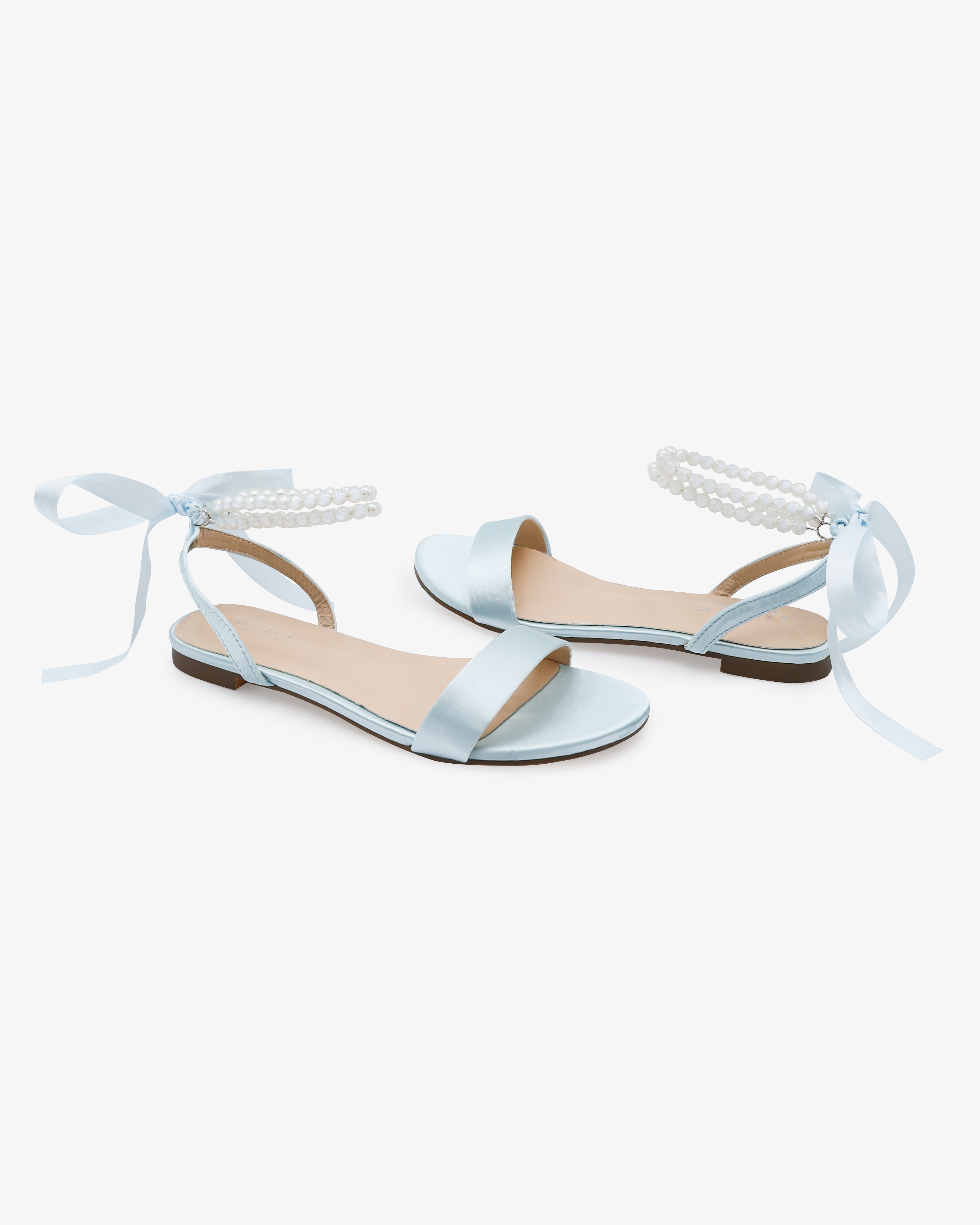 Satin Wedding Flat Sandal with Double Pearls Strap