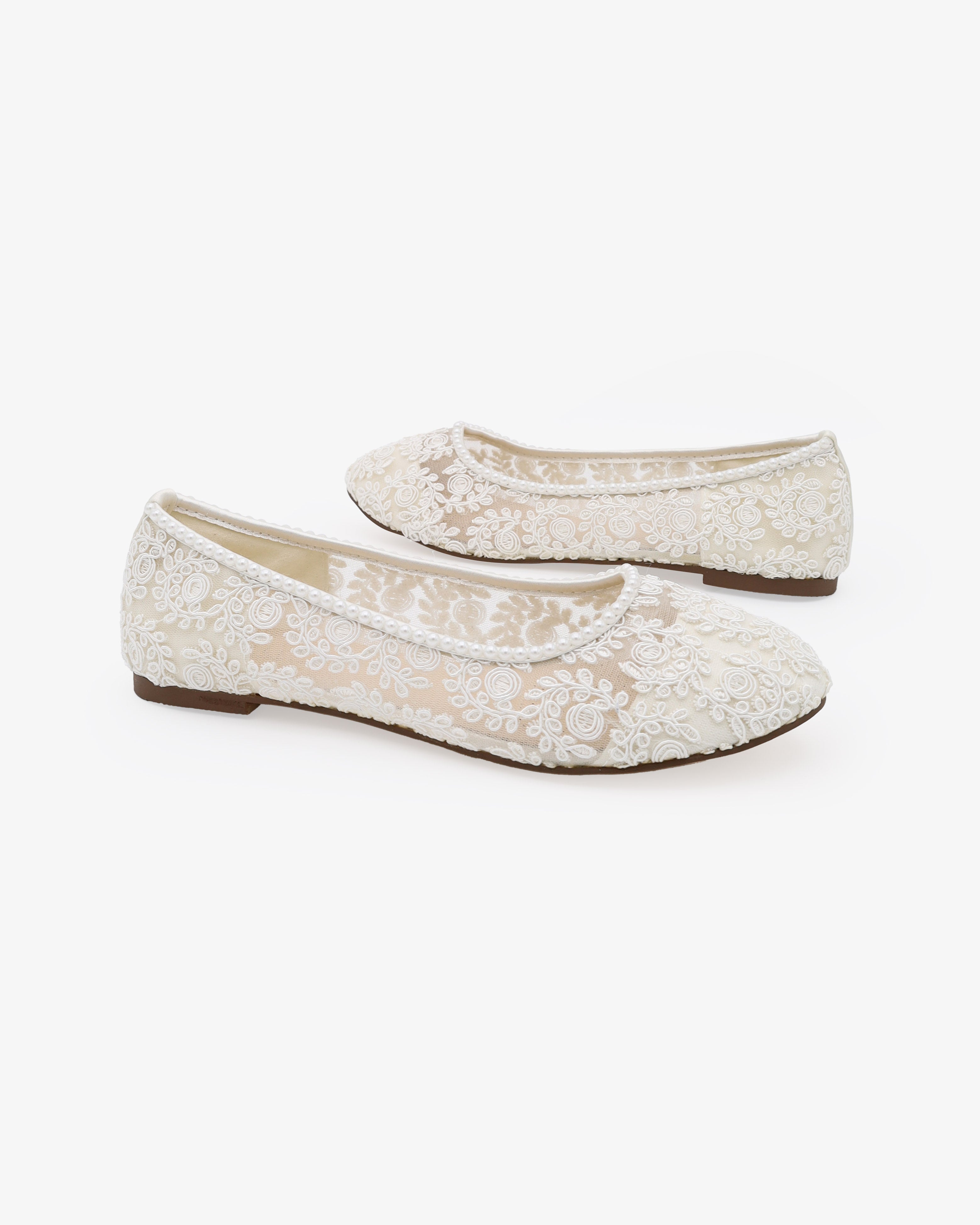Crochet Lace Round Toe Flats with Mini Pearls
