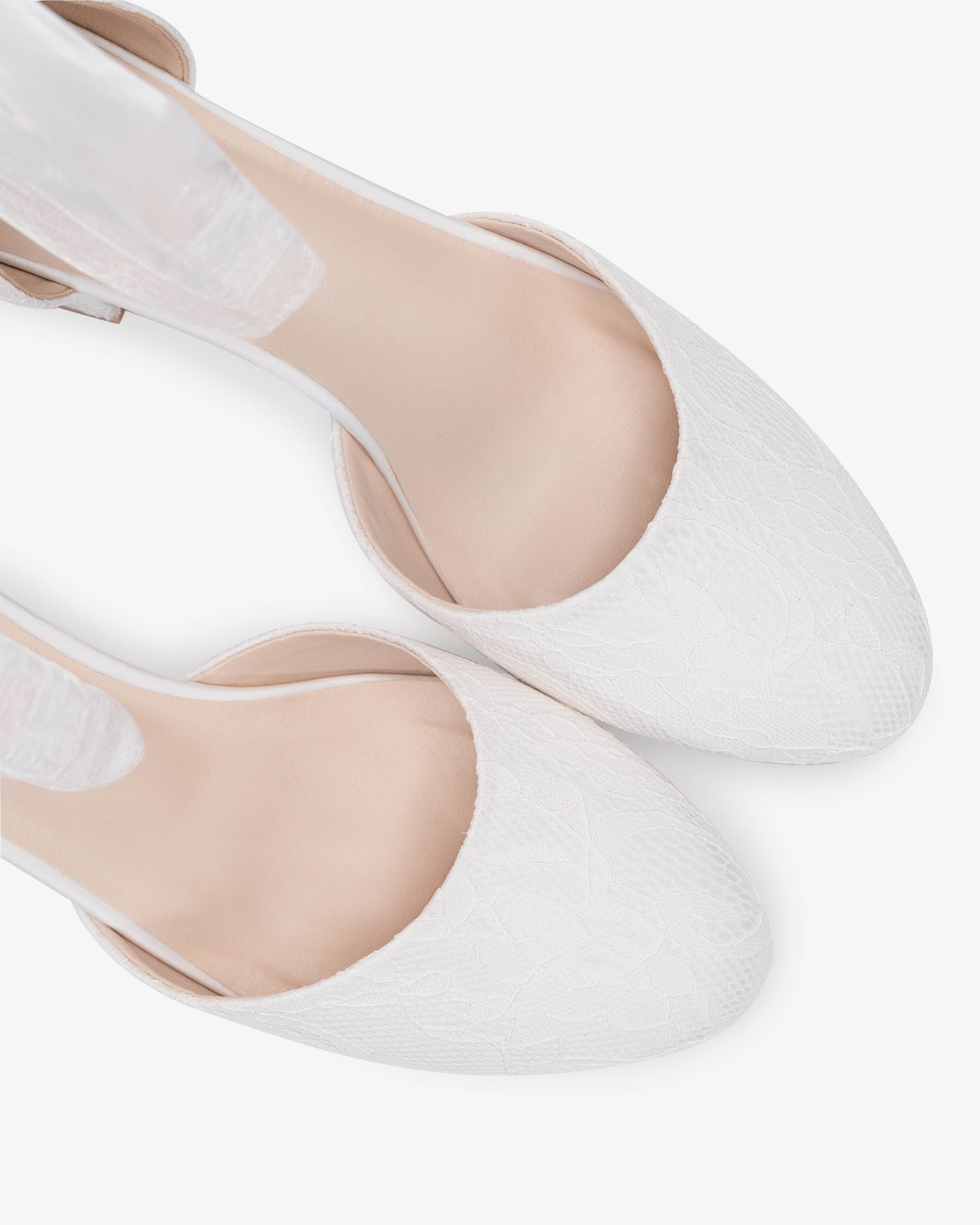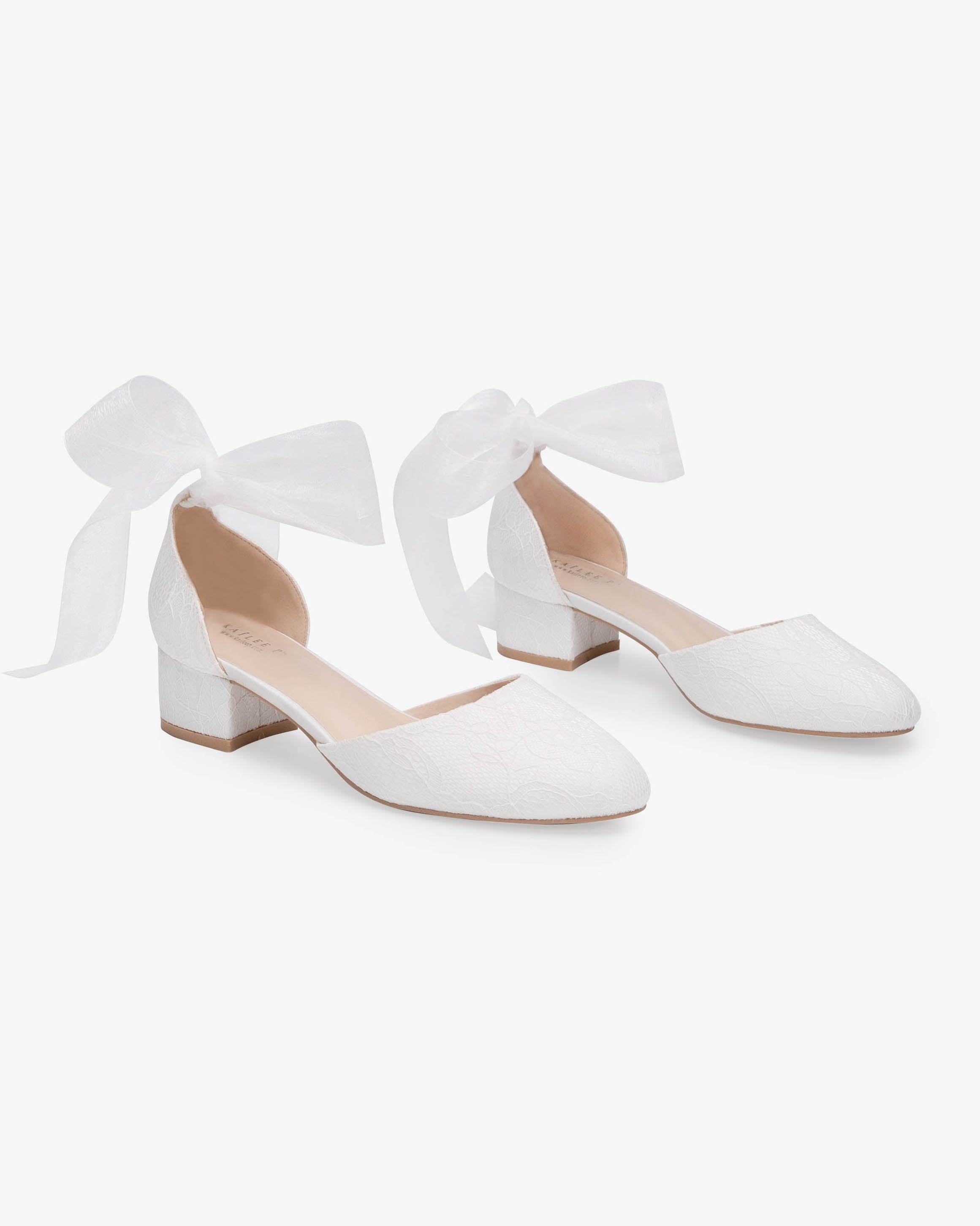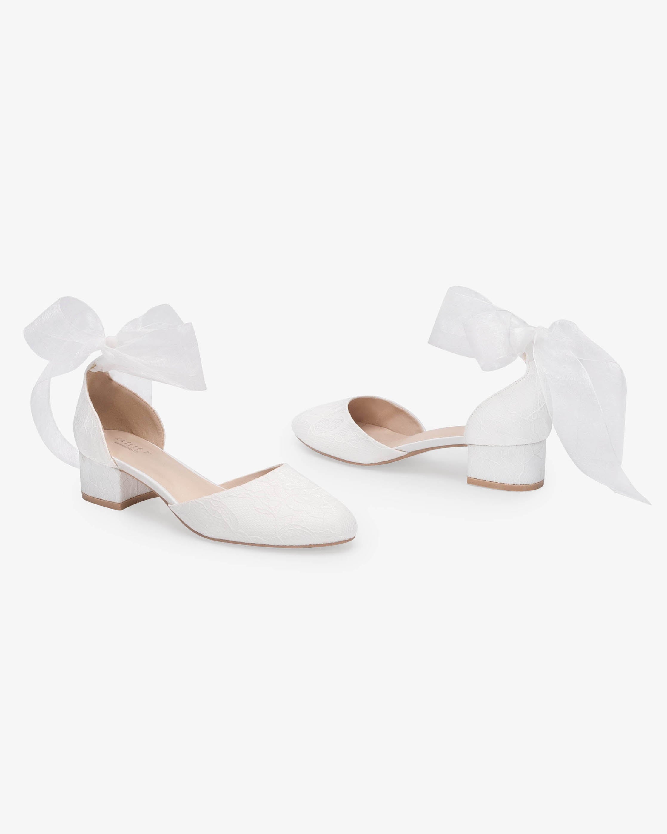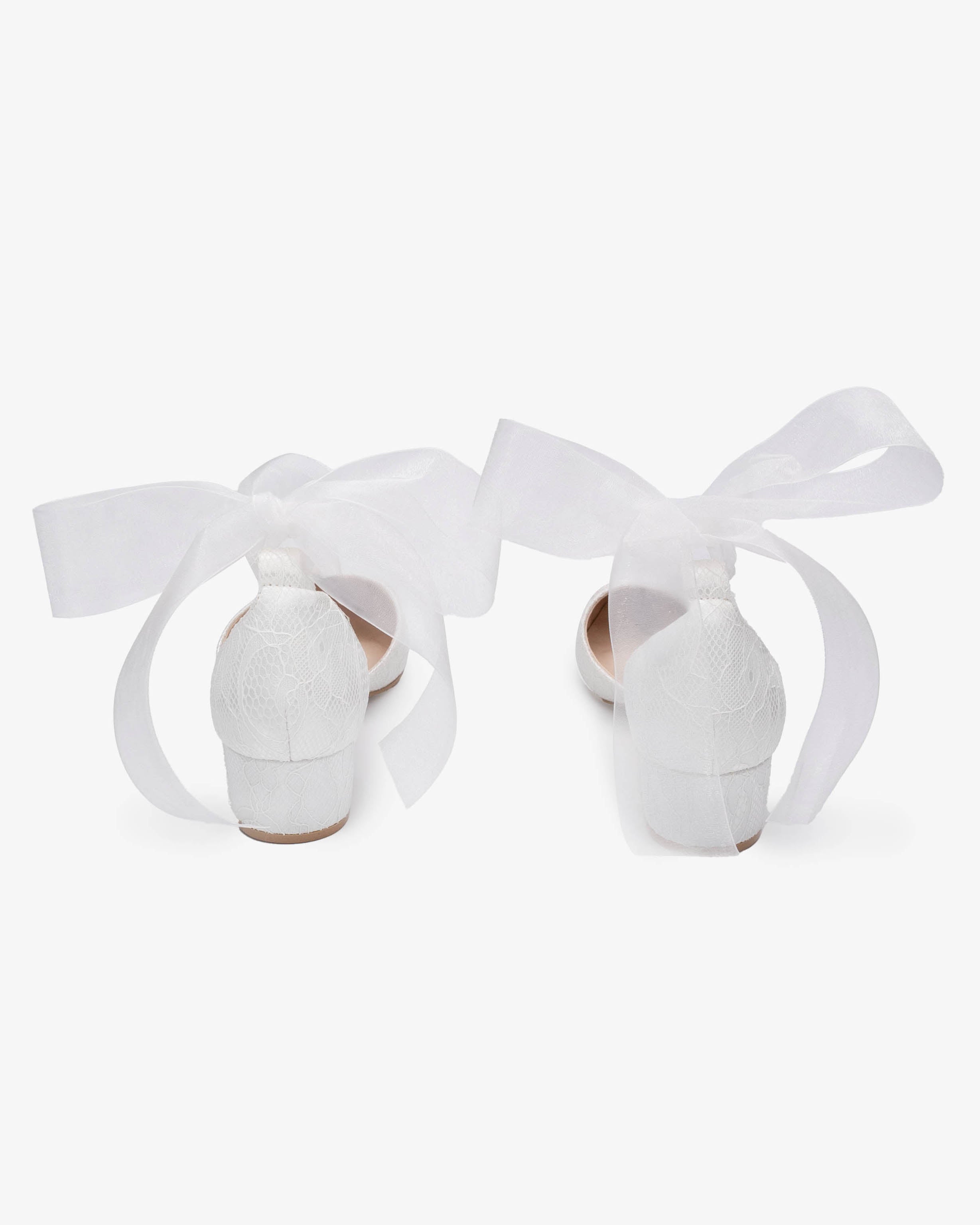 Step into timeless elegance with these lace low block heel, designed for brides who want both comfort and stylish on their big day. Adorned with matching satin or sheer ribbons that ties to an oversized bow around ankle to add dancerly grace to any ensemble a romantic and feminine touch to your wedding look. The low block heel provides comfort, making them perfect for walking down the aisle, dancing through the reception, and for all day long celebration. Perfect for brides, bridesmaids, prom night, date night, and any special occasions.