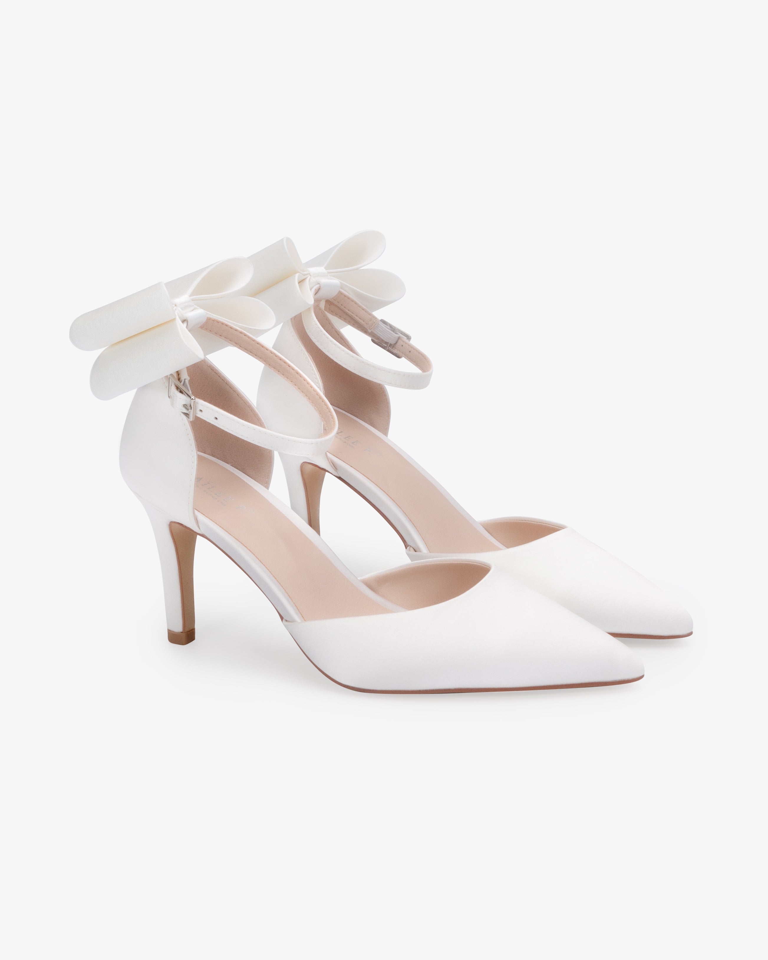 Step gracefully into your special day with these satin bridal pointy toe heels adorned with back tuxie bow. Designed to combine comfort and elegance, the heel offers stability without sacrificing style. The luxurious satin finish and classic details create an exquisite look, allowing you to feel beautiful and confident while enjoying affordable luxury on your wedding day.